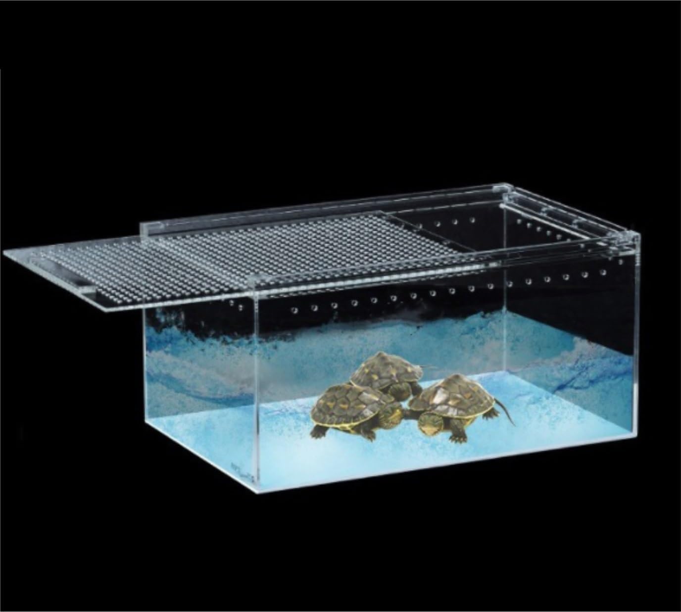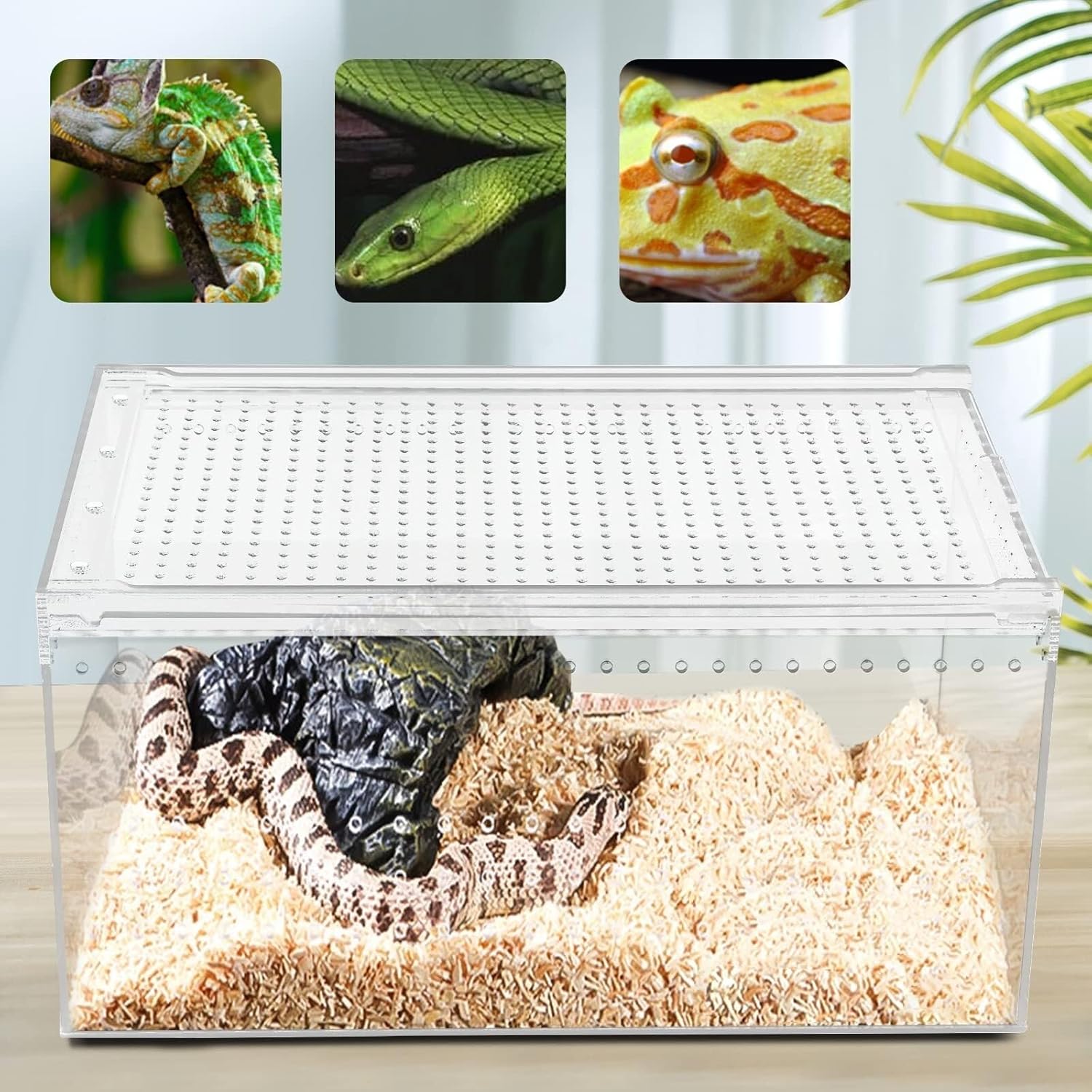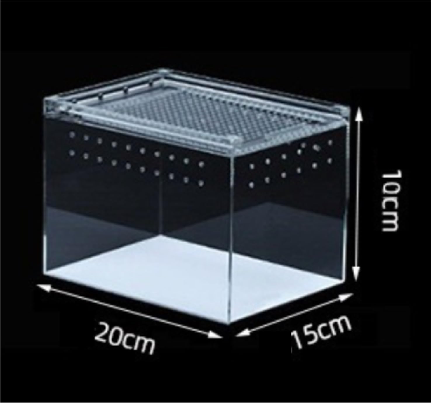 Realizzato in materiale acrilico: ti consente di crescere il tuo animale domestico in tutta tranquillità. Risparmio di spazio: occupa poco spazio, può essere posizionato ovunque nella stanza e può essere impilato for risparmiare più spazio. Buone prestazioni di ventilazione: sono presenti numerose prese d'aria sulla parte superiore e attorno alla gabbia for l'allevamento dei rettili, che garantiscono un buon ambiente di vita for il tuo animale. Multiuso: non solo può essere utilizzato come dimora for rettili, ma è anche possibile iniettare acqua al suo interno con una profondità massima di 5 cm, in modo da poter allevare anche dei pesci. Spazioso e portatile: l'ampio spazio interno consente di osservare e spostare facilmente gli insetti; design leggero e compatto per un comodo trasporto e stoccaggio.