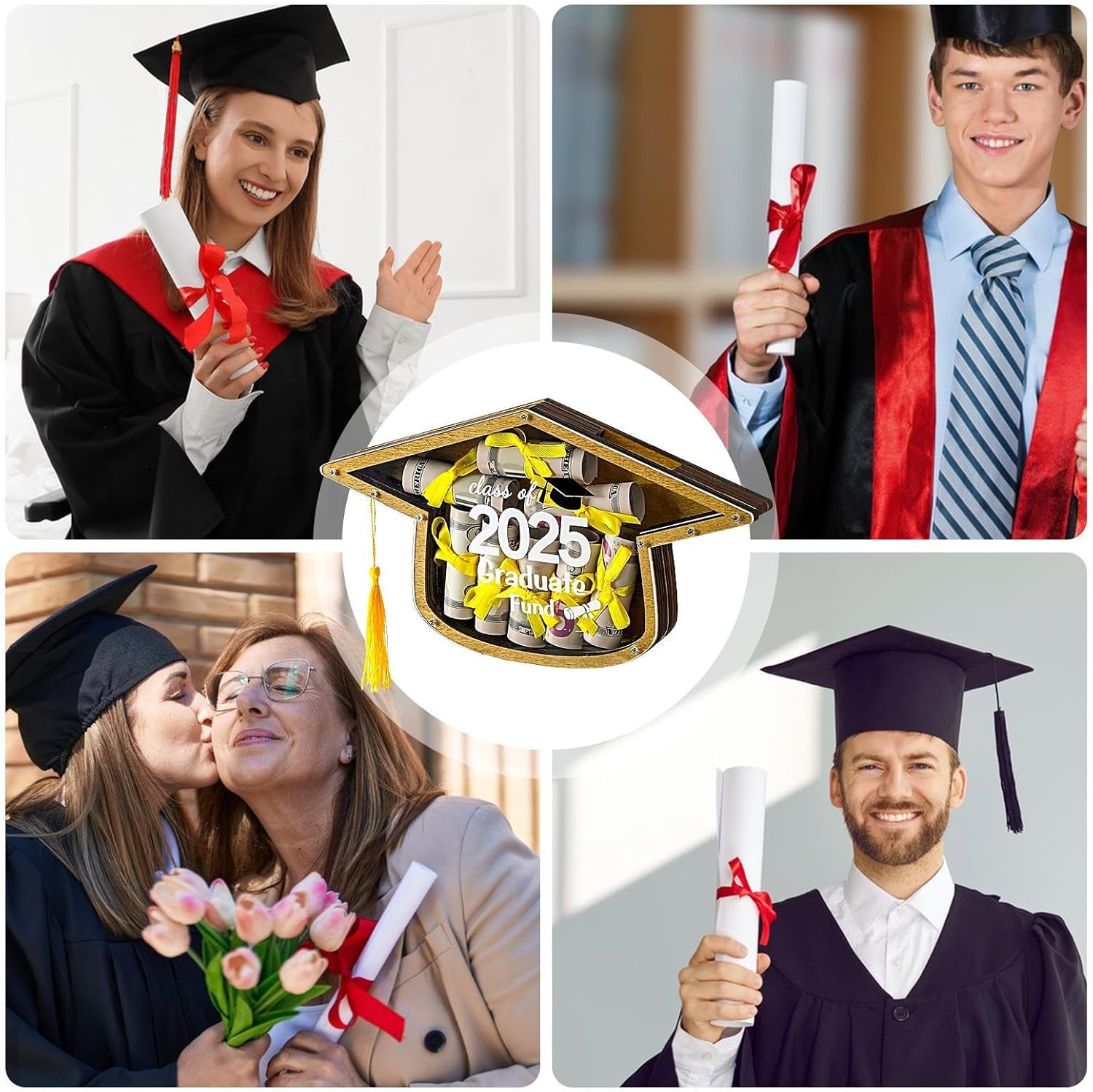 Design robusto con cerniera: combina il resistente legno di betulla con un meccanismo a cerniera rinforzato, questo salvadanaio offre una durata senza pari e una finitura a prova di schegge, rendendolo una scelta affidabile per conservare i ricordi cari in modo sicuro Simbolico ricordo di laurea: celebra il rituale di laurea attraverso un ricordo simbolico progettato con una speciale caratteristica girevole della nappa, migliorando il significato della tradizione della cerimonia di lancio dei cappucci Design di lusso: Incorpora un design raffinato e di lusso che consente la prontezza del denaro, abbinato alla comodità di avvolgimento zero, rendendolo ideale per ogni occasione, insieme a un tessuto di rivestimento preinserito per facilità d'uso Espositore per il successo: adorna il tuo lavoro con questo arredamento ispirato ai cappellini di laurea, che funge da elegante pezzo da esposizione che onora le pietre miliari accademiche in modo raffinato Versatile organizer per ricordi: combina eleganza e utilità, questo salvadanaio di laurea offre uno spazio versatile per contanti e gioielli, assicurandosi che si distingua come un regalo caro e pratico per i laureati che segnano i momenti memorabili della vita
