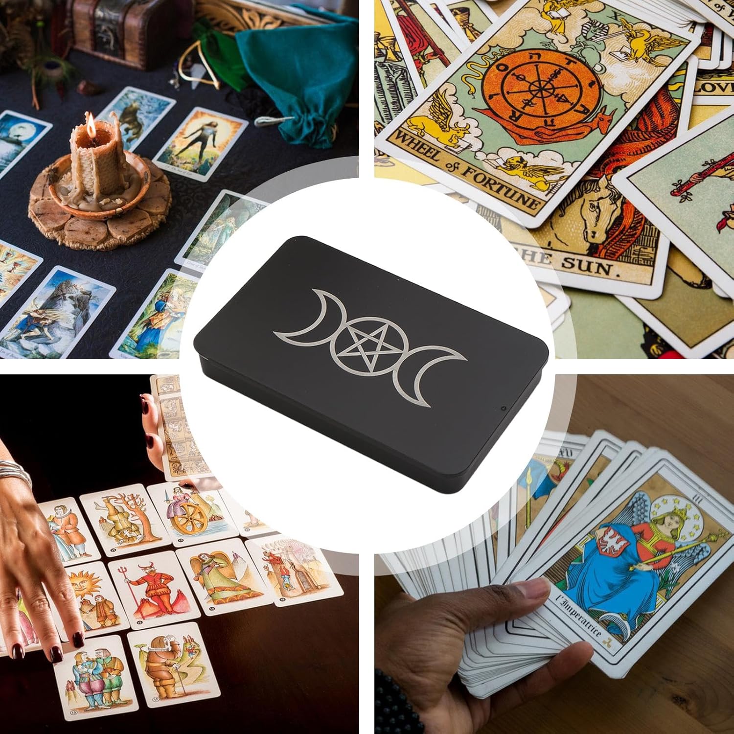 Piatto e senza macchie: progettato per resistere ad ambienti umidi, questa scatola per tarocchi protegge le tue carte dalla pressione esterna, mantenendo il loro stato piatto e senza macchia con materiali robusti per una portabilità sicura Armonia mistica estetica: questa scatola per tarocchi presenta simboli accattivanti e un design artistico, offrendo agli utenti un'esplorazione profondamente coinvolgente delle loro preferenze Design multistrato: fornisce una struttura multistrato progettata per un'efficiente archiviazione delle carte dei tarocchi, garantendo un facile accesso e un'organizzazione semplificata in 1 soluzione compatta Esperienza di viaggio migliorata: il design della scatola appiattita massimizza l'utilizzo dello spazio, rendendolo leggero e portatile per una facile conservazione negli scomparti dello zaino durante i viaggi, garantendo comodità e praticità per gli appassionati di tarocchi all'aperto Maggiore durata e utilizzo: dotata di tecnologia di bloccaggio dei bordi, questa scatola per tarocchi garantisce un'apertura liscia senza sforzo anche con una manipolazione frequente, combinando una lavorazione raffinata e una durata testata per soddisfare le esigenze di un uso costante ad alta frequenza nella pratica quotidiana o nelle routine di conservazione