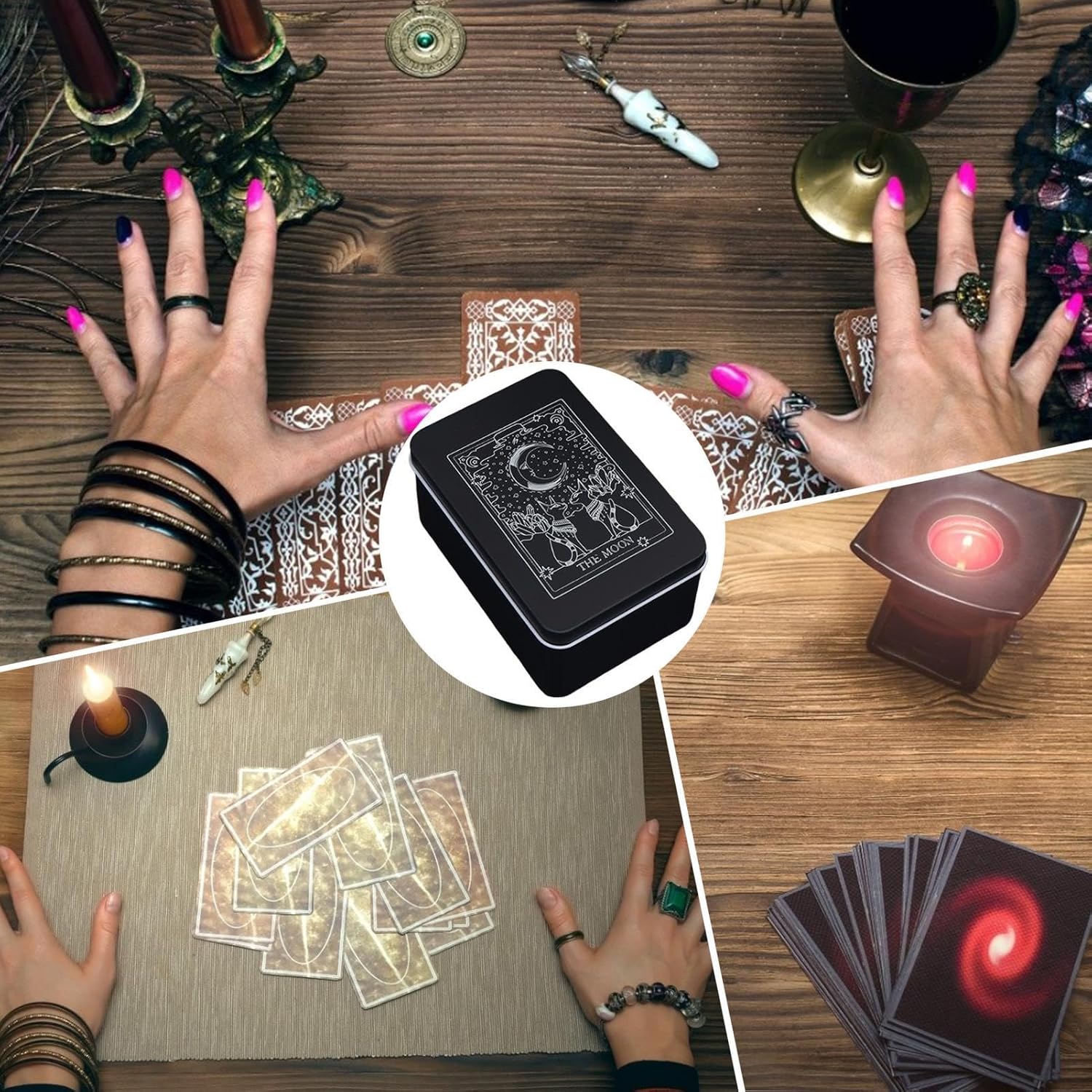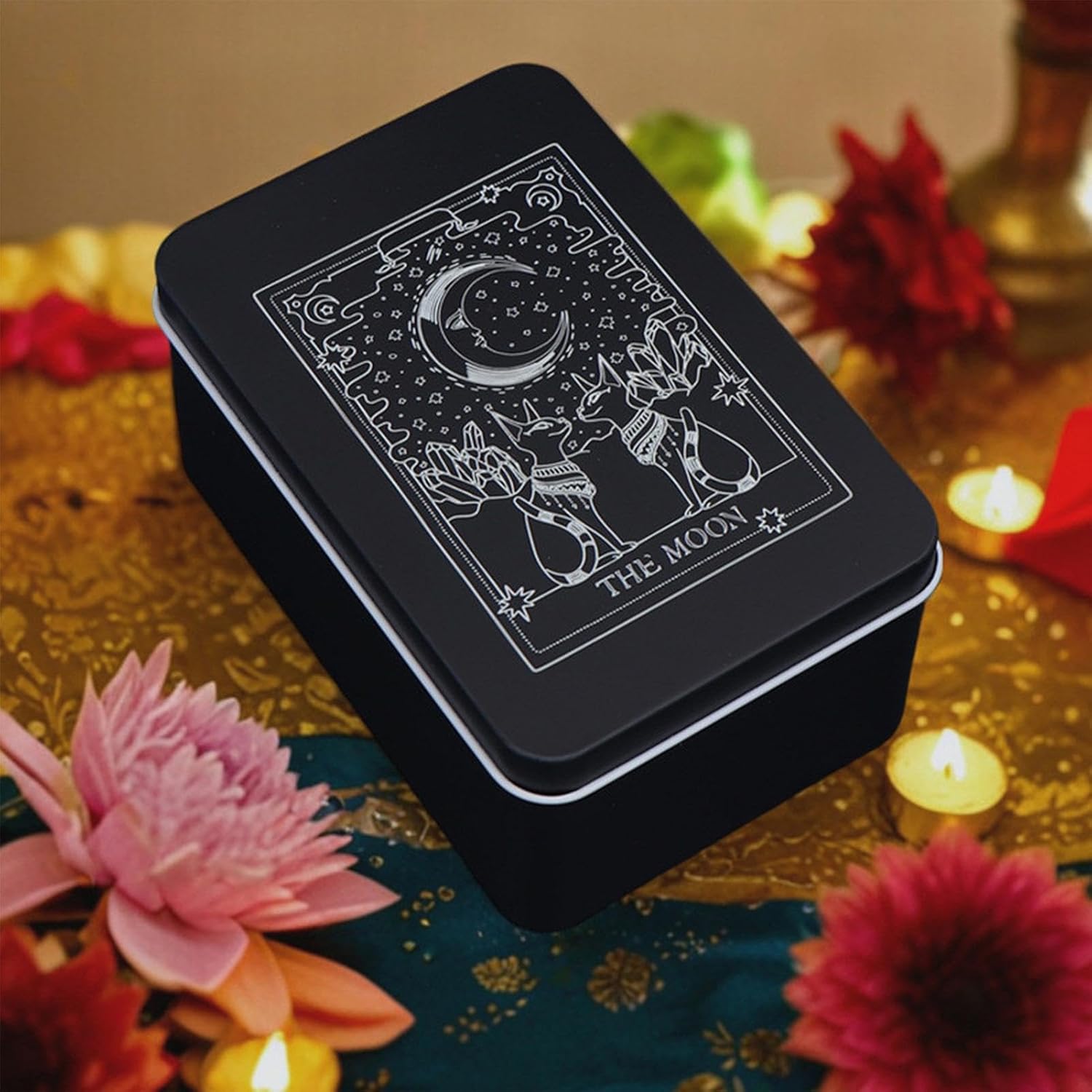 Progettata per conservare e proteggere le carte dei tarocchi, questa scatola di metallo presenta un'elegante stampa luna e sole che ne esalta l'estetica mistica rendendola una scelta ideale per i lettori di tarocchi e collezionisti che desiderano una soluzione di archiviazione elegante e sicura per i loro cari mazzi Realizzata in metallo di alta qualità, questa scatola portaoggetti è una custodia robusta e protettiva per tarocchi, gioielli e altri piccoli bigiotteria, garantendo una conservazione a lungo termine evitando danni da polvere umidità e usura quotidiana per oggetti di valore sentimentale o spirituale Caratterizzato da un design compatto e portatile, questo organizer è facile da trasportare, rendendolo un comodo accessorio per coloro che praticano la lettura dei tarocchi in viaggio o hanno bisogno di un'elegante custodia da viaggio per mantenere i loro strumenti spirituali sicuri e organizzati ovunque vadano Progettato per la versatilità, questa scatola decorativa non è solo perfetta per contenere carte dei tarocchi, ma funziona anche come organizer per gioielli, souvenir o accessorio per altare consentendo agli utenti di riporre anelli, cristalli, pendoli e altri oggetti significativi in una custodia splendidamente realizzata Migliorata con un intricato design celeste, questa scatola per tarocchi aggiunge un tocco mistico e incantevole a qualsiasi spazio, rendendolo un regalo meraviglioso per gli appassionati di tarocchi gli amanti dell'astrologia e coloro che apprezzano soluzioni uniche e artistiche per i loro effetti spirituali e personali