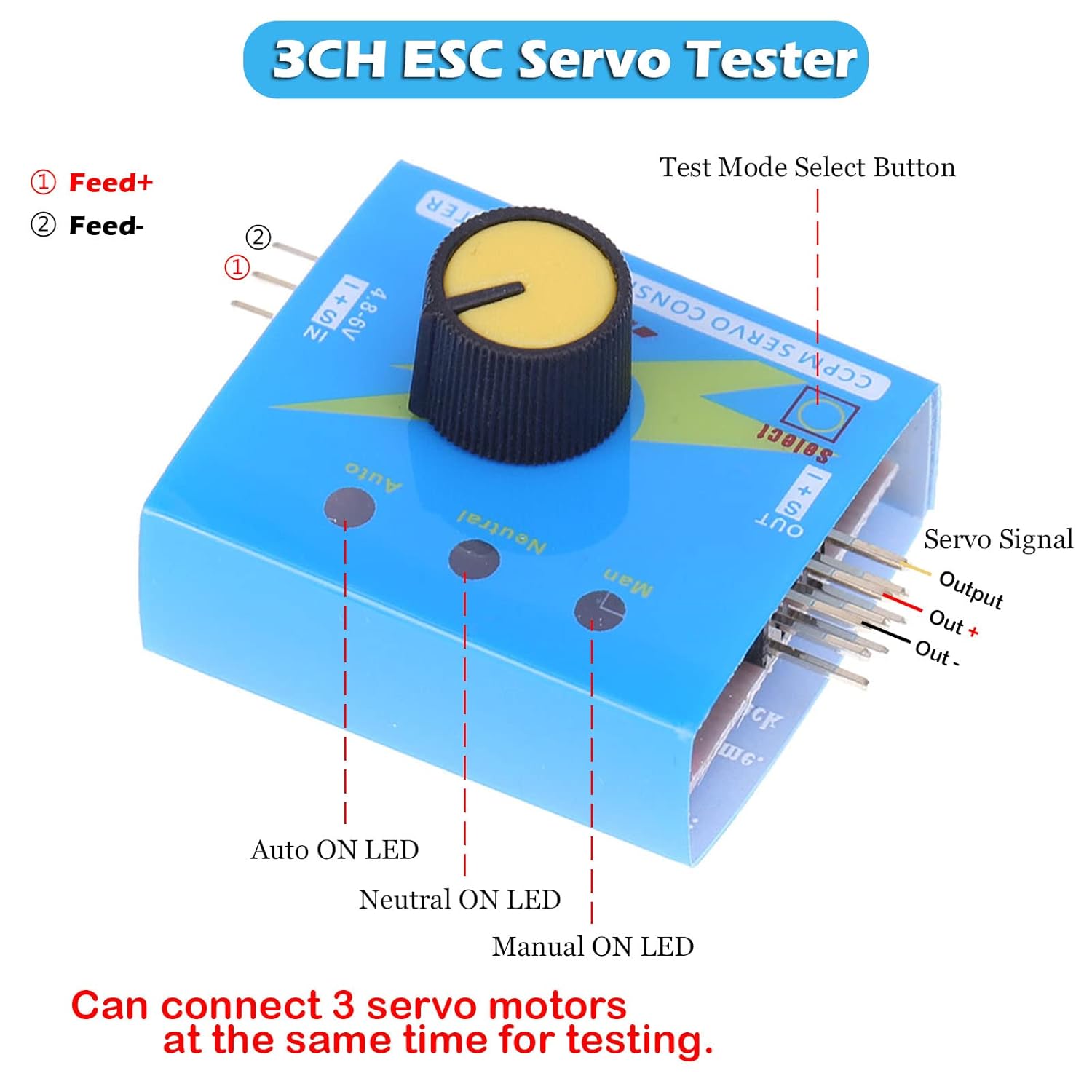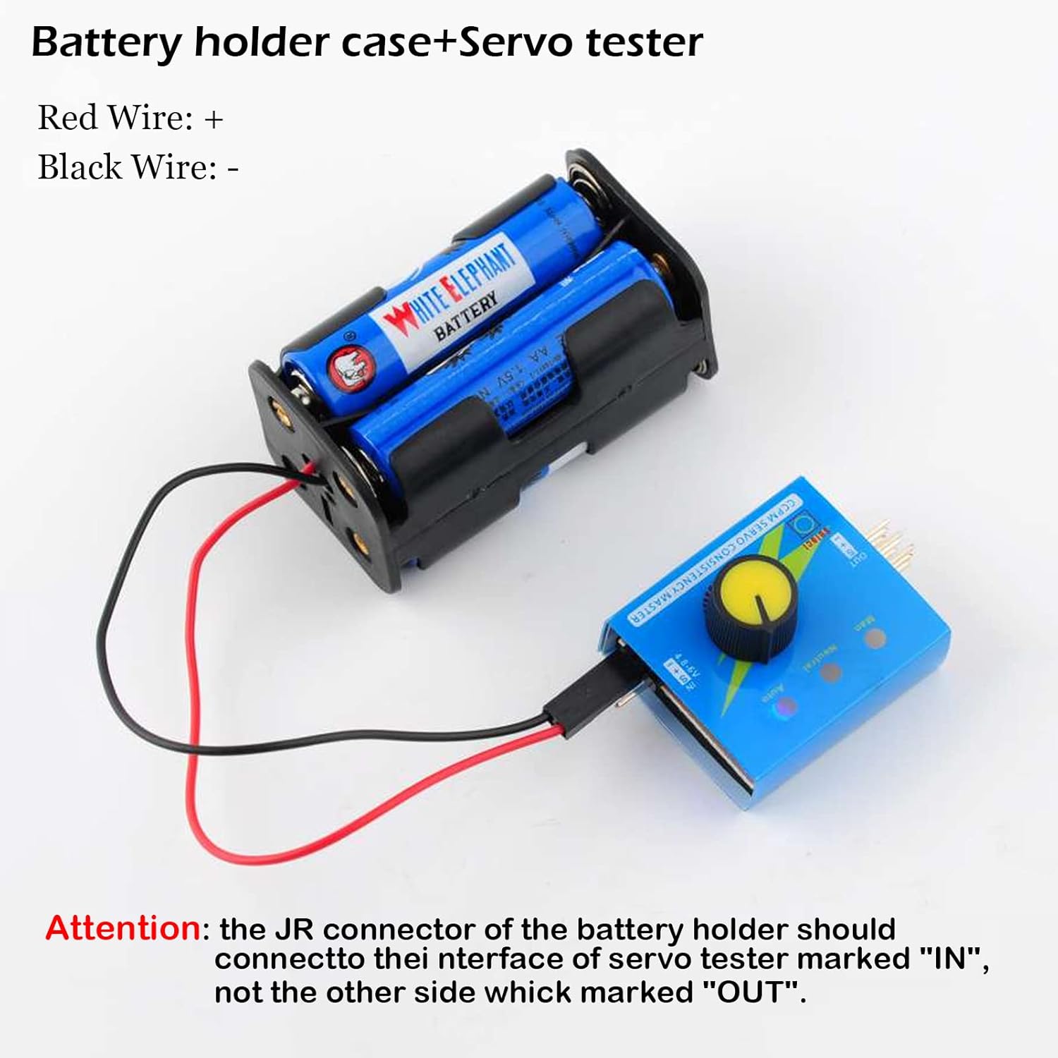 Servo Tester: include 3 modalità per testare servomotori o ESC. Può essere collegato a due servi o ESC; Controllo MCU, buona stabilità, alta precisione. Ruota la manopola, la direzione può essere rilevata. Questo portabatterie è per 4 batterie AA, batterie non incluse, devi prepararlo da solo. È molto facile e comodo da usare. Il filo rosso della staffa deve essere collegato a "+" di "IN" del servotester e il filo nero deve essere collegato a "-" di "IN". L'altro lato contrassegnato con "OUT" deve essere collegato al servo, solitamente il filo rosso è con "+", il filo nero o marrone è con "-" e il resto è con "segnale". Quello che riceverai è 1 custodia porta batteria AA a 4 celle con connettore JR 2P nero rosso e 1 tester servo digitale 3CH. Batterie AA e servi non inclusi in questo elenco. Se hai domande, non esitare a contattarci facendo clic su "Geekstory" sotto il carrello e facendo clic su "Fai una domanda".