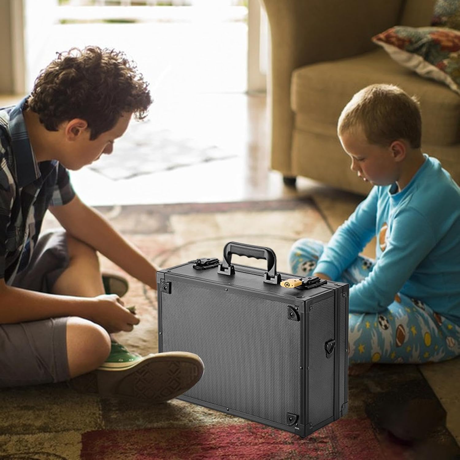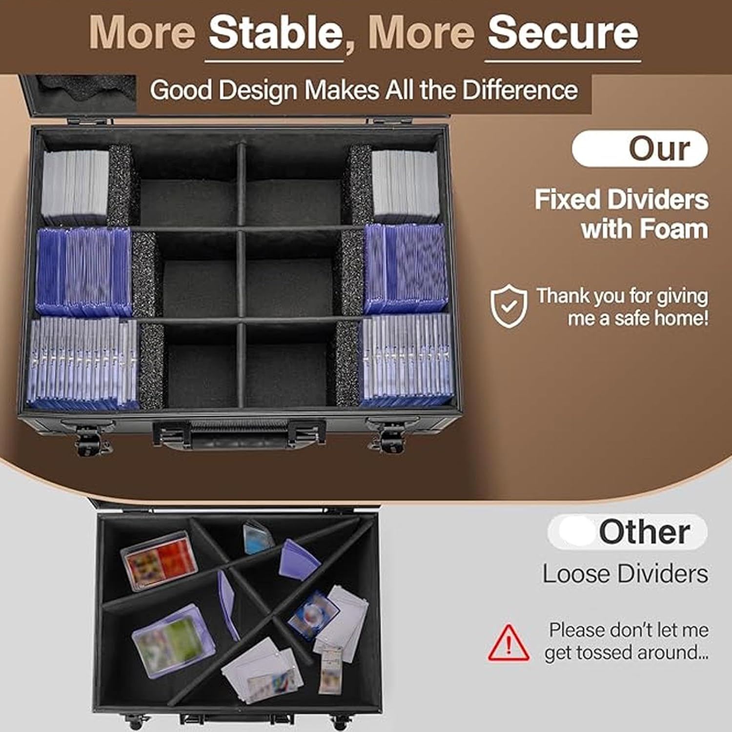 Spazio spazioso: conserva in modo sicuro più di 600 carte o ospita più di 140 porta carte magnetiche, rendendolo la soluzione ideale per la tua collezione ampliata Protezione sicura delle carte: protezione da furti, urti e graffi con un lucchetto aggiuntivo in modo che i tuoi biglietti da visita rimangano inalterati in 6 strati di imbottitura in schiuma Comoda misurazione: trasporta la tua collezione di carte senza sforzo a conferenze, fiere ed eventi con la maniglia ergonomica e la tracolla regolabile per un facile trasporto Per la maggior parte delle occasioni: perfetta progettata per proteggere e organizzare la tua preziosa collezione di carte, questa scatola è l'ideale soluzione di archiviazione che tu sia un fan delle carte sportive o un altro amante dei biglietti da visita Organizzato: mostra le tue preziose carte collezionabili e da baseball nella scatola portaoggetti a 6 scomparti che fornisce un'organizzazione semplice ed elegante per la tua collezione