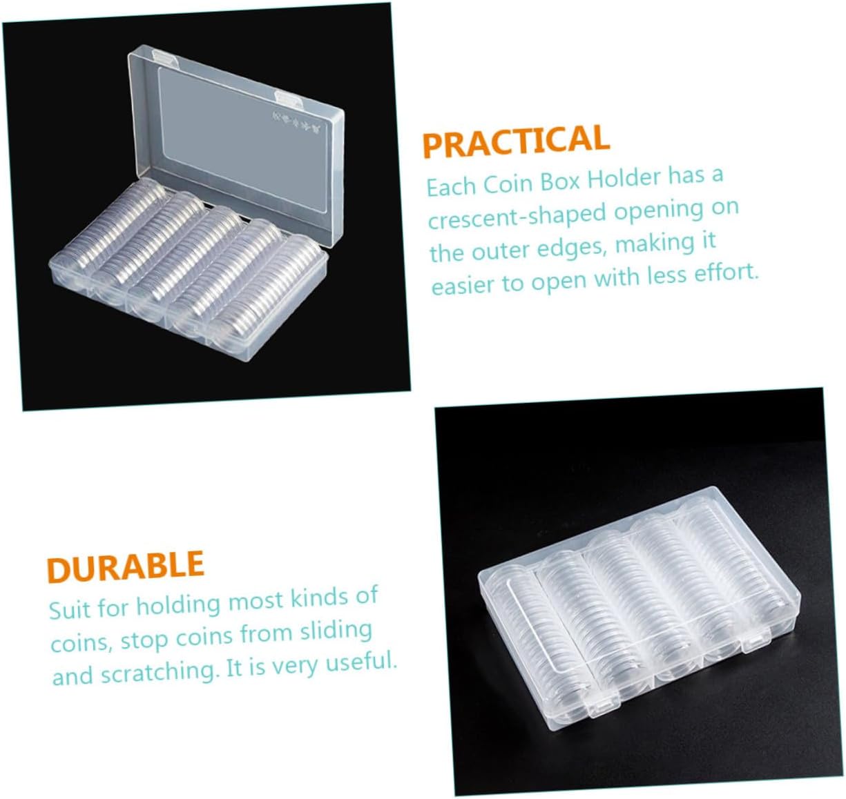 Portacapsule per monete: il portamonete è semplice e organizzato per esporre la tua collezione di monete e monete da collezione, portamonete Portamonete: va bene anche per la tua famiglia e i tuoi amici che amano collezionare monete, portamonete Portacapsule professionale per monete: il design trasparente è un buon modo per esporre le tue monete, molto pratico e conveniente, portamonete Portamonete in plastica: buono Portamonete e capsule che non occupa troppo spazio, portamonete Accessori per la raccolta monete: questo portamonete protegge efficacemente dall'ossidazione ed è durevole