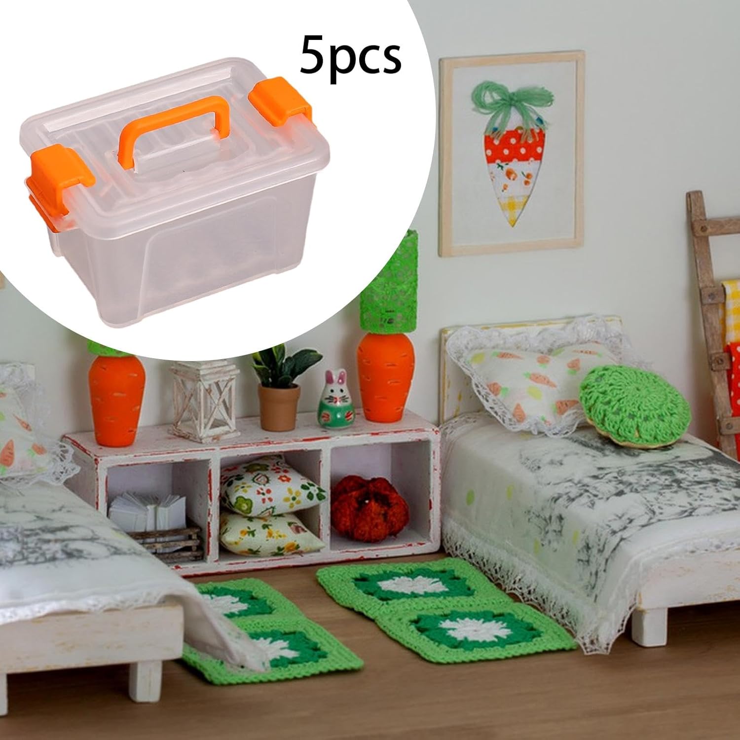【Confezione】: Ogni confezione include 5 scatole portaoggetti in miniatura, offrendo versatilità per collezionisti o progetti creativi. 【Regalo ideale】: il mini organizer per casa delle bambole è un regalo ideale per bambini, per compleanni e vacanze 【Caratteristiche】: La mini scatola portaoggetti per casa delle bambole è dotata di un coperchio di chiusura sicuro e di una comoda maniglia per l'esposizione. 【Materiale】: Realizzata in PP, ogni scatola è leggera ma robusta, garantendo un utilizzo a lungo termine per l'organizzazione di piccoli accessori. 【Decorazioni per case delle bambole】: Mini scatole portaoggetti per case delle bambole in miniatura e giochi di ruolo, queste scatole portaoggetti trasparenti aggiungono dettagli realistici alle tue scene in miniatura.
