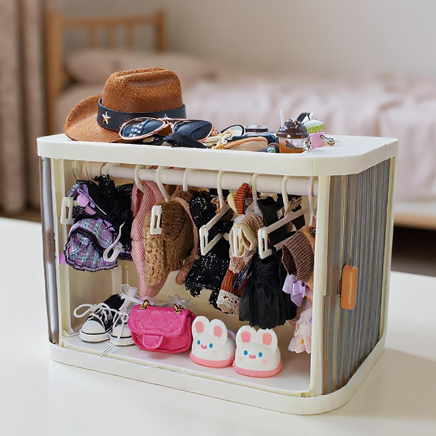Materiale di alta qualità: combina resistenza alla pressione con struttura stabile e fedele alla forma, grazie alla composizione del materiale ad alta densità per una funzionalità ottimale nella conservazione dei vestiti delle bambole. Cura dei vestiti stabile: il sistema di archiviazione multifunzionale garantisce una maggiore portabilità degli abiti delle bambole, sottolinea i dettagli sottili e li mantiene privi di polvere e sporco in modo affidabile Soluzione di trazione efficiente: lo stoccaggio speciale con sezioni divise per bambole da 17 cm rende la ricerca e l'organizzazione di vestiti e accessori per bambole intuitiva e risparmio di tempo grazie al design ben studiato Funzione di piegatura semplice: grazie alla struttura del telaio pieghevole, questo prodotto consente di ridurre lo spazio dell'armadio, è facile da trasportare e ottimizza efficacemente la conservazione dei vestiti delle bambole Sistema di organizzazione degli accessori: garantisce la conservazione senza perdite e a prova di nodi di tutti i vestiti delle bambole, grazie alla suddivisione degli scomparti ben studiata, ottimizzazione dello spazio e accessibilità sistematica per le mani dei bambini