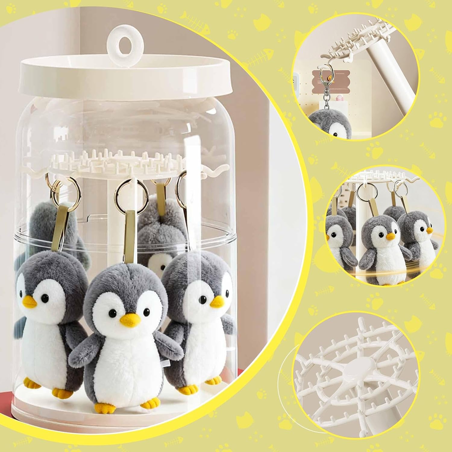 【Soluzione espositiva versatile】: la scatola espositiva per figure è adatta a vari ambienti come soggiorni, camere da letto e uffici. È un'ottima soluzione per appendere action figure, mini bambole, statuette in miniatura, ciondoli di peluche e altro ancora. 【Ottimo regalo】: il porta-figure può essere utilizzato anche come organizer per collane. È un bel regalo per ama collezionare statuette, evidenziando la bellezza degli oggetti da collezione e rendendoli più attraenti. 【Materiale di alta qualità】: la scatola portaoggetti per bambole è realizzata in materiale PP di alta qualità, per una maggiore durata, è robusta e gntisce un lungo periodo di utilizzo 【Protezione antipolvere】: il supporto per ciondolo in peluche può proteggere efficacemente i tuoi oggetti da collezione da polvere, graffi, ingiallimento e danni. Dimensioni circa 21,5 cm x 21,5 cm x 37 cm / 8,46 pollici x 8,46 pollici x 14,57 pollici 【 ruotabile a 360°】: questa vetrina girevole a 360° presenta una copertura trasparente, che ti consente di esporre i tuoi oggetti da collezione preferiti da qualsiasi angolazione ed è flessibile e comoda