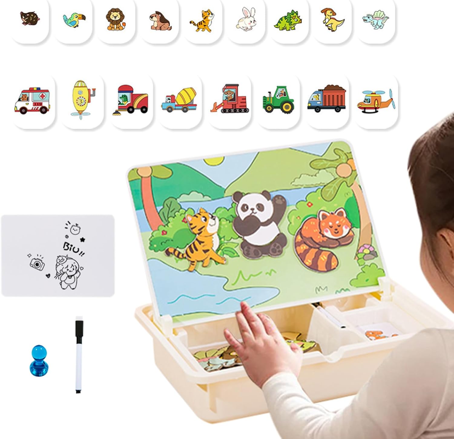 Gioco di Abilità: Offre un'esperienza appagante con meccanismi intuitivi adatti ai bambini, connessioni magnetiche facili da usare e una struttura stabile che garantisce divertimento duraturo attraverso sessioni di gioco ripetute Potenzia il pensiero logico: Il design di questo giocattolo educativo stimola il ragionamento logico e l'immaginazione spaziale durante il processo interattivo con moduli magnetici, migliorando progressivamente la coordinazione occhio-mano in modo divertente e coinvolgente Momenti Familiari Memorabili: Progettata per creare momenti felici, questa scatola magnetica puzzle incoraggia gioia condivisa e durante il gioco, stimolando al contempo l'esplorazione creativa immaginativa per le famiglie con esperienze significative Tenuta magnetica sicura: Assicura che i pezzi rimangano fissi grazie a una forte magnetica, prevenendo la perdita e mantenendo la collezione di puzzle ordinata, pratica e perfetta per viaggi o uso quotidiano Giocattolo Educativo Divertente: Questa scatola puzzle magnetica offre un apprendimento coinvolgente con numeri lettere e temi animali ispirando curiosità e promuovendo lo sviluppo cognitivo attraverso multiple opzioni di gioco interattive per bambini che trasformano l apprendimento in un esperienza piacevole e significativa