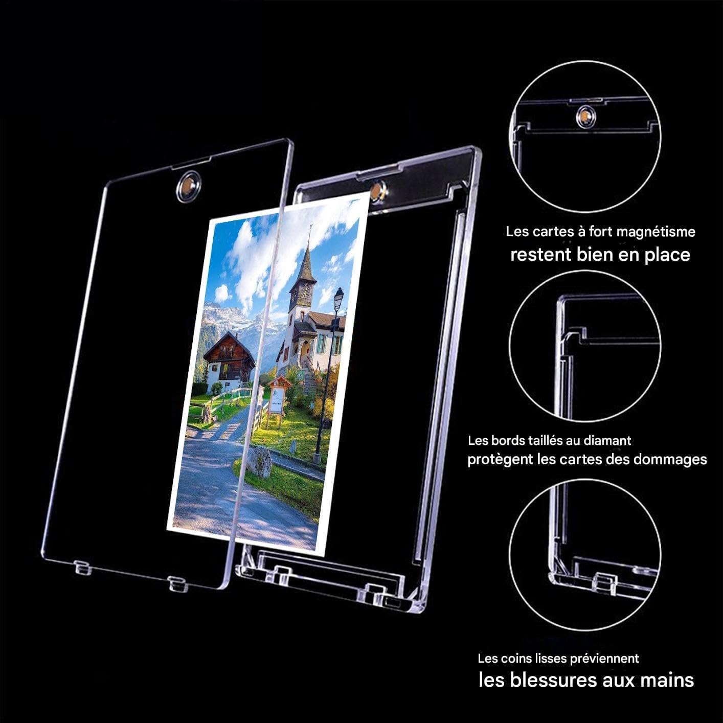 Applicazione estesa: progettate per tenere al sicuro le carte sportive e di gioco, queste tasche con vestibilità universale garantiscono la compatibilità con le dimensioni standard, ideali per organizzare più carte in modo efficiente. -Ideal Collection: Con una difesa completa contro polvere, liquidi, graffi e flessioni, queste tasche forniscono una soluzione affidabile per riporre i biglietti da collezione, mantenendoli al sicuro a lungo termine senza compromessi. Design a visibilità ottimale: la tecnologia no-unseal consente una trasparenza totale per la visualizzazione fronte/retro, riducendo l'usura migliorando naturalmente l'esperienza di raccolta grazie all'elevata visibilità e alla funzionalità protettiva integrata senza dover aprire la protezione Protezione Colori Durevole: protegge le carte dai raggi UV con acrilico anti-scolorimento, fornendo una protezione a lungo termine dall'ossidazione mantenendo colori vivaci nei display di stoccaggio Accesso senza danni: la chiusura magnetica di queste custodie previene cadute accidentali e riduce al minimo il rischio di deterioramento. Il design facilita l'accesso alle carte proteggendo le carte da usura regolare.
