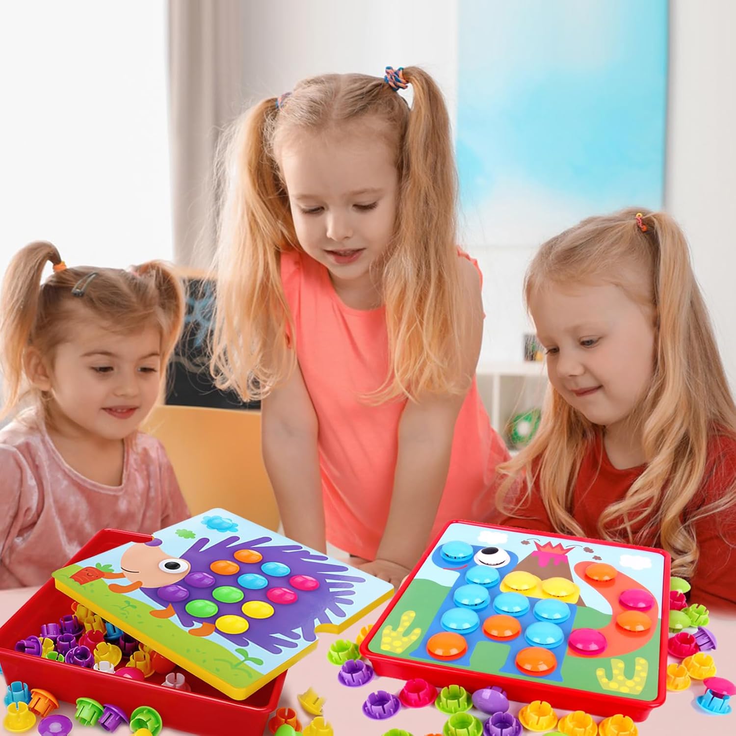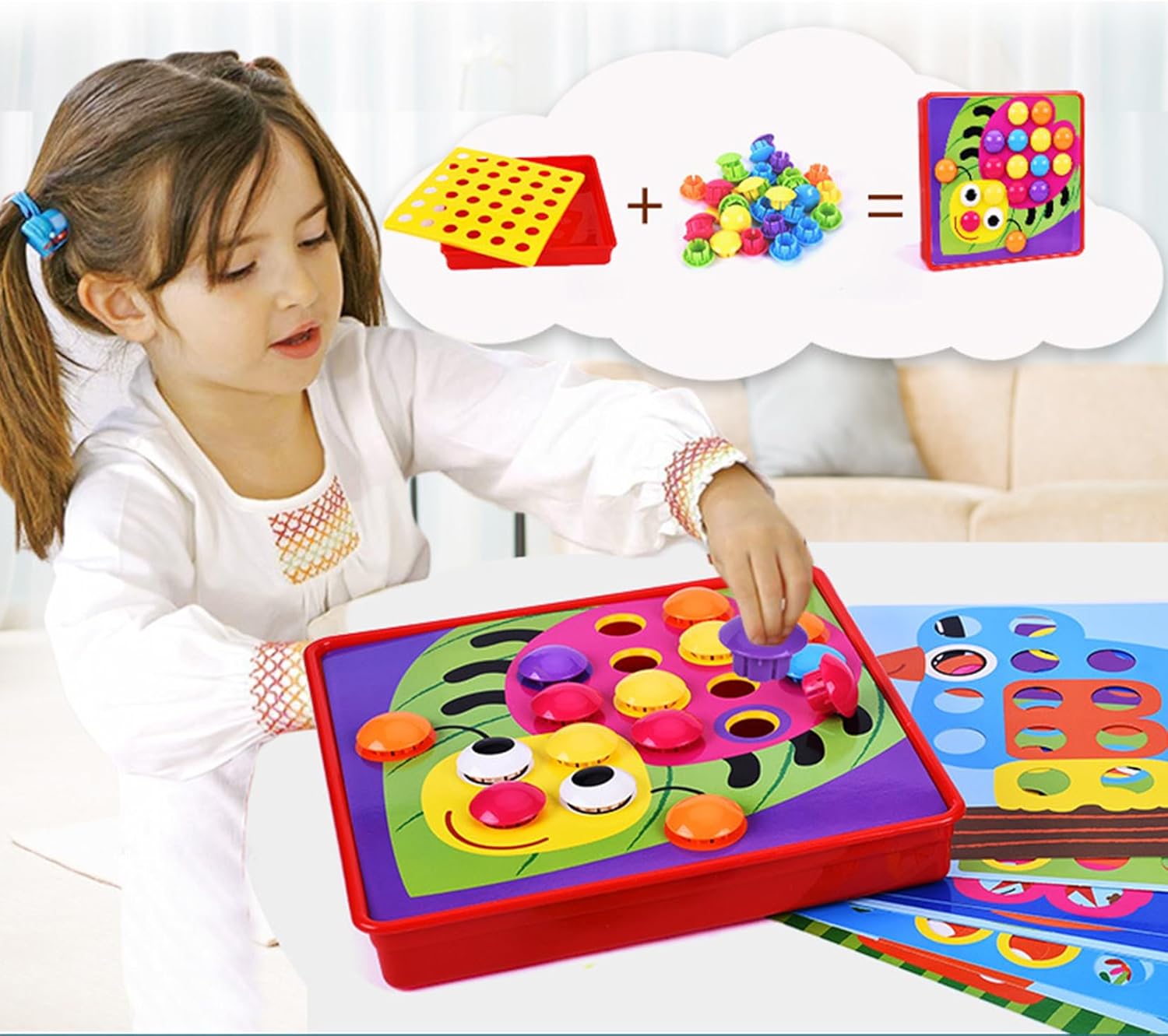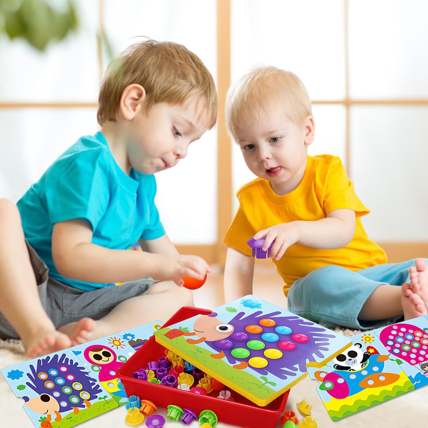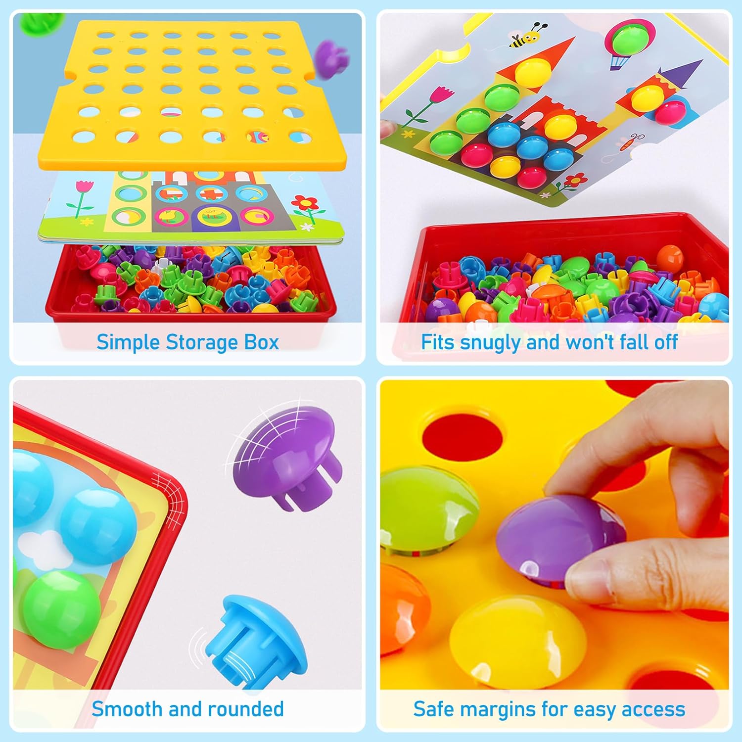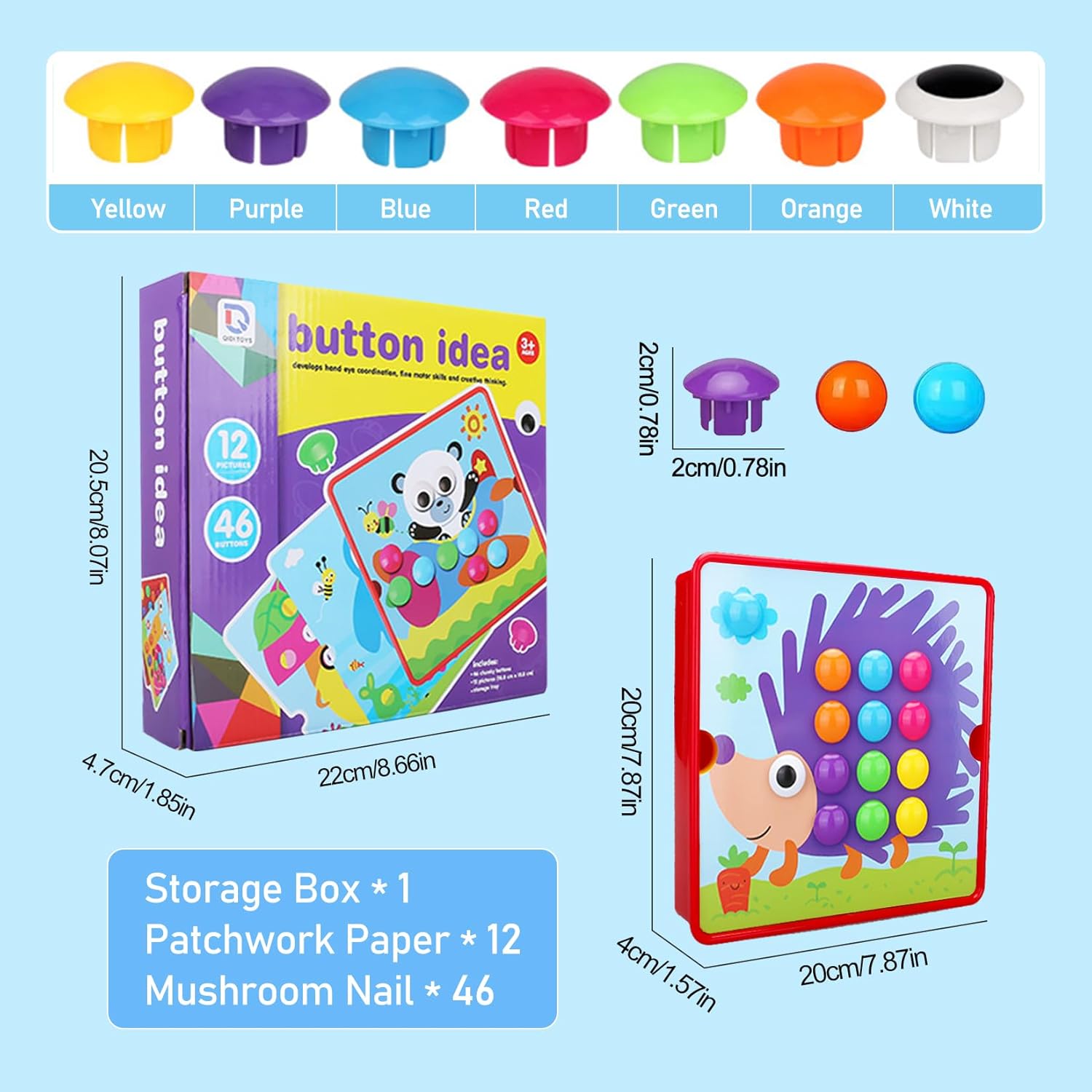 Gioco chiodini per bambini:Questo set di gioco è composto da 46 perline colorate, 12 diversi mosaici di chiodini, una tavola a mosaico e un ripiano in plastica. Per giocattoli a partire da 2 anni Chiodini per bambini 3 anni:l nostro gioco chiodini per bambini giocattoli montessoriani da 2 3 4 anni è realizzato con materiali buoni e sicuri, sono atossici, inodori e privi di BPA, il colore è brillante, la superficie è rotonda e liscia e non fa male alla mano Gioco mosaico bambini:È leggero e portatile, particolarmente adatto per i bambini che aspettano in casa per molto tempo. Oppure genitori e bambini la usano nel tempo libero all'aperto, un vassoio di plastica per organizzare meglio i giocattoli Giocattolo educativo creativo:Premendo i pulsanti dei colori sulla lavagna a mosaico, il bambino può creare un'immagine a cartoni animati unica e vivace sulla lavagna in base alla propria creatività e immaginazione giochi bambini 2,3 anni:La lavagna a mosaico è l'attività ideale per i bambini e un regalo meraviglioso per compleanni, feste per bambini, Natale, Pasqua o come regalo per il ritorno a scuola