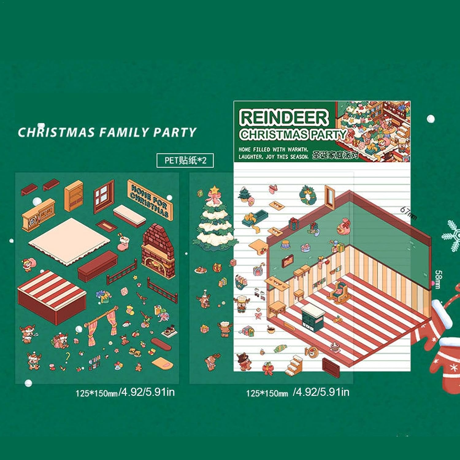 Migliora l'espressione creativa: con i nostri adesivi per la casa di Natale puoi immergerti in un mondo di ulteriori possibilità di regolazione. Riorganizza e personalizza ogni scena in base alla tua immaginazione e al tuo stile. Design riutilizzabile: con una perfetta adesione a qualsiasi superficie piana, i nostri adesivi riutilizzabili per la casa di Natale sono perfetti per rinnovare l'arredamento natalizio. Puoi aggiornare e riorganizzare la scena della tua festa in qualsiasi momento, anche su articoli come custodie per telefoni, laptop e notebook. Modo divertente e rilassante: immergiti in un mondo di adesivi per case natalizie. Perfetti per il relax e l'espressione, evocano la gioia e la creatività del Natale. Perfetto per rilassarsi dopo una lunga giornata o godersi un po' di divertimento festivo. Splendido effetto tridimensionale: sicuri e innocui, questi adesivi forniscono un superbo effetto tridimensionale con stampa ad alta definizione e le loro superfici rivestite garantiscono una lunga durata. Ampiamente usato: migliora le decorazioni natalizie con i nostri adesivi per la casa di Natale, progettati per stimolare la creatività nei bambini e negli adulti. Aggiungi un tocco unico e affascinante al tuo allestimento e cattura quello della stagione con questi adesivi divertenti e stravaganti.