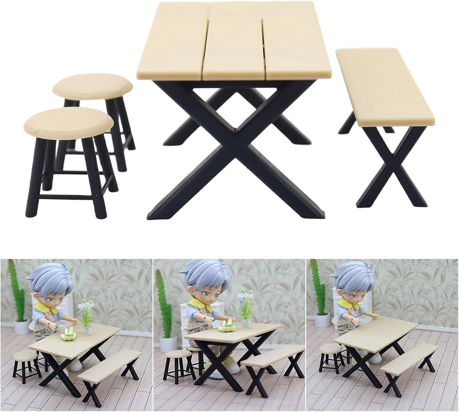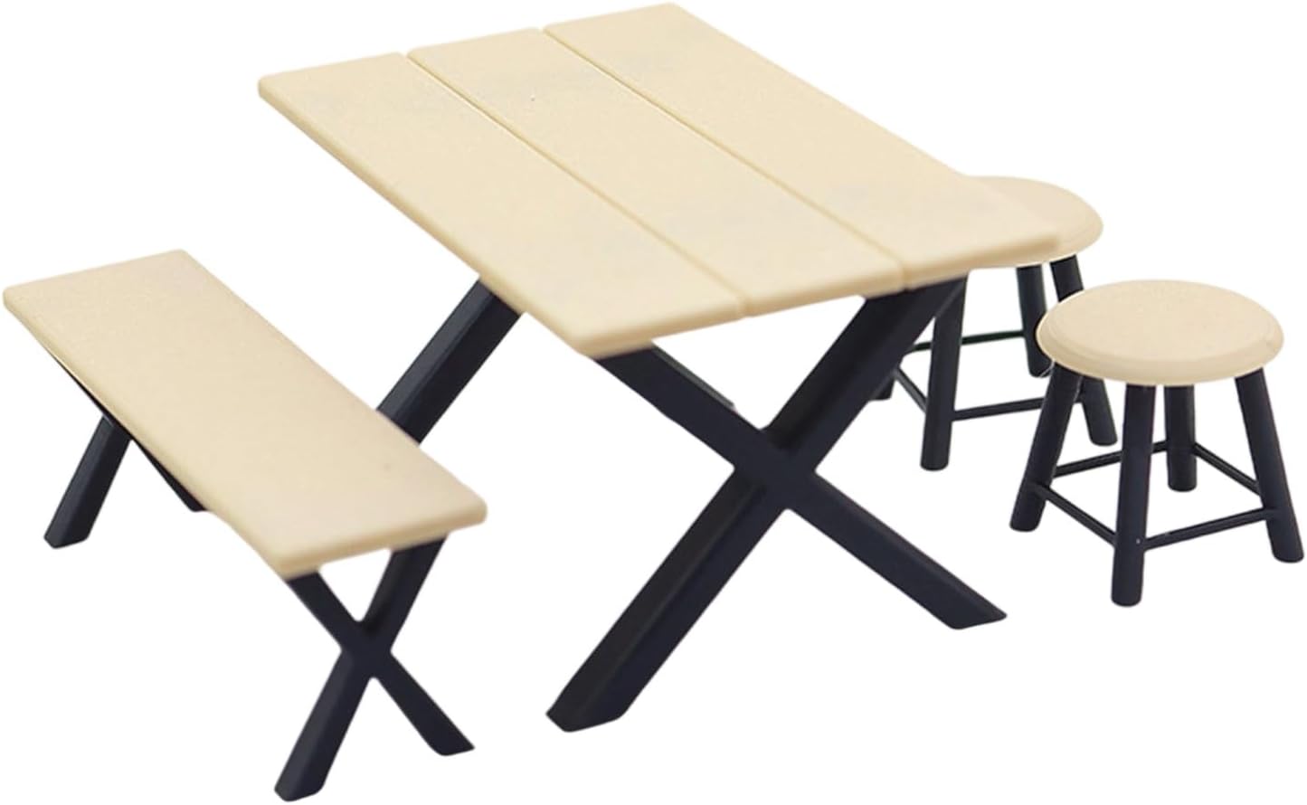 Meticolosamente mobili da patio in miniatura replica texture ingranaggi esterni, uso amichevole, materiali sicuri per i bambini Combina lunghe panchine, sgabelli circolari e tavolo per creare layout infiniti di picnic in miniatura o espositori per scaffali con ciondoli Migliora le decorazioni della scena del campeggio nel cortile, le case delle bambole e l'occasione fantasiosa per bambini dai 6 anni in su Design per hobbisti di case delle bambole, creatori di scene all'aperto e famiglia alla ricerca di accessori interattivi per giochi di finzione Set di mobili da campeggio in scala 1/12 con sedia pieghevole e tavolo, ideale per accessori per case delle bambole e appassionati di decorazioni all'aperto in miniatura