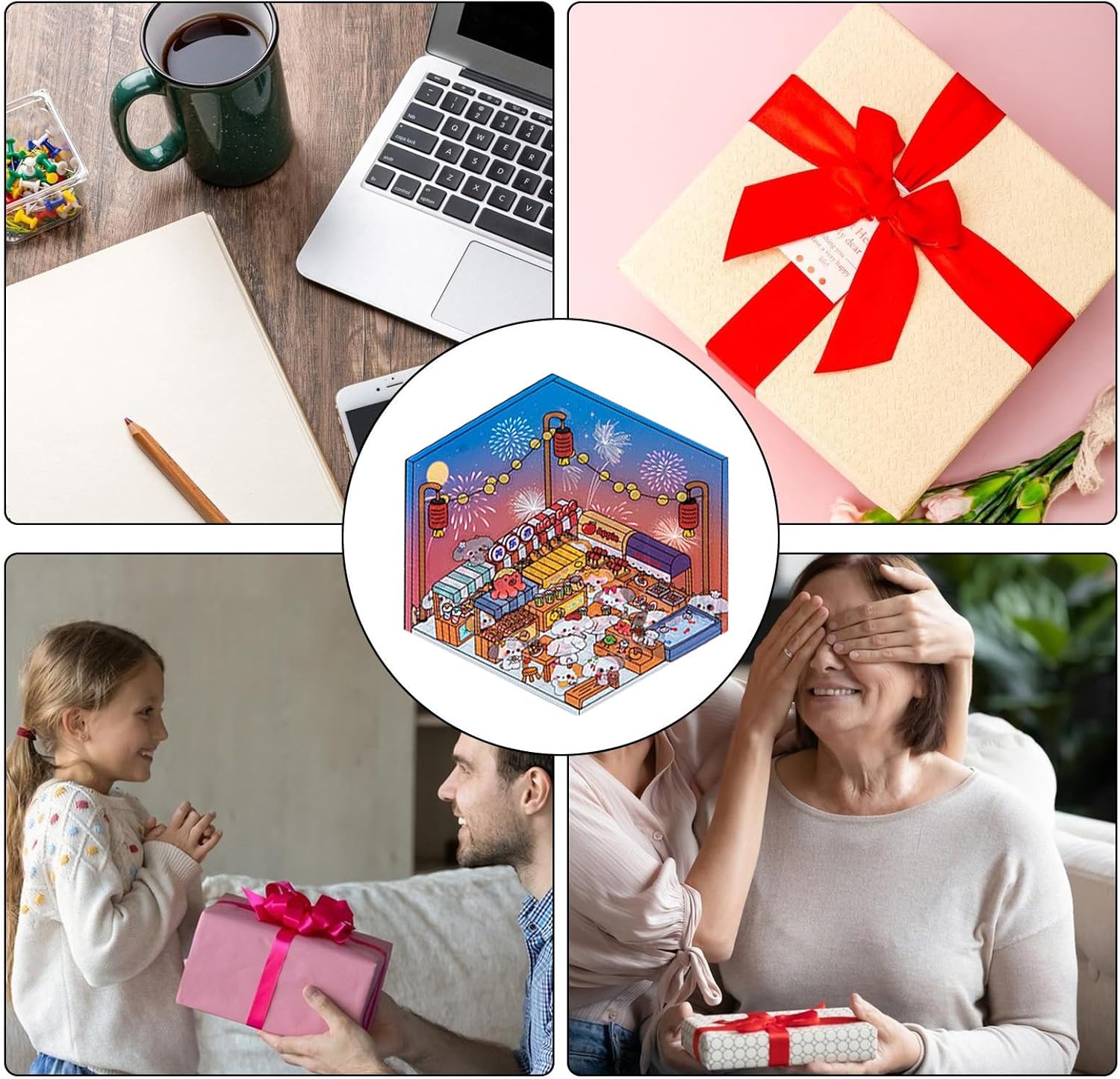 Realizzazione Coinvolgente: Ideale per decorare taccuini con effetto 3D multistrato combinato a grafiche immersive e dettagli microscopici accuratamente realizzati per ispirare creativi Stimolo Cognitivo: Potenzia concentrazione e capacità spaziali con attività creative coinvolgenti, ideali per tutte le età come metodo rilassante per gestire lo stress attraverso l'assemblaggio manual Confort e Sicurezza: La struttura realizzata con materiali di alta qualità assicura una piacevole sensazione al contatto, combinando sicurezza e morbidezza per un'applicazione precisa senza irritazion Durata Garantita: Tecnologia di stampa UV protegge i colori dalla luce solare. La struttura multistrato previene l'ingiallimento, mantenendo l'adesività fino a 24 mesi in ambienti intern Multifunzionalità: Combina praticità e design utilizzando gli adesivi come decorazioni per pareti, personalizzazioni di quaderni, elementi organizzativi per scrivanie o tocchi artistici per mobili. Trasforma oggetti comuni in pezzi unici con un gesto