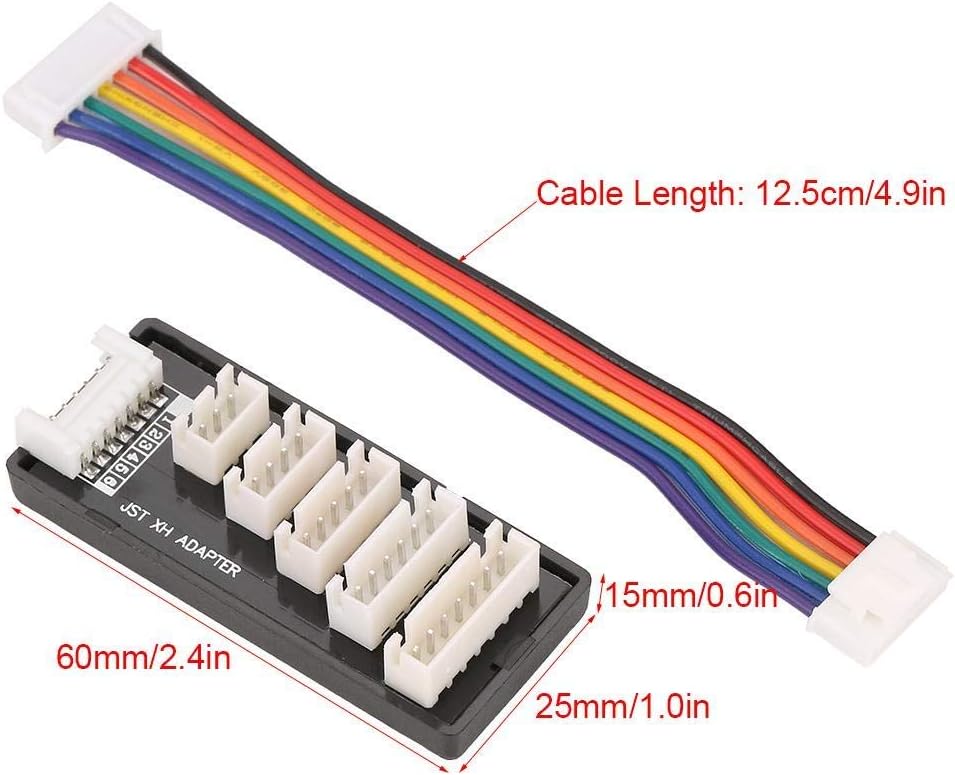 ADATTO PER --- L'adattatore per bilanciamento JST XH è adatto per la ricarica di batterie LiPo 2S, 3S, 4S, 5S, 6S. Laminare la pellicola di rame PCB, consentire la sicurezza utilizzando la corrente di carica SICURO E DUREVOLE --- Realizzato in materiale di alta qualità, l'adattatore di ricarica per bilanciamento JST XH è sicuro e durevole per un uso a lungo termine. Dotata di protezione fusibili A tra i due gruppi di batterie, per gestire la grande pressione della batteria. LAVORO EFFICIENTE --- Con una prestazione stabile e buona, l'adattatore di carica bilancia JST XH garantisce un lavoro efficiente. Linea di uscita della porta bilanciata con linea di silicone multifilo 18AWG CARICABATTERIE B6 / B6AC / A6 --- L'adattatore di carica bilancia JST XH si abbina al caricabatterie bilancia B6 / B6AC / A6 FACILE PORTARE --- Con dimensioni ridotte di 2,4 × 1,0 × 0,6 pollici e peso leggero di 18 g, l'adattatore per la ricarica dell'equilibrio JST XH è facile trasportare