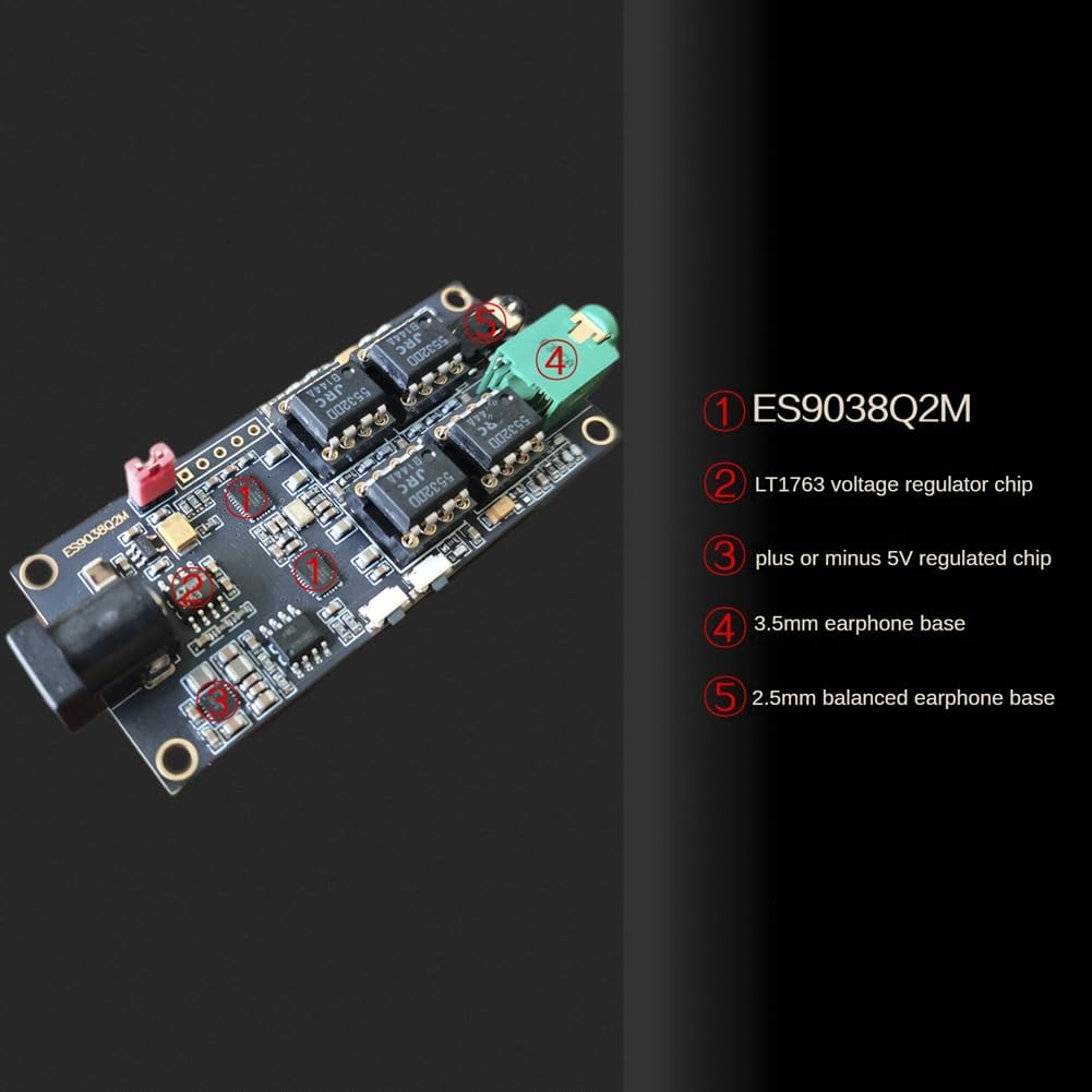 Viene adottato un doppio amplificatore operativo e l'amplificatore operativo è alimentato da un alimentatore positivo e negativo. Il PCB è progettato con un processo di deposizione a doppio strato per garantire buone prestazioni di passaggio di corrente e piccole. Due chip ES9038Q2M, per il canale sinistro e l'altro per il canale destro. ES9038Q2M MCLK è un orologio indipendente da 100M, quindi è sufficiente inserire DATA BCK LRCK GND.