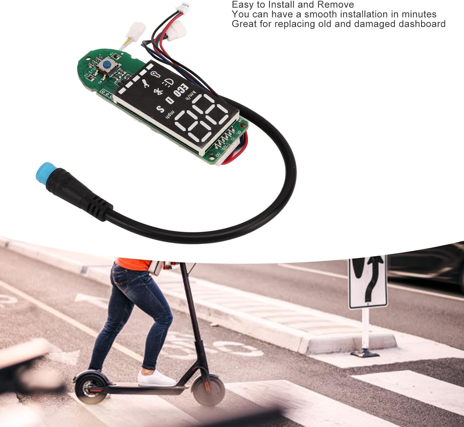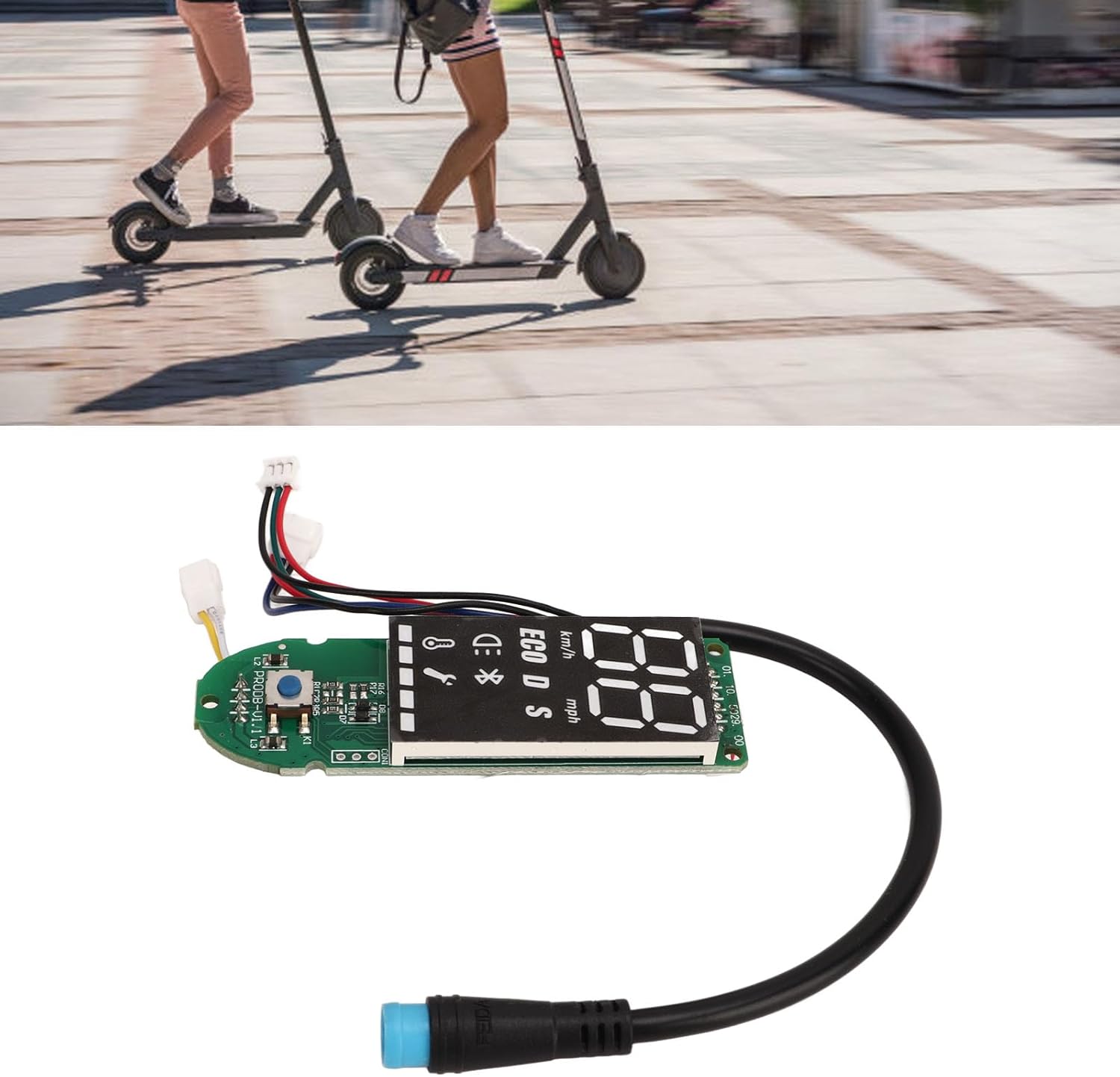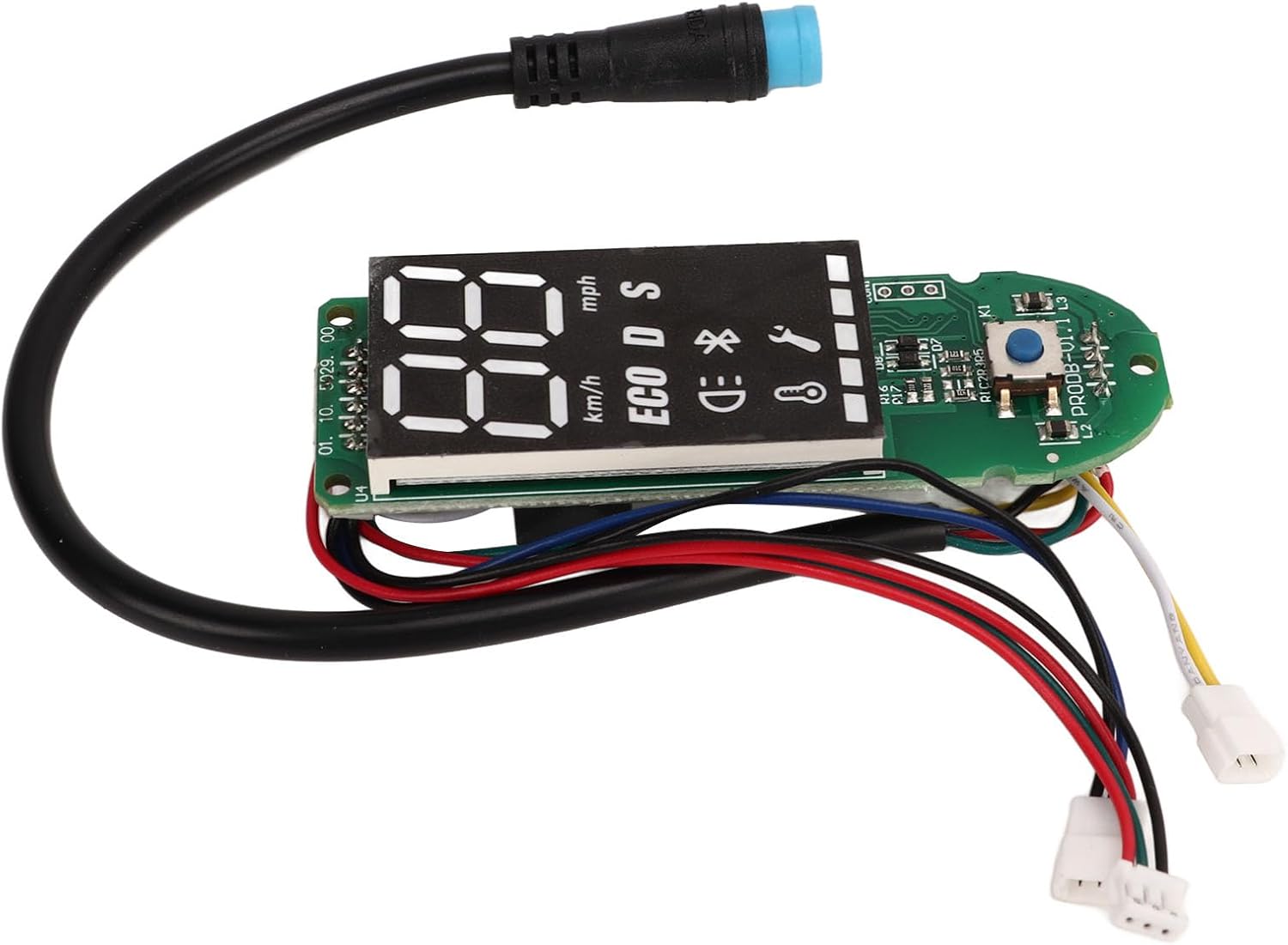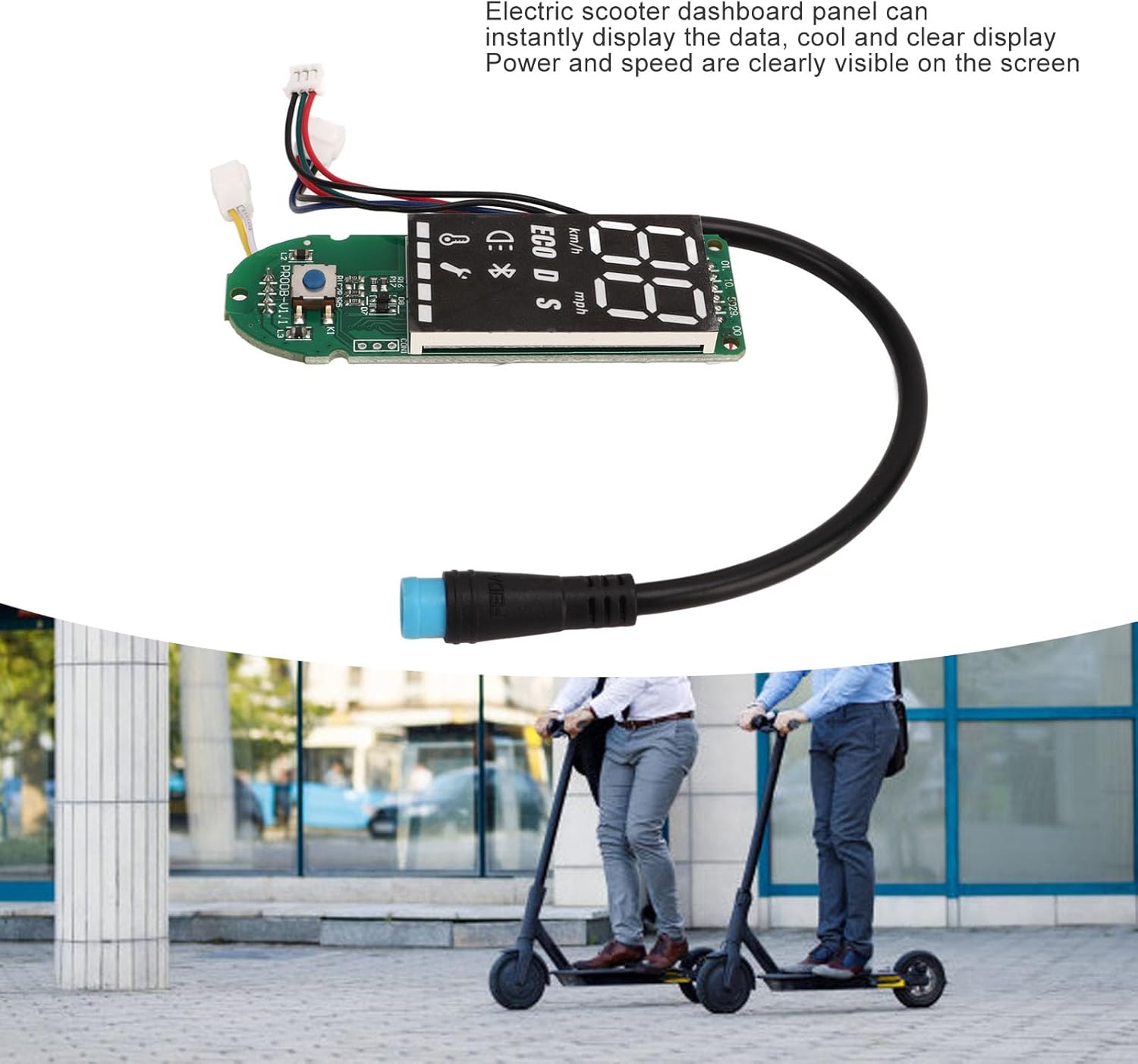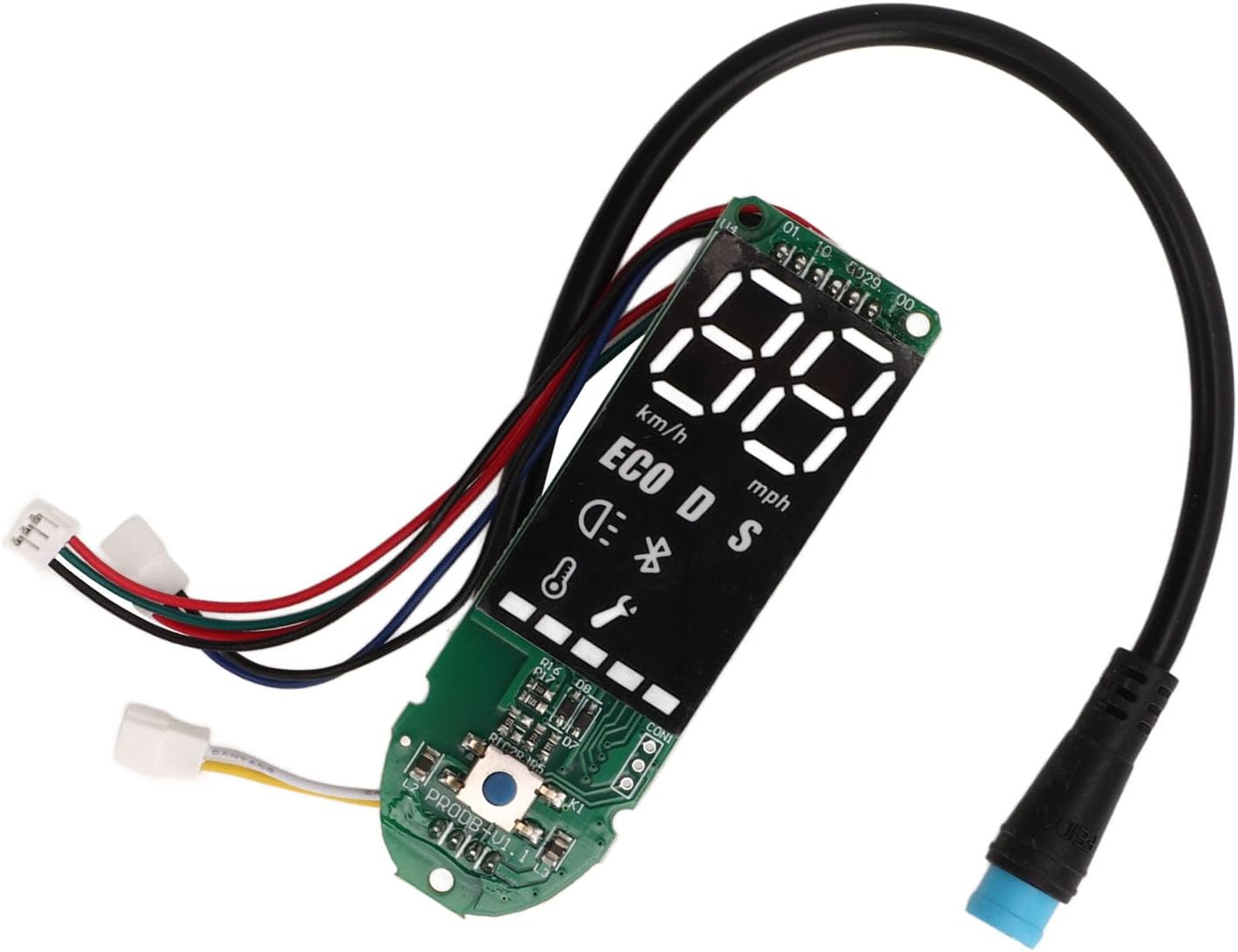ALTE PRESTAZIONI: il circuito BT fornisce una buona connessione. Dopo aver installato il dashboard Bluetooth di questo scooter elettrico, puoi vedere chiaramente la potenza e la velocità sul pannello dei dati di visualizzazione in tempo reale. INSTALLAZIONE RAPIDA: il circuito stampato del cruscotto dello scooter elettrico è facile da installare e rimuovere e può essere installato senza problemi in pochi minuti. Il circuito del cruscotto dello scooter è adatto per gli scooter elettrici Pro. MATERIALE: il circuito stampato Bluetooth dello scooter è realizzato con materiali PCB selezionati, che hanno una lunga durata e possono essere utilizzati a lungo. Può garantire ottime prestazioni anche in condizioni di bagnato. NOTA: prima di ordinare questa scheda Bluetooth, verificare se è danneggiata solo la scheda Bluetooth. Solo la scheda Bluetooth è danneggiata e il controller principale non è danneggiato e può essere sostituito direttamente. SOSTITUZIONE: Il cruscotto dello scooter è molto adatto per sostituire quelli vecchi e danneggiati, facile da installare e utilizzare, in modo che il tuo scooter elettrico possa essere riportato al normale utilizzo.