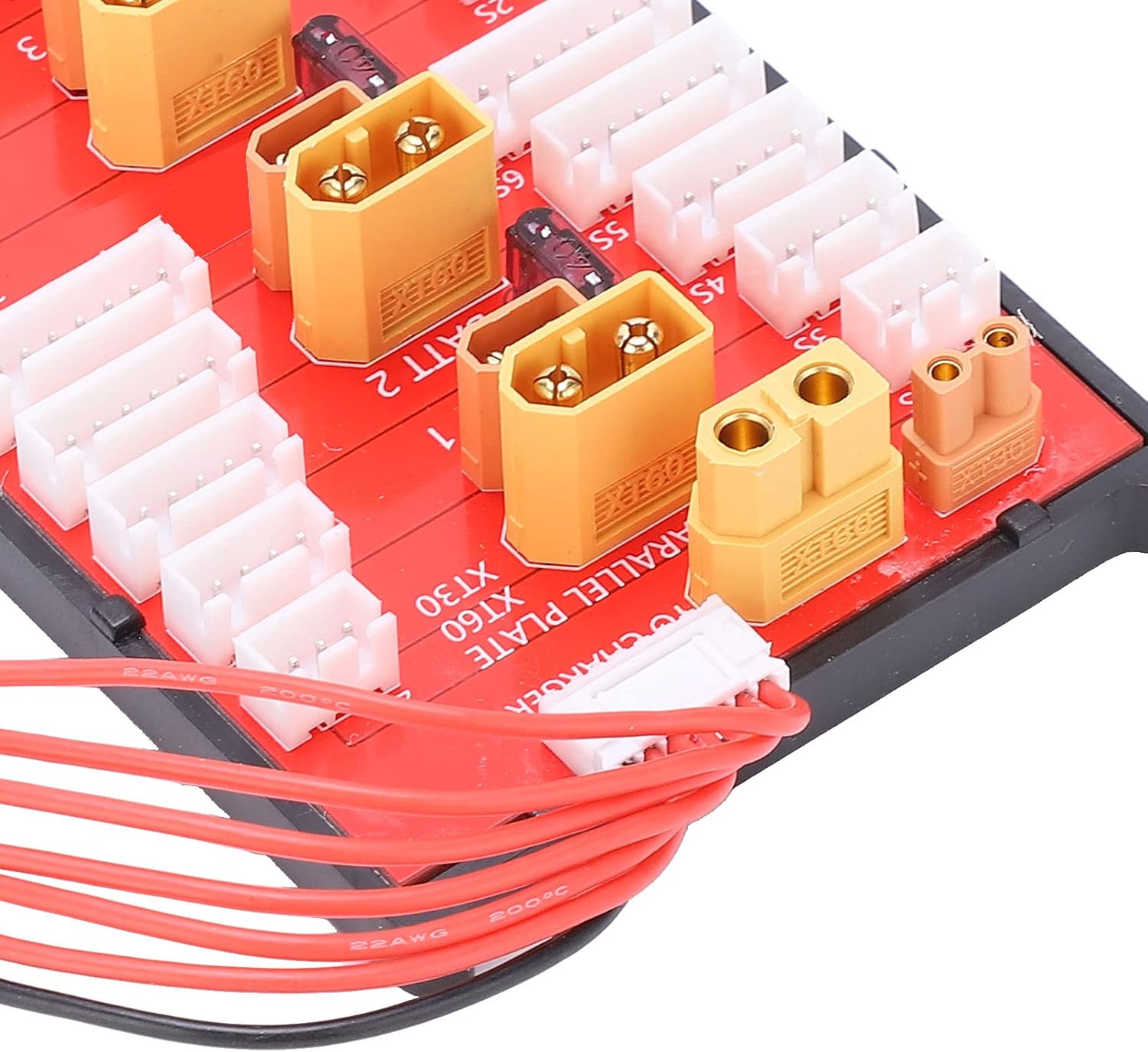 Sicuro e durevole: Scheda di ricarica parallela PG fusibile da 40 A è installato tra i due set di batterie per evitare di bruciare le batterie ad alta tensione della linea, il che è più sicuro. Parte di sostituzione: il cavo di uscita bilanciato e il cavo in silicio multi-trefolo 18awg sono più durevoli e sono parti di ricambio per l'aggiornamento. Supporta più pacchi batteria: la scheda di ricarica parallela RC può supportare fino a 4 pacchi batteria dello stesso modello e lo stesso pacco batteria da 2 a 8 s. Parte di sostituzione: il cavo di uscita bilanciato e il cavo in silicio multi-trefolo 18awg sono più durevoli e sono parti di ricambio per l'aggiornamento. Migliori prestazioni di ricarica: i connettori placcati in oro di garantiscono prestazioni di ricarica più sicure e migliori.