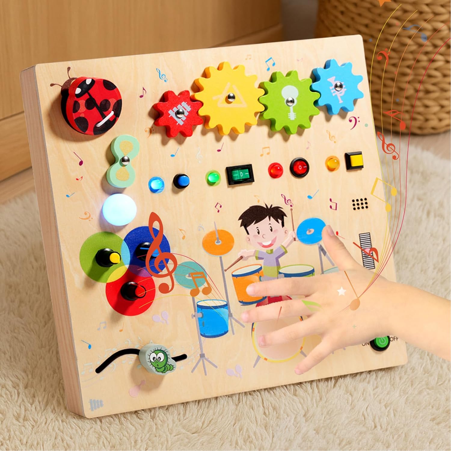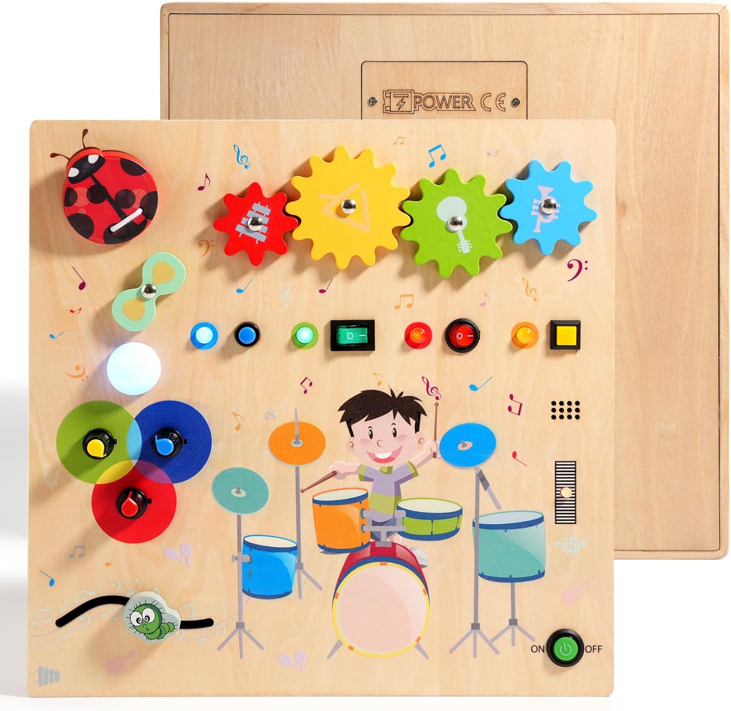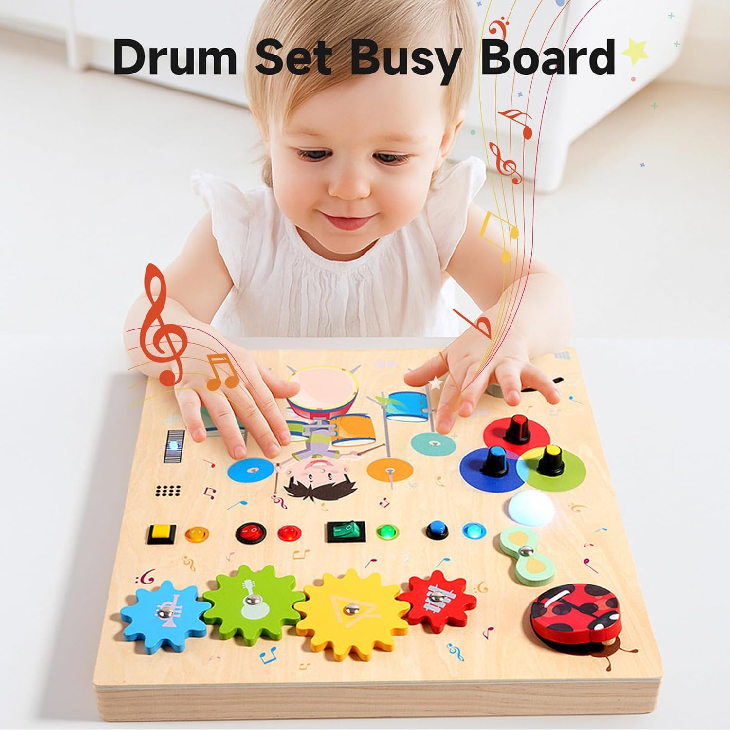 Materiale in legno: realizzato in compensato e plastica selezionati, questa scheda sensoriale è e ideale per bambini e bambini piccoli da giocare senza preoccupazioni. Modello di tamburo: il giocattolo presenta il modello di batteria, simulando l'effetto della batteria reale. Questo aiuta a migliorare la percezione musicale dei bambini fin dalla tenera età. Accattivante design della luce a LED: le luci a LED incorporate sono progettate per attirare l'attenzione dei bambini, aggiungendo un'esperienza visiva divertente e coinvolgente al loro tempo di gioco. CONSIGLIO DI ATTIVITÀ: questo consiglio di attività sensoriale incoraggia i bambini a sviluppare la coordinazione oculare a mano e scatenare la loro immaginazione attraverso il gioco interattivo. Educazione precoce: questa tavola sensoriale in legno è un giocattolo ideale per l'istruzione precoce dell'asilo. Coltiva le mani e l'immaginazione dei bambini.