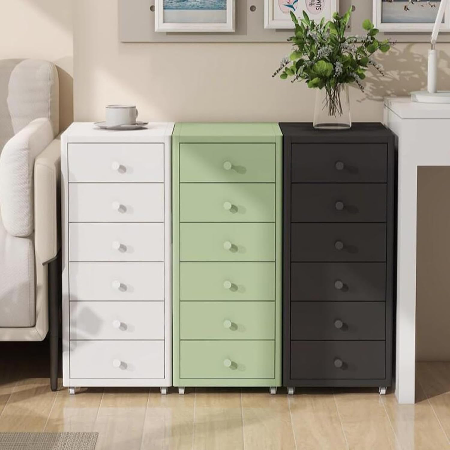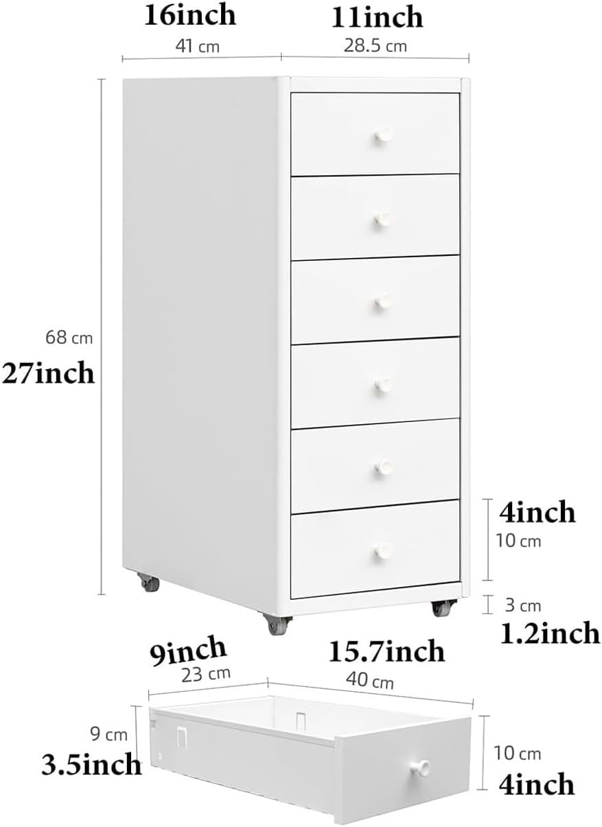 Organizzazione a sei cassetti: include sei cassetti per un'efficiente archiviazione e organizzazione della scrivania, ideale per l'uso a casa o in ufficio Mobile e comodo: include ruote per una facile mobilità, che consentono di spostare l'armadietto secondo necessità Utilizzo versatile: funziona sia come schedario che come supporto per stampante, fornendo spazio di archiviazione a doppio uso Costruzione durevole: Realizzato in acciaio per resistenza e uso a lungo termine Dimensioni compatte: Misura 11" (28,5 cm x 41 cm x 68 cm) x 16 pollici x 27 pollici), si adatta perfettamente sotto le scrivanie e ottimizza lo spazio dell'ufficio