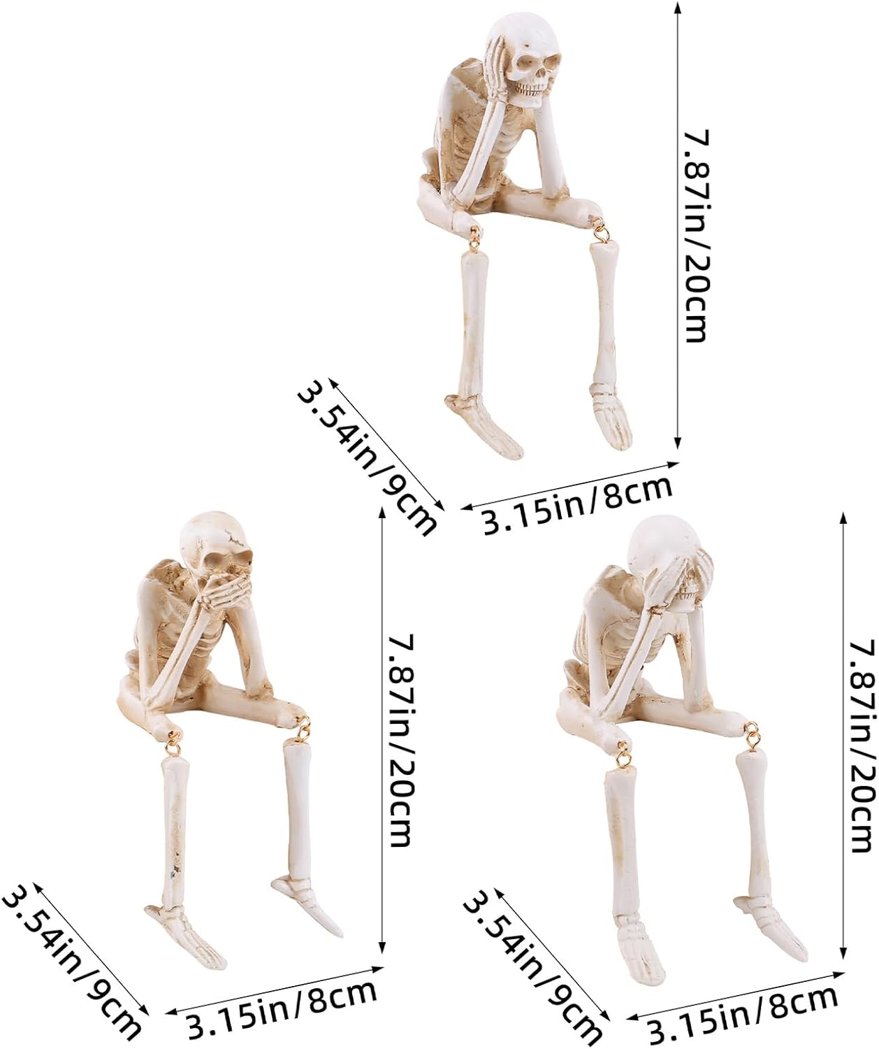 Ampie applicazioni: queste figurine scheletriche sono ideali per decorare la tua scrivania o libreria. La base antiscivolo garantisce una posizione sicura. Si armonizzano perfettamente con gli accessori a tema e creano così un quadro generale uniforme e visivamente accattivante. Realizzato a mano con attenzione ai dettagli: gli elementi intagliati a mano si combinano con le precise caratteristiche del viso per creare una trama sublime che, attraverso una maestria artigianale, conferisce a ogni pezzo un aspetto realistico e un fascino visivo. Forma e colore stabili: grazie alla resina altamente compressa, queste figure scheletriche mantengono permanentemente la loro struttura e intensità di colore, perfette per l'uso all'interno e all'esterno in scenari di decorazione stagionale o continua. Design accattivante: la combinazione del motivo del teschio tridimensionale e della decorazione che occupa spazio crea una dichiarazione audace per sofisticati design di interni. Ideale per valorizzare l'arredo della zona giorno o dell'ingresso e affinare l'aspetto estetico complessivo. Semplice: progettate in modo pratico con elementi rimovibili, queste figure semplificano lo stoccaggio, riducono le esigenze di pulizia e consentono un rapido smontaggio, il tutto in un concetto portatile e leggero