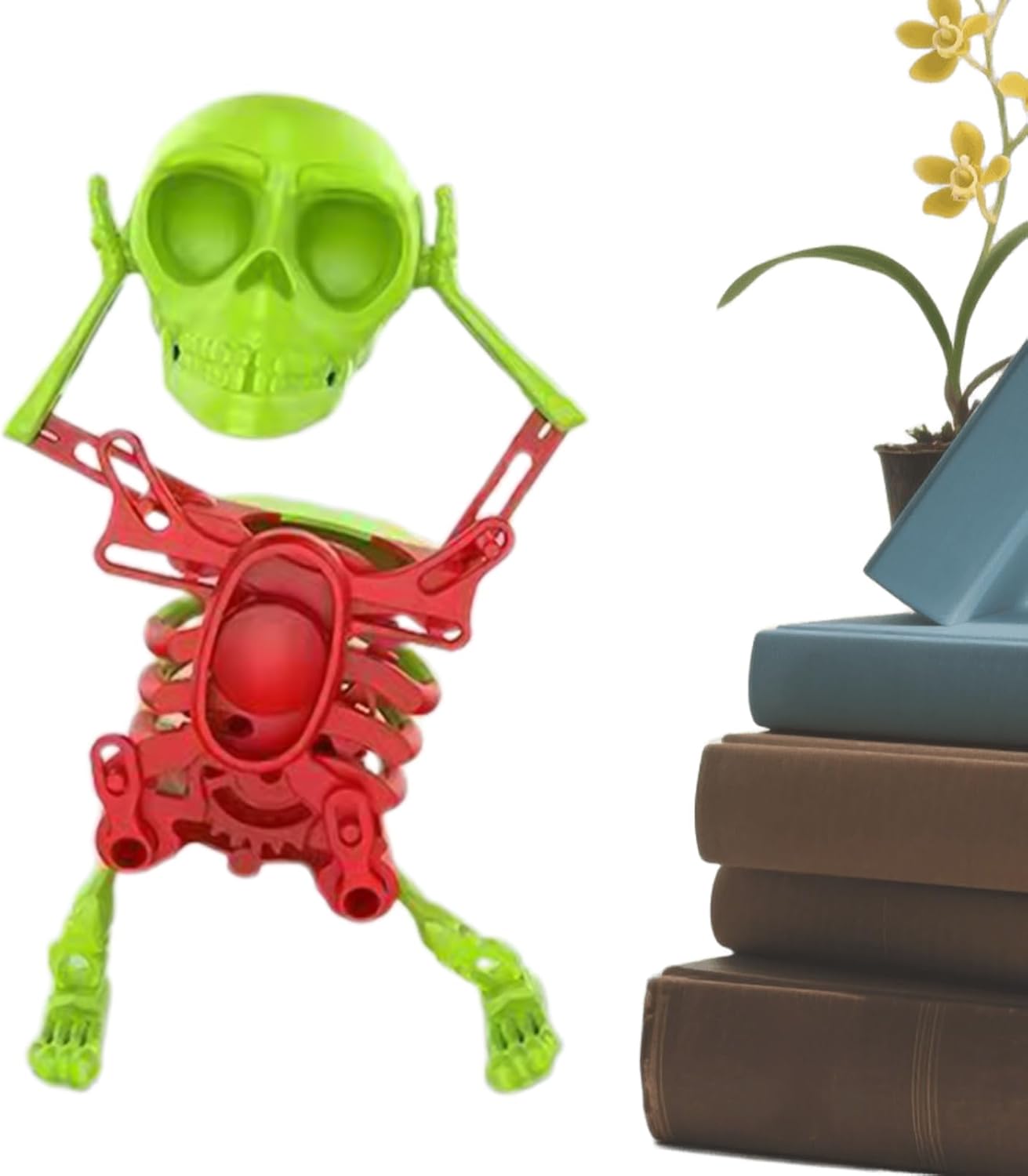 Idea regalo: questo giocattolo a forma di scheletro è un meraviglioso regalo per ragazze e bambini per compleanni, feste, Natale e feste di anno, che trasmette affetto e cura Posizionamento flessibile: il giocattolo decorativo a scheletro arricchisce con il suo design unico numerose aree come librerie, scrivanie, soggiorni, camere per bambini o accoglienti stanze per hobby. Si adatta perfettamente a diversi arredi e supporta un design accattivante della stanza. Funzionamento sicuro senza batterie: il giocattolo scheletro funziona completamente senza batterie grazie a un semplice meccanismo di caricamento, offre movimenti divertenti e garantisce così un intrattenimento sicuro per i bambini di tutte le età Divertimento di intrattenimento universale: come divertente decorazione da scrivania per tutte le età, questo scheletro 3D a dondolo combina movimenti danzanti con l'affascinante atmosfera di Halloween ed entusiasma i bambini e gli adulti allo stesso modo Esperienza di gioco spensierata: focalizzata sulla sicurezza con materiali delicati e durevoli, consente un gioco creativo e vivace senza preoccupazioni per i genitori