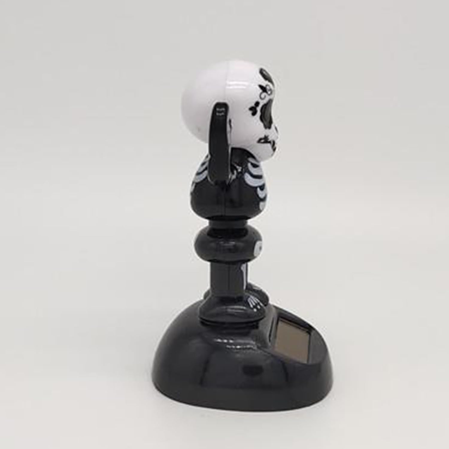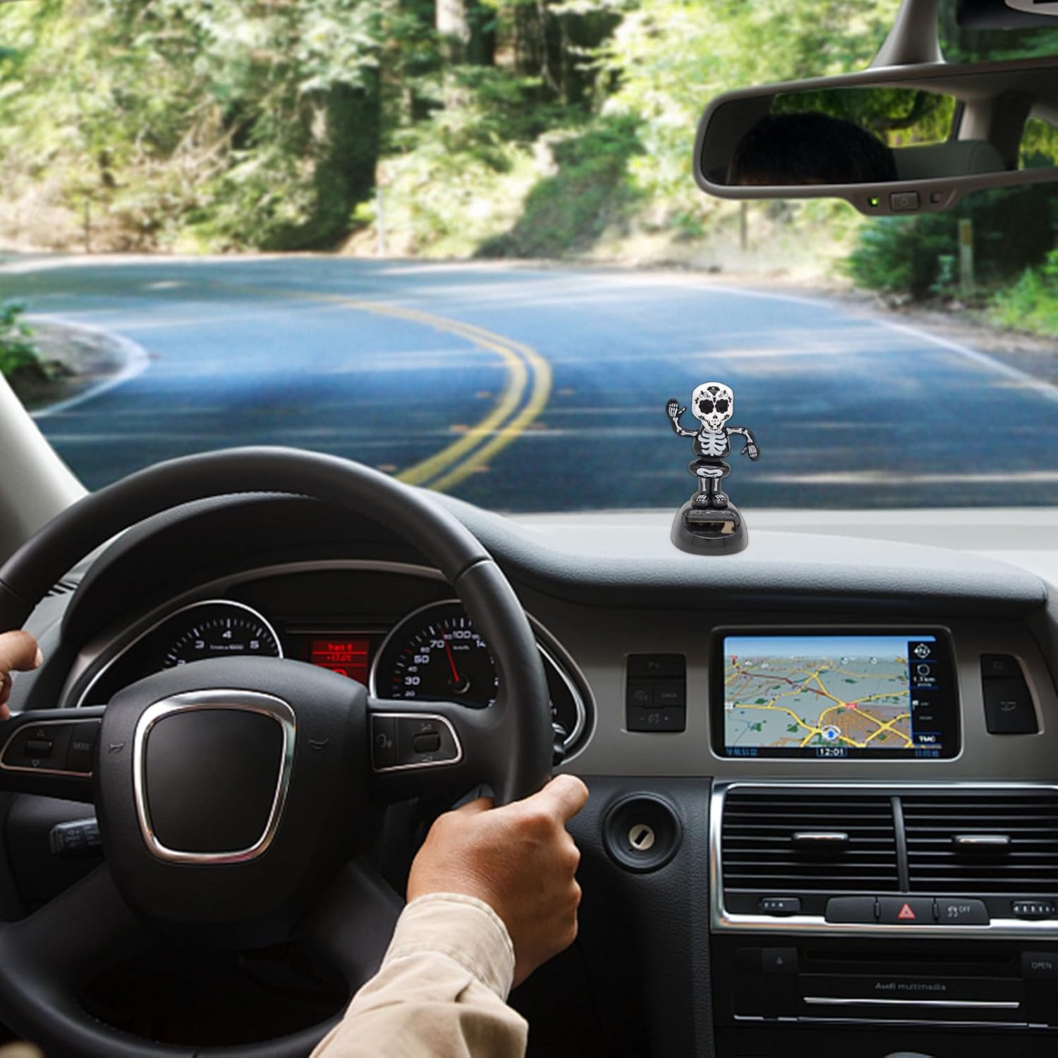 Azionamento solare Swinging Delight: questa piccola figura scheletrica è dotata di innovativa tecnologia solare, che può oscillare automaticamente senza fonte di alimentazione esterna. Decorazione di Halloween: aggiungi il fascino al tuo Halloween con questa piccola figura scheletrica. Il design unico del teschio si adatta perfettamente al tema di Halloween e crea un ambiente inquietante che stupirà i vostri ospiti. Posizionamento sicuro: l'innovativo design di base di questo piccolo scheletro garantisce un posizionamento sicuro sul cruscotto dell'auto. Rimane e non scivola nemmeno su strade accidentate, mentre i movimenti della tua auto oscillano elegantemente per dare un tocco di stile al tuo veicolo. Uso versatile: migliora qualsiasi stanza con un tocco festivo; questa piccola figura scheletrica perfetta per la decorazione di auto o scrivania, porta un'atmosfera di vacanza in qualsiasi ambiente. Ottimo regalo: trasmetti i tuoi sentimenti ai tuoi cari con questa piccola figura scheletrica, un regalo perfetto per chi ama gli oggetti unici e nuovi. Non solo una semplice decorazione, ma anche una creatività per ogni casa.