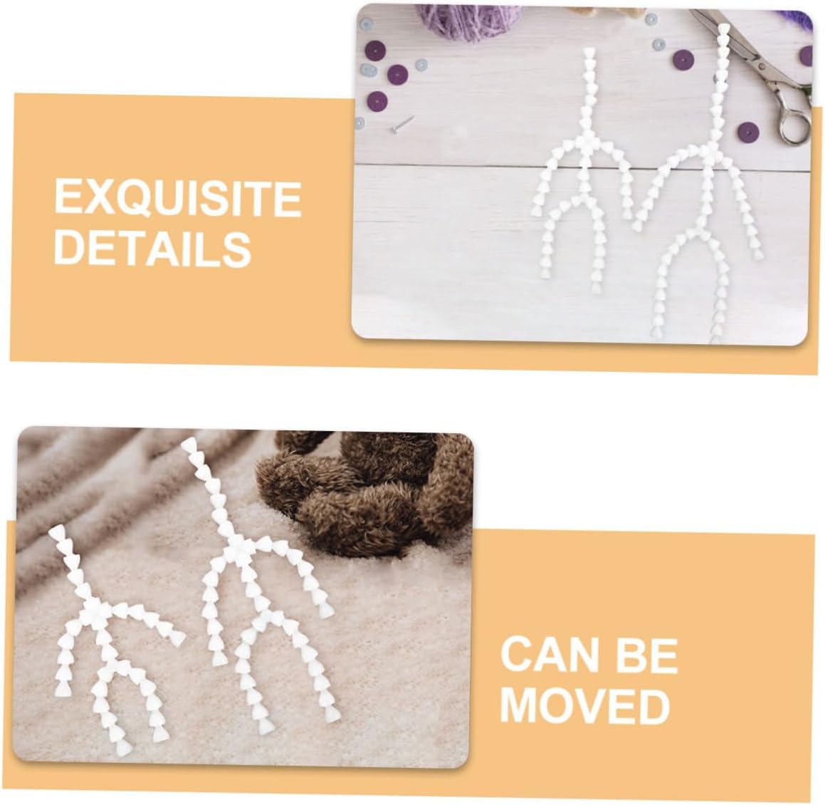 Scheletro di burattino mobile: lo scheletro di bambola è ottimo per bambole e burattini, il che può rendere quei giocattoli più flessibili e divertenti, scheletro di figura Parti mobili della bambola: le diverse dimensioni dello scheletro possono adattarsi alle diverse dimensioni delle bambole, quasi adatte a ogni tipo di burattino nella tua casa, scheletro di bambola di plastica Scheletro giocattolo mobile: questo tipo di scheletro è silenzioso, il che significa che non produrrà alcun suono quando lo utilizza per mettere in posa la bambola, scheletro di bambola mobile Telaio per bambola di peluche: utilizzato per peluche, animali all'uncinetto, orsacchiotti di memoria, animali domestici, come orsacchiotti di peluche, in modo che il collo, il braccio e la gamba possano ruotare di 360 gradi in modo flessibile, scheletro di bambola Parti di bambola di peluche: aggiunta perfetta al corpo per consentire loro di movimenti realistici, che possono rendere più divertente il , telaio della bambola