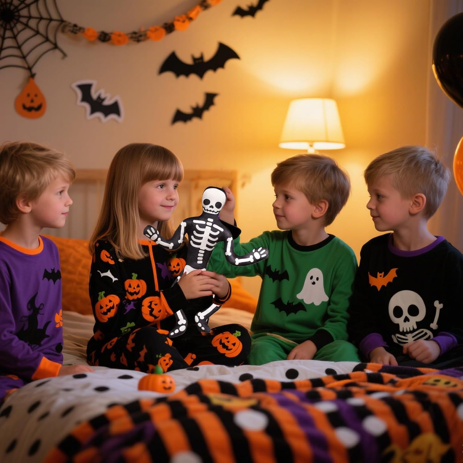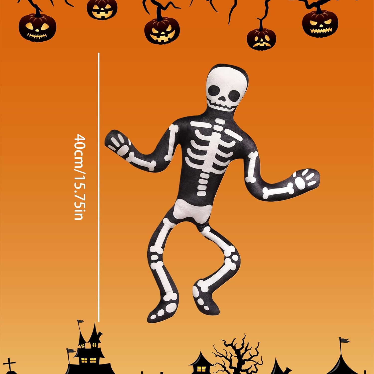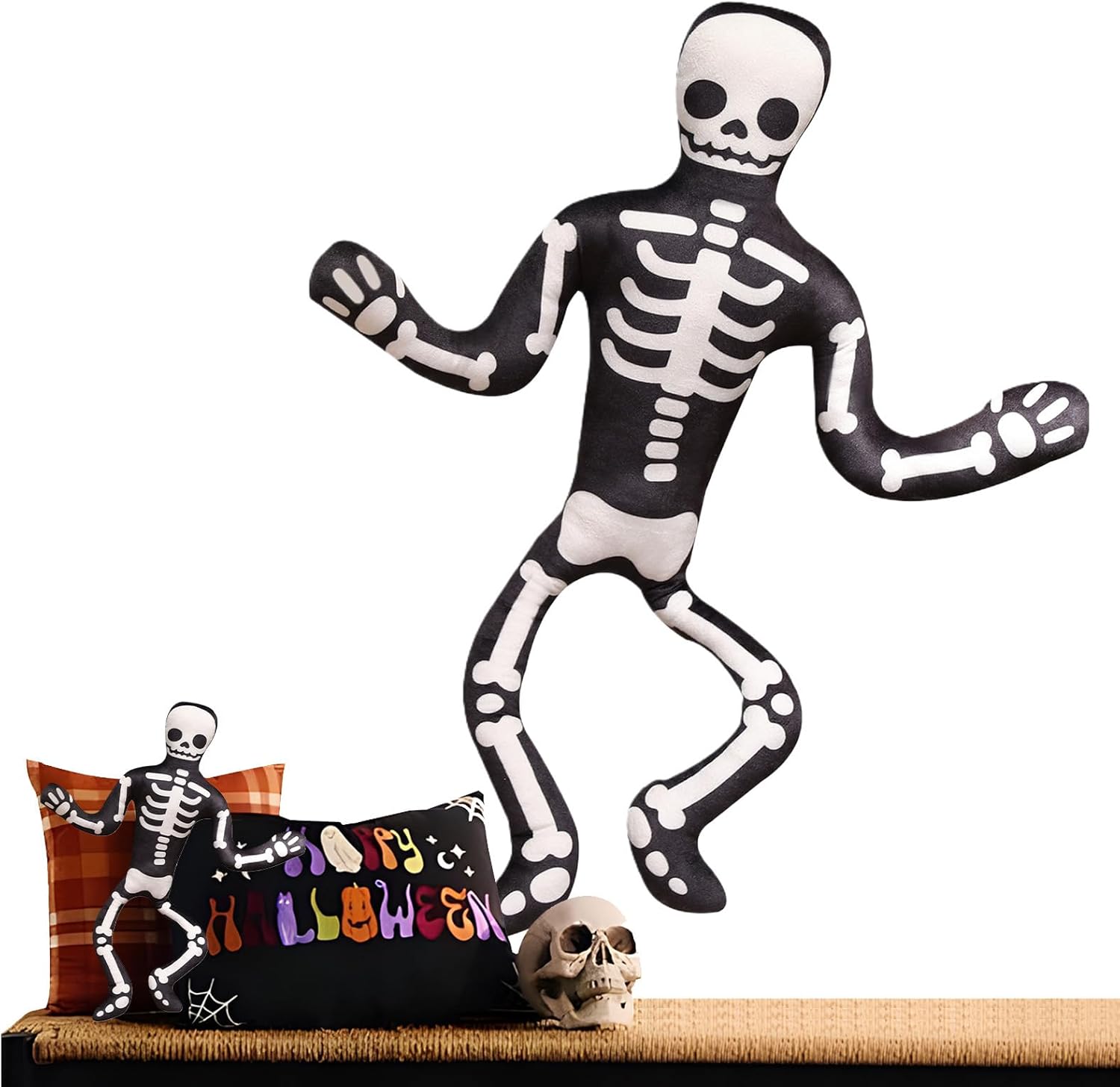 Trasformazione dell'atmosfera inquietante: lo scheletro giocattolo di peluche di Halloween porterà un'atmosfera giocosa e inquietante nella tua casa con un'espressione sorridente e un design esagerante degli occhi che migliora la decorazione adatta ai bambini e allo stesso modo Il peluche a scheletro di Halloween offre un comfort traspirante: con superfici in tessuto felpato fornisce un supporto traspirante per ottimizzare il rilassamento quotidiano, prevenendo efficacemente il surriscaldamento offrendo un comfort rilassante durante i tempi di fermo a casa o al volume casual. Design salvaspazio: questo giocattolo di peluche farcito di Halloween è realizzato con un design a forma piatta, che offre una stretta compatibilità dello spazio per migliorare la decorazione dell'utilità. Si adatta perfettamente agli scaffali o in aree ristrette e offre un fascino festivo senza disordine e allo stesso tempo è facile da implementare dopo le vacanze come parte della decorazione della casa Stimolazione dell'immaginazione: questo cuscino scheletrico di Halloween ispira la creatività trasformando gli spazi in ambienti inquietanti e offrendo più opportunità per giochi fantasiosi e narrazioni e allo stesso tempo servire come oggetti di scena perfetti per le feste in costume o per le celebrazioni per famiglie per catturare momenti indimenticabili Stabilità della forma stabile: lo scheletro riempito di Halloween è dotato di assicurazione di ritenzione di forma per garantire