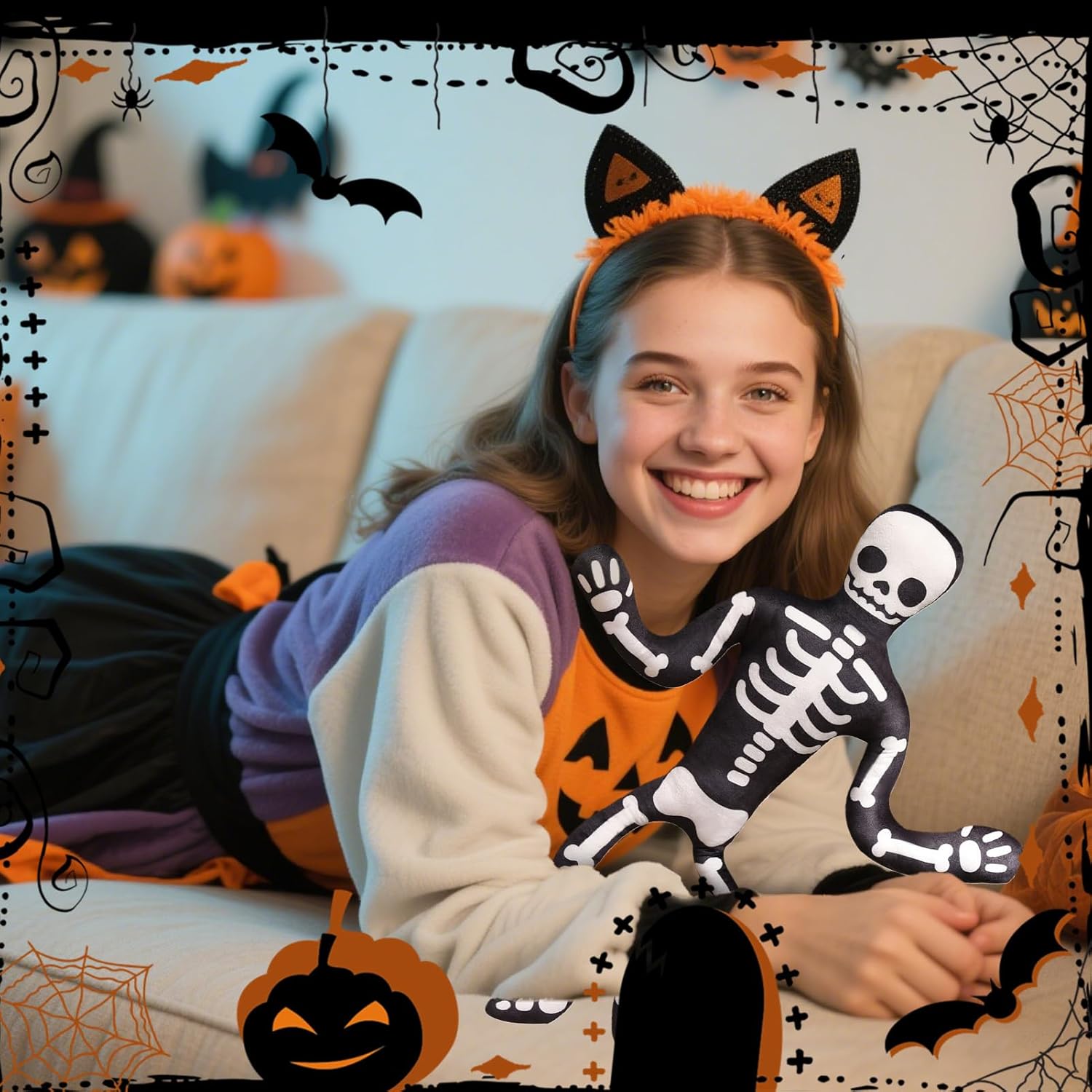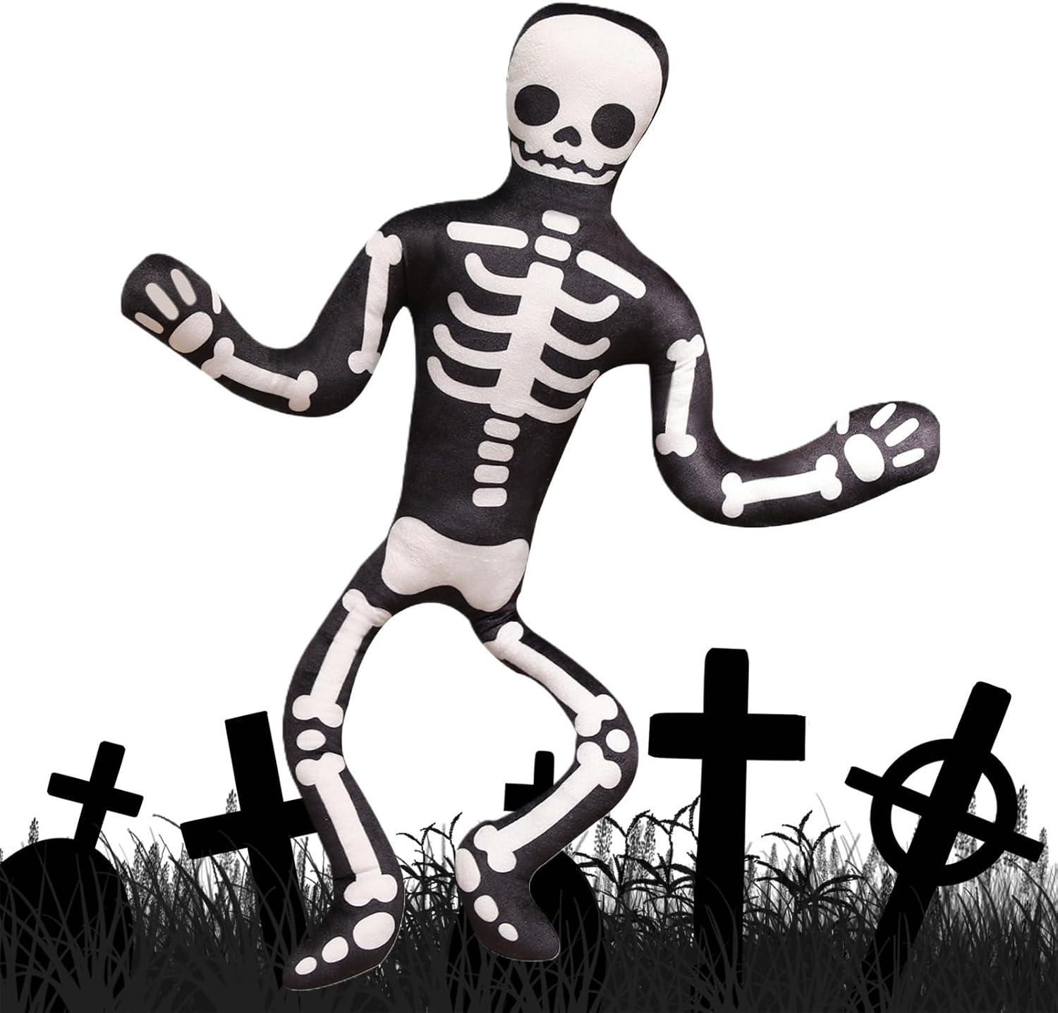Promozione giornaliera del recupero: questo scheletro di halloween è dotato di superfici morbide e traspiranti che favoriscono il relax quotidiano e sono ideali per le fasi di riposo sul divano o per godersi il lounge Per tutte le età: il cuscino di Halloween entusiasma bambini, adolescenti e adulti, incoraggia il divertimento e l'interazione insieme come decorazione versatile per feste o serate in compagnia con amici e parenti Soluzione salvaspazio: il design piatto del peluche di Halloween garantisce un ingombro minimo e un'utilizzabilità ottimale anche in spazi ristretti; la sua versatilità decorativa consente un riutilizzo creativo oltre le festività e dona un tocco individuale agli spazi abitativi tutto l'anno Atmosfera giocosa: questo scheletro di peluche per Halloween è progettato con occhi espressivi di grandi dimensioni e crea un'atmosfera giocosa e spaventosa. Serve come decorazione adatta ai bambini per porte di casa, sala giochi o come attrazione per feste a tema, senza perdere il suo carattere affascinante. Stabilità: la robusta struttura dello scheletro di peluche di Halloween garantisce una stabile stabilità della forma con frequenti manipolazioni e conservazione, mantiene il suo aspetto strutturato per decorazioni vivaci per molte stagioni di Halloween