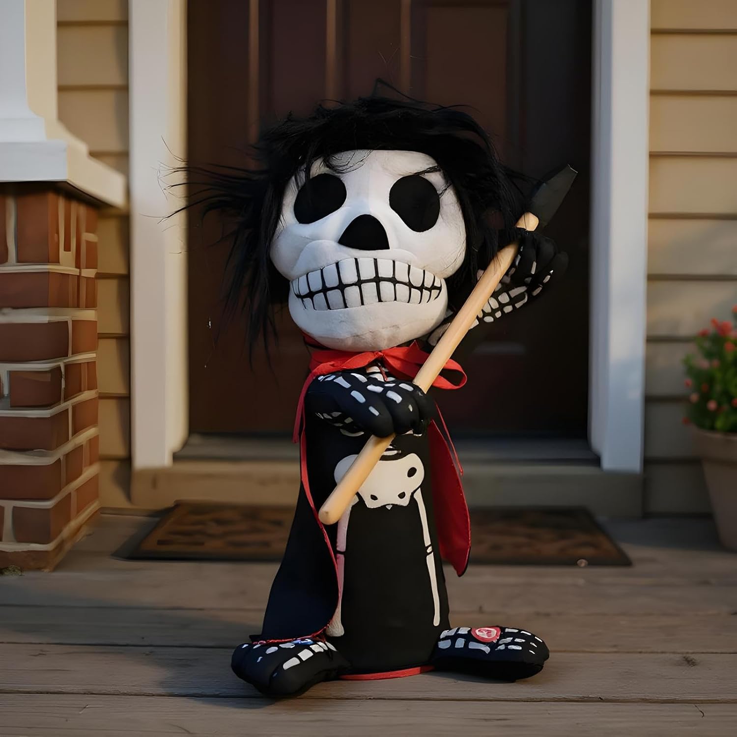 Illuminazione a distanza: grazie alla forte luminosità degli occhi tremolanti dinamici, lo scheletro è chiaramente visibile anche da oltre 10 metri di distanza e aumenta la brillantezza spettrale della vostra decorazione Subito pronto all'uso: utilizzabile senza problemi di installazione. Scheletro alimentato a batteria per decorazioni spontanee in casa, giardino o feste. Effetti spaventosi casuali: il sensore a bassa potenza rileva i movimenti e attiva automaticamente effetti imprevedibili, consente più di 48 ore di funzionamento per abbellire senza sforzo la tua decorazione spaventosa di Halloween. Suoni horror attivati dal movimento: grida e ossa create dal movimento, rafforzate da articolazioni flessibili, ideali per sorprese di Halloween e display a tema Giunti mobili: grazie ai collegamenti flessibili, questo scheletro spaventoso può essere posizionato liberamente o appoggiato per posizionamenti creativi su verande, davanzali o recinzioni come decorazione di Halloween