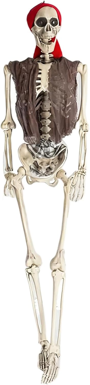 Posizione dinamica: grazie ai giunti regolabili si possono posizionare liberamente gli arti per posare seduti o sdraiati realistici che si adattano perfettamente ad aree come cortili, corridoi o concetti di decorazione individuali Rilassa l'umore: questo scheletro pirata diffonde un'atmosfera emozionante e serena grazie alla sua posa vivace e all'aspetto sorprendente e ispira al gioco co-progettato durante le celebrazioni Pronto per l'uso: nessun montaggio necessario e pronto all'uso per eventi festivi, lo scheletro dei pirati può essere facilmente posizionato su verande, alberi, prati o sedie e dona un fattore spaventoso immediato a qualsiasi evento pirata Design unico: lo scheletro dei pirati con fascia rossa e benda per gli occhi e vestiti sbriciolati creano un'atmosfera affascinante e spaventosa. Perfetto per decorazioni per casa spaventosa e feste di Halloween. Aumenta l'effetto immersivo di ogni scenario spaventoso grazie ai dettagli autentici e all'aspetto esposto alle intemperie. Struttura resistente alle intemperie: il versatile scheletro pirata combina caratteristiche resistenti alle intemperie con una struttura stabile per un uso senza cuciture all'interno e all'esterno e possibilità di decorazione di lunga durata
