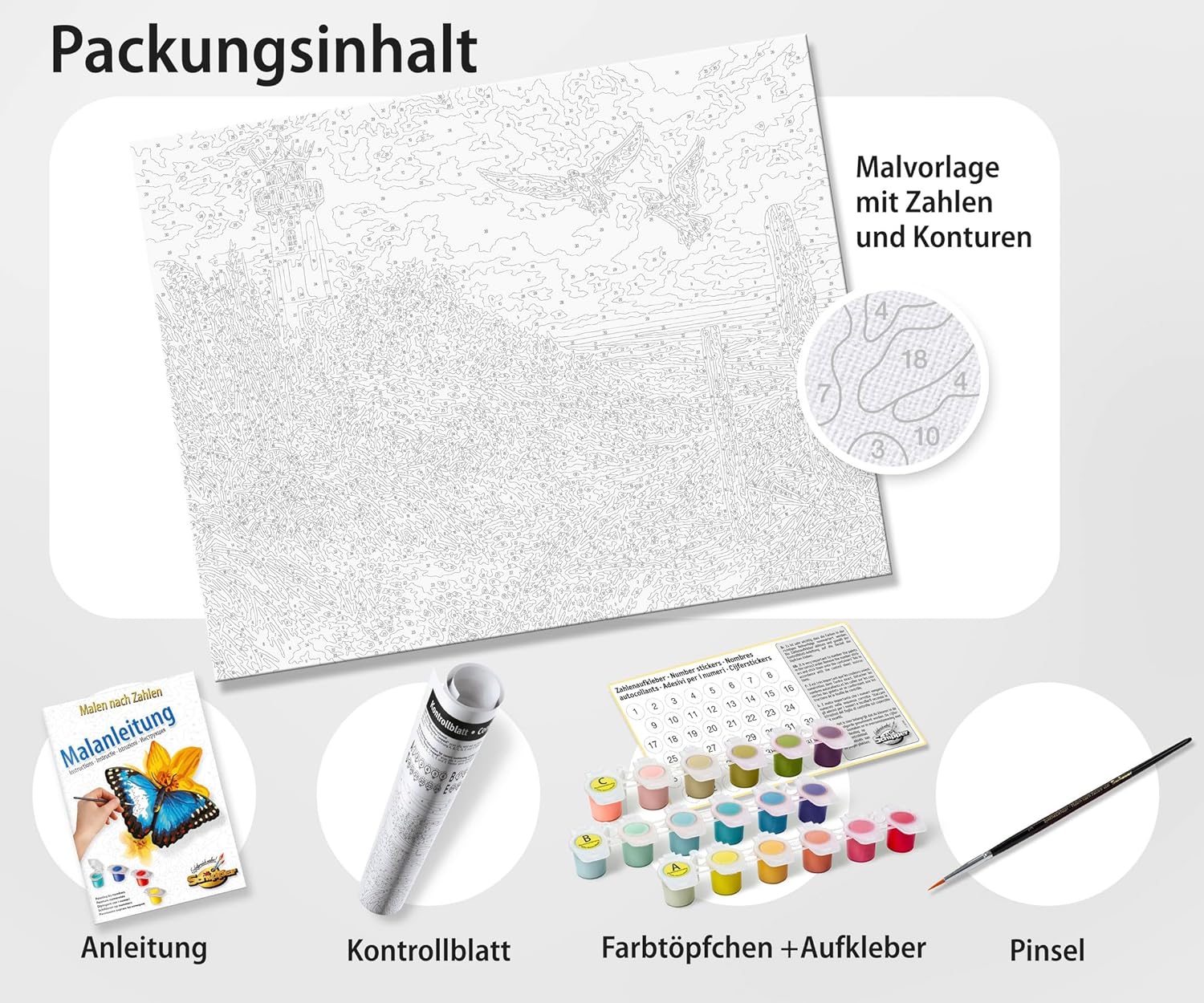 Fantastico modello: con la pagina da colorare Schipper per adulti, ogni pittore amatoriale e principiante ottiene un'opera d'arte sulla tela, che funziona senza alcuna conoscenza preliminare del tema della pittura Dipinto – Portate questo splendido motivo nel vostro salotto. I fantastici colori garantiscono una piacevole atmosfera nelle vostre quattro pareti Effetto olio su tela: la tela finemente prestampata ha una struttura in lino visibile e visibile. Ciò evidenzia ancora una volta il carattere autodipinto dell'immagine dopo il completamento Set completo – La confezione include 36 colori acrilici a base d'acqua, un pennello da pittura, un modello di istruzioni e 1 tela con le seguenti dimensioni: 40 x 50 cm Produttore tedesco: Schipper offre un'ampia scelta di motivi per adulti e bambini. La qualità viene portata al livello successivo e la tecnica della pittura è quasi impossibile da vedere