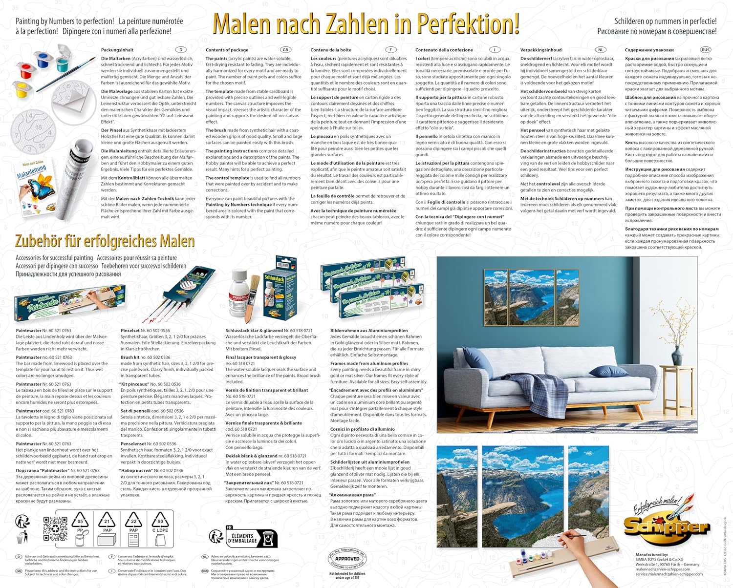Schipper 609260922 Dipingere con i numeri, Trolltunga in Norvegia, pittura per adulti, inclusi pennelli e colori acrilici, trittico, 50 x 80 cm