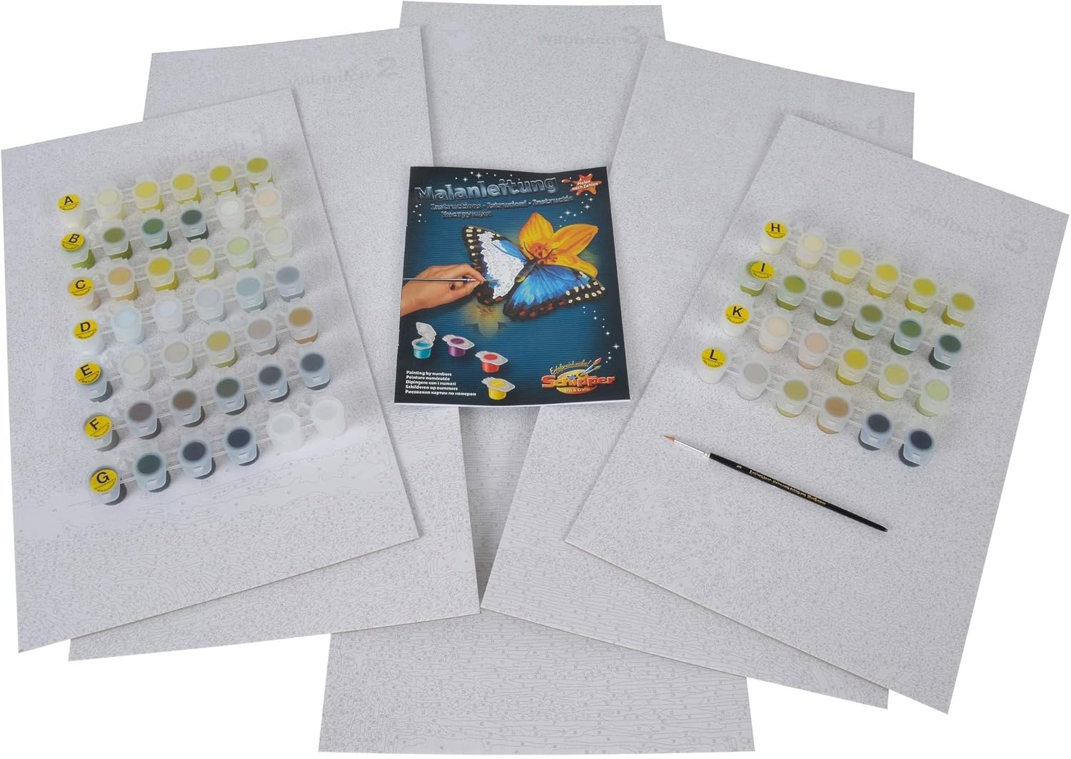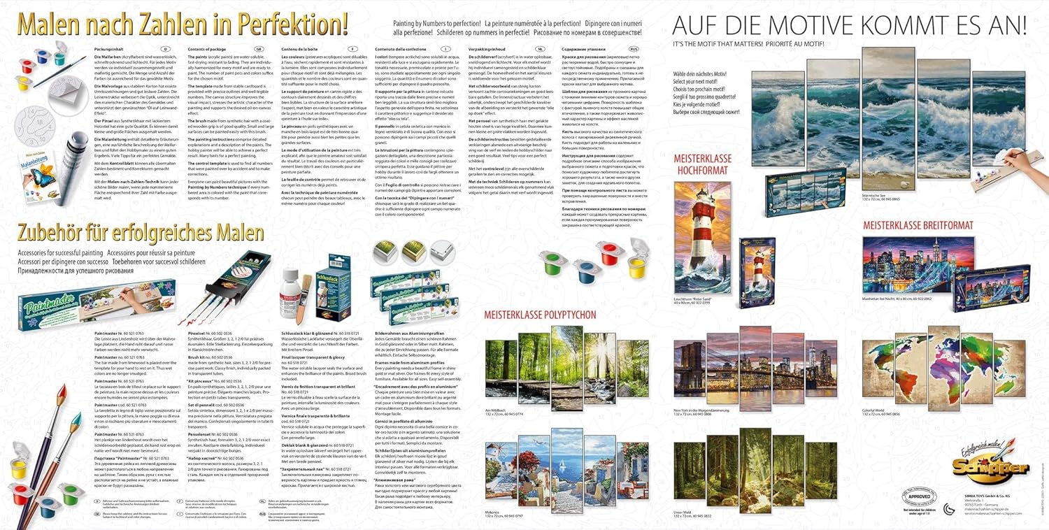 Dipinto su tela. Vernici acriliche premiscelate e pronte all'uso. Pennello incluso. Foglio di controllo e istruzioni dettagliate (lingua inglese non garantita).