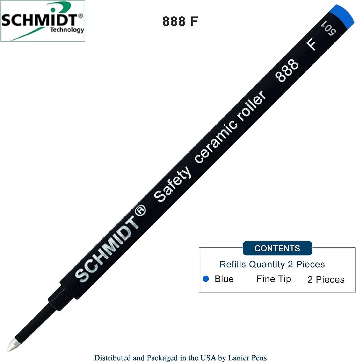 Schmidt 888 - Penna a sfera a punta fine (0,6 mm), inchiostro blu, in plastica, corpo in acciaio inox, ricarica per penna a sfera in ceramica, confezione da 2 Come primo produttore in Germania, SCHMIDT Technology sviluppa e produce ricariche per penna a sfera da oltre mezzo secolo. La lunga esperienza nello sviluppo unita a tecniche di produzione specializzate ha portato a prodotti con caratteristiche notevoli. Molti noti produttori di strumenti da scrittura in tutto il mondo assemblano le loro penne a sfera con ricariche provenienti dall'azienda SCHMIDT. SCHMIDT 888 F Roller Ball Refill è di prima classe ed è dotato di punte in acciaio inossidabile di alta qualità e sfera in ceramica. Refill SCHMIDT 888 F una delle migliori ricariche di scrittura che viene pubblicizzata come una delle migliori ricariche di scrittura. La tecnologia di sicurezza è caratterizzata da caratteristiche estese di shelf-life. È quindi particolarmente adatto per l'uso in penne senza chiusura a tappo. Le ricariche di inchiostro liquido SCHMIDT offrono grandi prestazioni e facilità di utilizzo. Questa comodità è dovuta a una facile e liscia scorrevolezza sulla carta. I produttori di penne di tutto il mondo si affidano alle ricariche di inchiostro liquido di SCHMIDT Technology. Le ricariche SCHMIDT 888 sono dotate di un tappo terminale nel loro colore di scrittura individuale e di un cappuccio di protezione nel colore del sistema di scrittura. Le ricariche di sicurezza Schmidt evitano l'essiccazione grazie a un sofisticato sistema di ventilazione e sono progettate per l'uso in strumenti di scrittura senza tappi di tenuta perfetti. Preparati per un'esperienza di scrittura senza precedenti con l'esclusiva ricarica Safety Ceramic Roller 888 F di SCHMIDT distribuita da Lanier Pens.