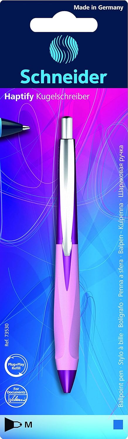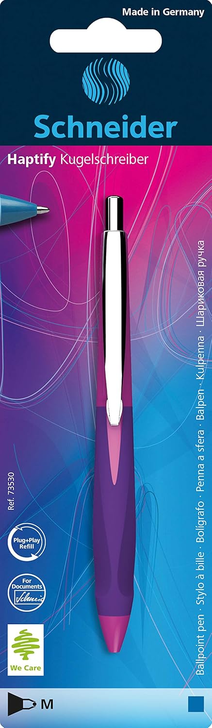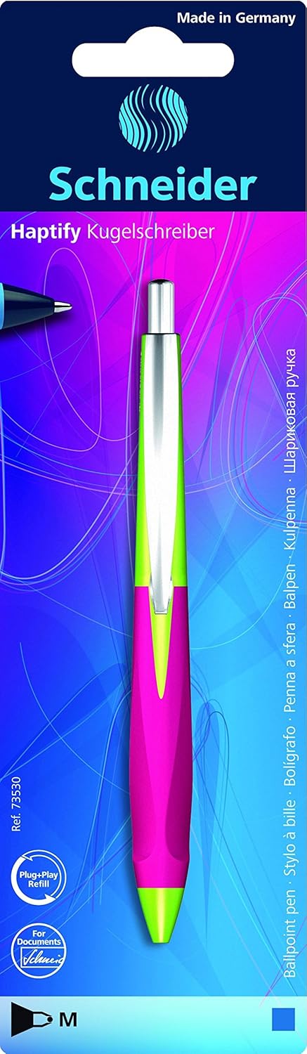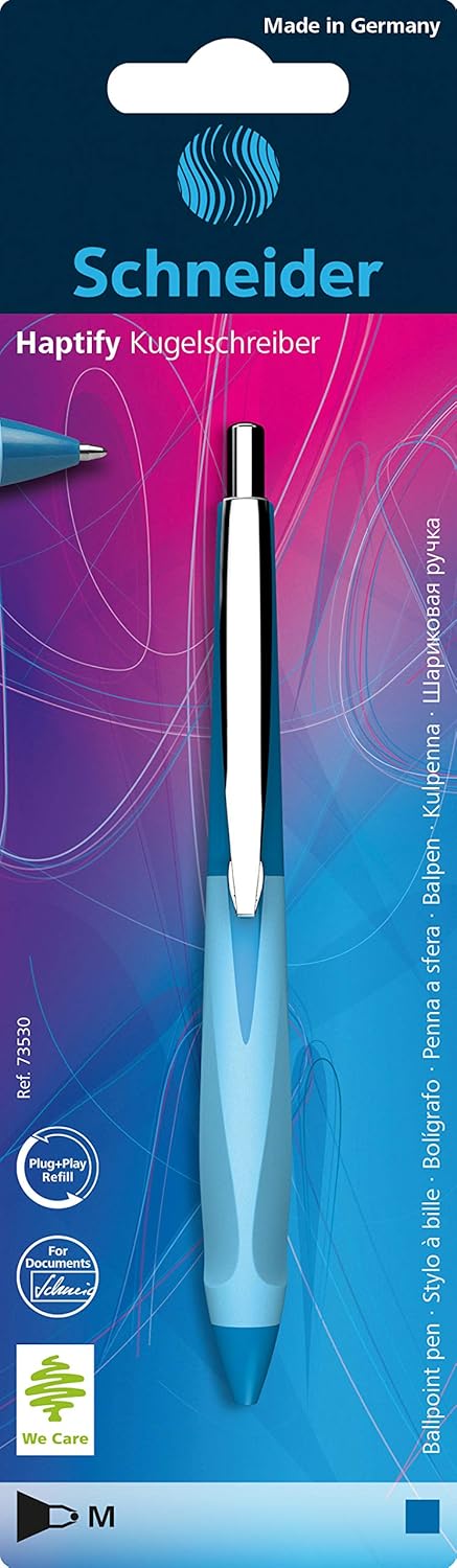 Penna a sfera con impugnatura ergonomica in gomma a tre superfici per una posizione ideale della mano La mina in metallo intercambiabile Express 775 Medium (M) garantisce una piacevole sensazione di scrittura morbida Colore inchiostro: blu, indelebile secondo ISO 12757-2 La punta in acciaio inox resistente all'usura garantisce che la grande riserva di pasta possa essere utilizzata completamente e senza sbavature Haptify ha una robusta clip in metallo ed è ricaricabile con diversi formati di mine grazie all'intelligente sistema Plug + Play