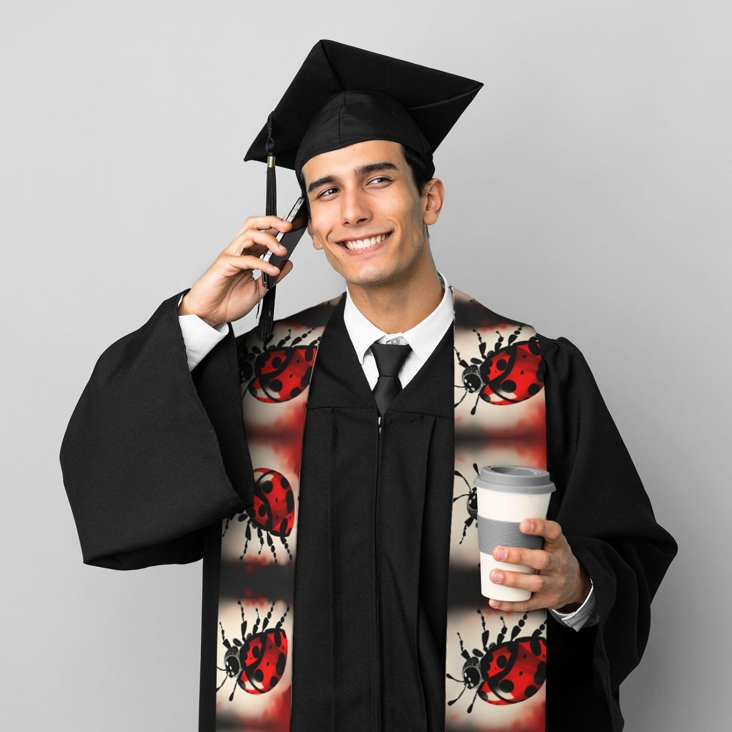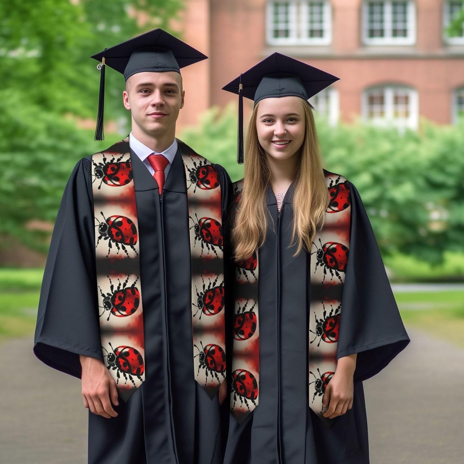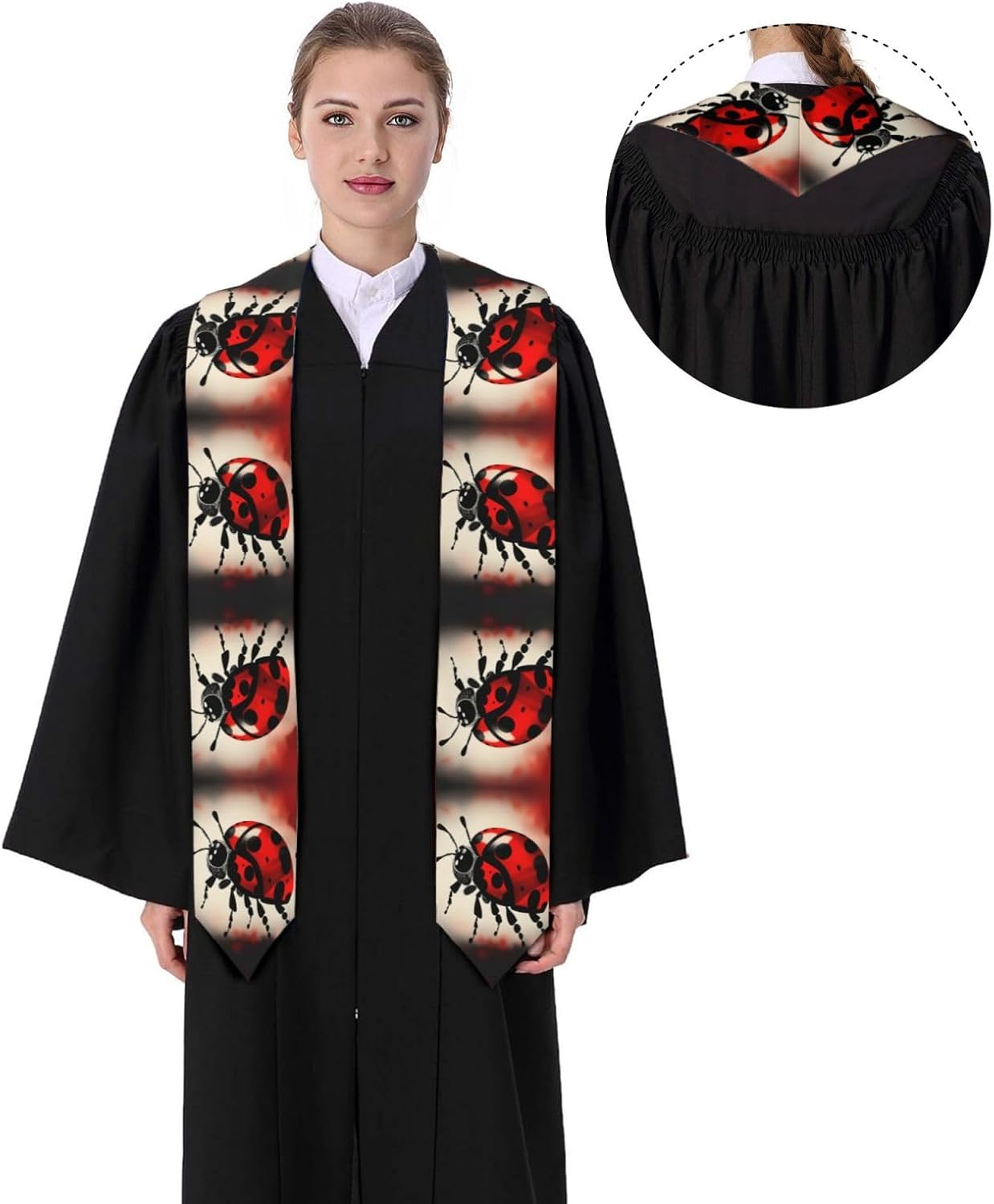 Questo nastro per scialle di laurea Art Ladybug Tracks è realizzato in raso colorato di alta qualità, leggero, ha un buon drappeggio, è lucido e non si deforma facilmente. Lo squisito design del motivo rende lo scialle molto adatto per abiti da laurea, senza scivolare. Questo è un importante regalo di laurea, che è molto adatto per parenti, figli, figlie, amici e sorelle. Design ad angolo acuto su entrambe le estremità, con una rottura nel mezzo