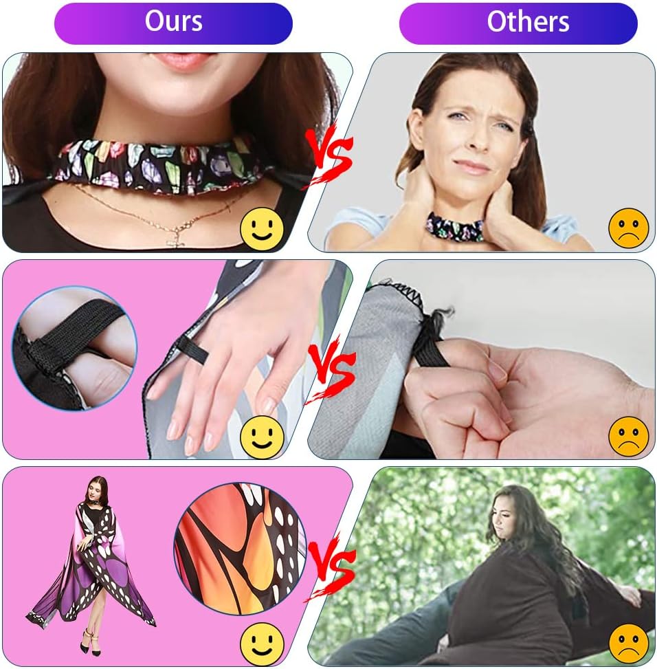 🦋【Elegante Scialle a Farfalla】 - Le splendide ali di farfalla sono realizzate in materiale poliestere, delicato al tatto, confortevole, traspirante, resistente e leggero. Le ali di farfalla blu-verde possono farti brillante sulla festa. 🦋【Adatto per una Varietà di Occasioni】 - Questo scialle con ali di farfalla può essere utilizzato per feste di Halloween, feste in spiaggia, feste di famiglia, mascherate e altre occasioni. Indossarlo ti rende più attraente ed elegante. 🦋【Design Confortevole e Bello】 - Il collo dello scialle è realizzato in materiale elastico e bottoni in velcro, il materiale morbido non farà sentire il collo scomodo. Le mani dello scialle sono dotate di 2 anelli elastici neri per aiutare ad allargare le ali. 🦋【Facile da Indossare e da Trasportare】 - Questo bello scialle facile da indossare e da togliere, pieghevole e facile da trasportare. Basta indossare il colletto e poi mettere il braccialetto sul dito, le ali di farfalla in morbido tessuto inciteranno come una vera farfalla. Dimensioni: 168 x 140 cm. 🦋【Regalo di Festa Perfetto】 - Questo è il miglior regalo per famiglia, moglie, ragazza, amici e colleghi. Soprattutto al festival, indossare questo mantello a farfalla ha un'atmosfera più festosa e passa un momento piacevole.