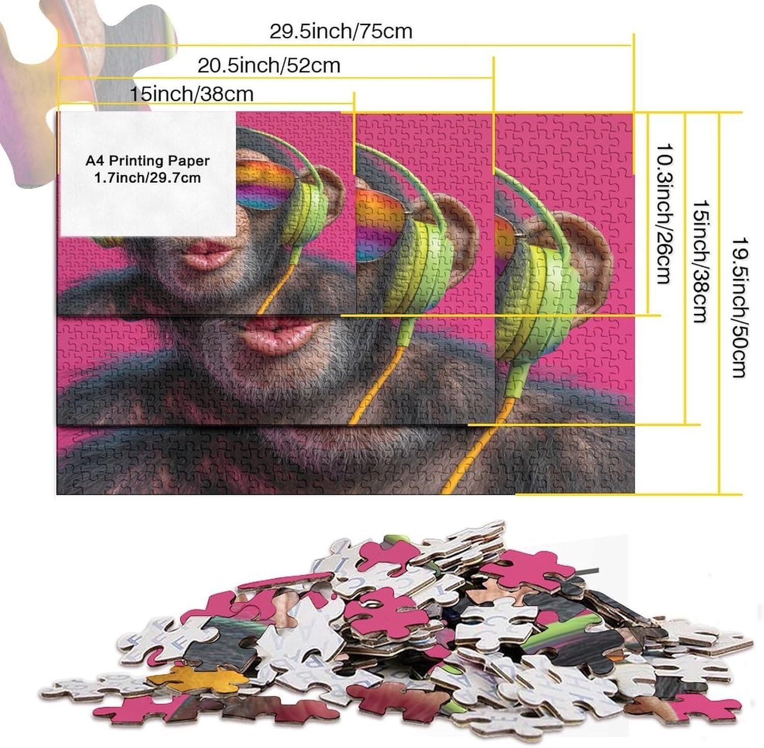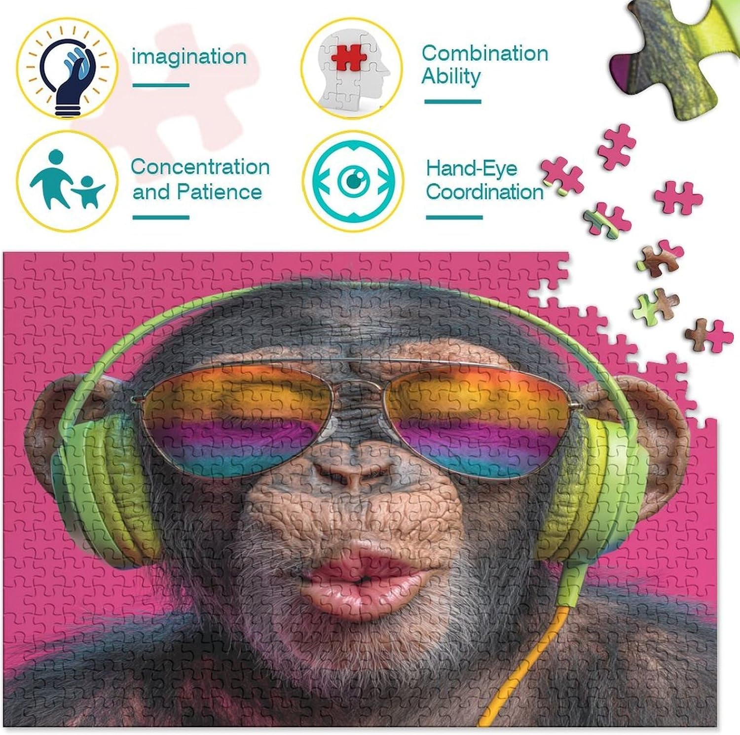 🌸GIOCHI PER ADULTI: una sfida emozionante da regalare a tutti li appassionati di puzzle e amanti dell'arte, ideale per uomo, donna o ragazzi; i puzzle aiutano a esercitare la memoria, migliorano la concentrazione e stimolano l'intuizione 🌸QUALITÀ PREMIUM: il massimo del divertimento con prodotti di altissima qualità in termini di materiali, motivi e design; realizzati in legno tagliati con fustelle fatte a mano, per un risultato impeccabile 🌸Buon regalo: il puzzle finito misura 70 x 50 cm una volta completato. I migliori regali per ragazzi e ragazze dai 14 anni in su per compleanni o festività (Natale, Halloween, Ringraziamento, ecc.) 🌸Concediti una piacevole pausa relax! La nostra linea di puzzle da Chimpanzee Wearing Headphones And Sunglasses 1000 pezzi è il regalo perfetto per chi ama ritagliarsi un momento di svago e di relax mettendo alla prova le proprie abilità logiche e di concentrazione 🌸I nostri Puzzle ti offrono un'ampia scelta d'immagini capace di soddisfare i gusti di tutti: grazie alla qualità dei materiali riciclati, la robustezza e resistenza dei singoli pezzi insieme alla brillantezza dei colori, ti garantiamo un risultato impeccabile e privo di riflessi