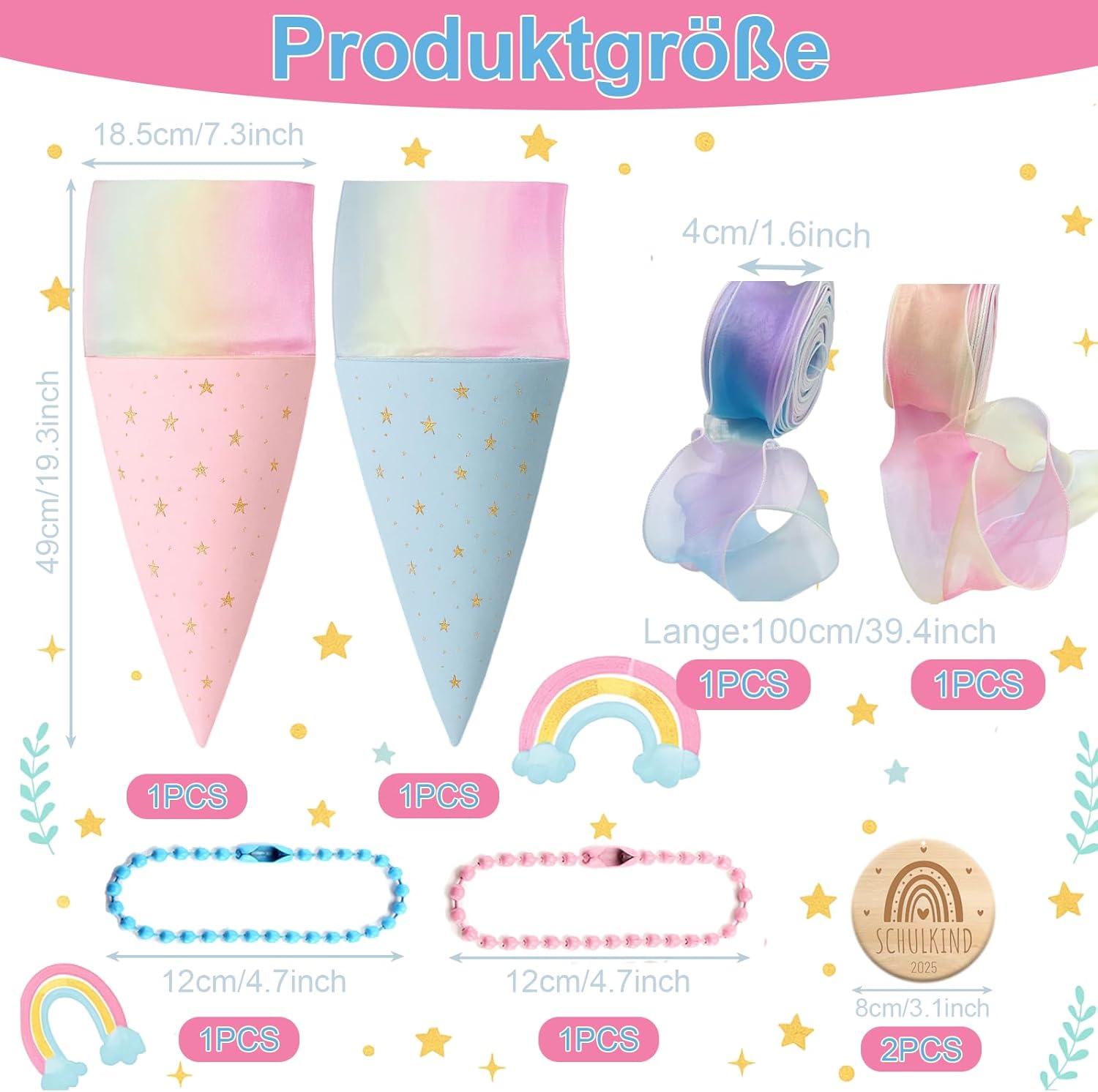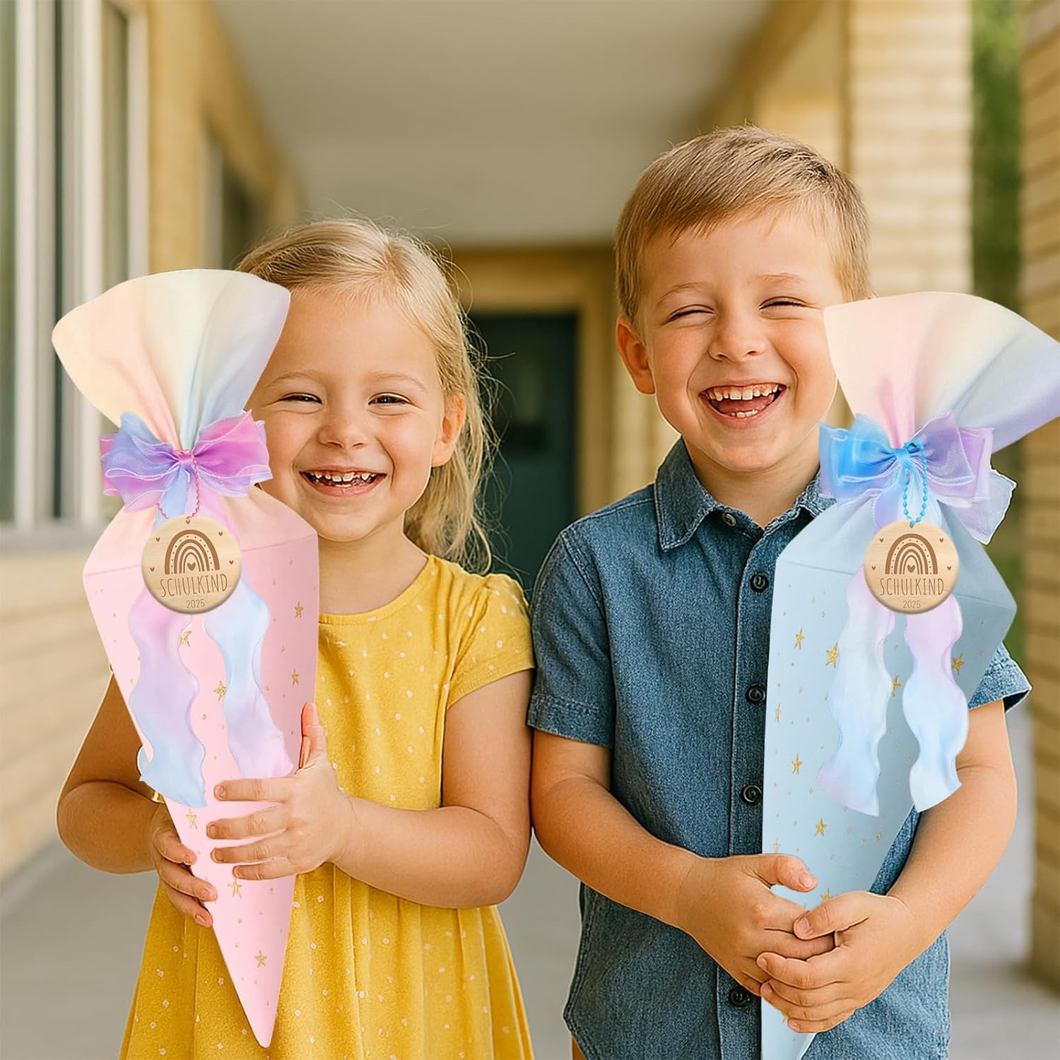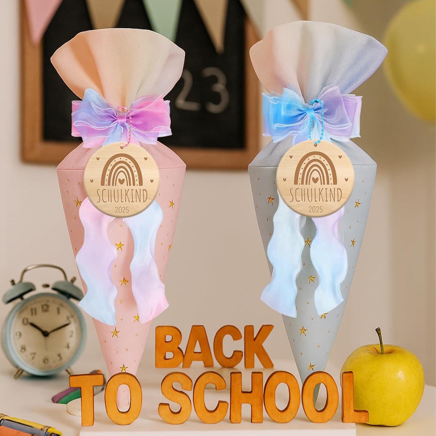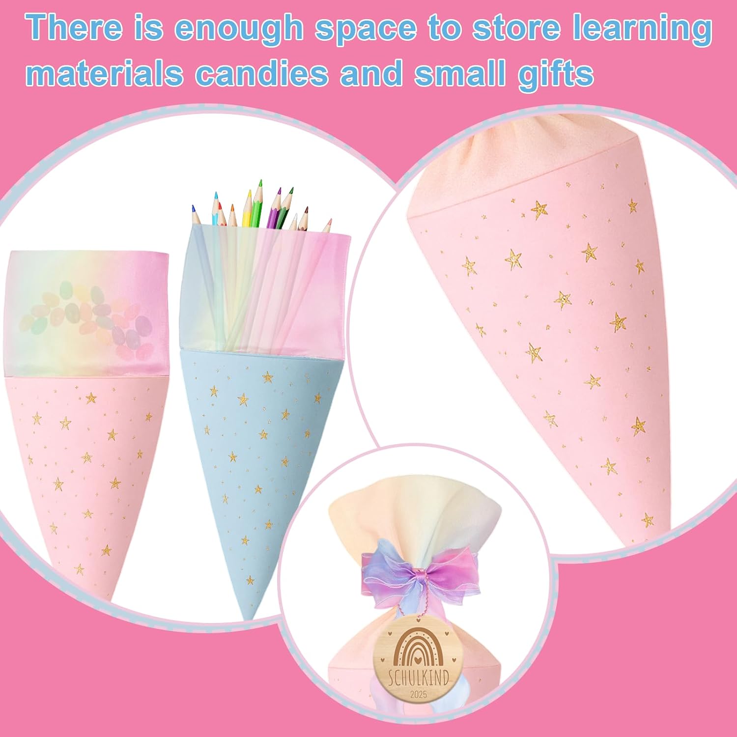 Sacchetti per la scuola per fratelli e sorelle, 2 sacchetti di zucchero (blu + rosa), 2 sacchetti di zucchero con fiocco (blu + rosa), 2 ciondoli in legno, piccoli sacchetti per la scuola per bambini e bambine, ideali come regalo per la scuola elementare Piccoli sacchetti per la scuola come sacchetti per fratelli: 2 pezzi piccoli sono 49 cm x 18,5 cm, possono essere riempiti autonomamente, articoli di cancelleria, piccoli oggetti o dolcetti, ideali come piccolo regalo per l'inizio della scuola dei fratelli Design amorevole: i sacchetti di zucchero piccoli sono progettati in una composizione di colori accattivanti e colorati che entusiasmerà sia ragazze che ragazzi. Si adattano armoniosamente a qualsiasi festa di scuola e sono ideali come sacchetti per fratelli Riutilizzabili: i sacchetti per la scuola possono essere trasformati in un cuscino semplicemente riempiendoli con ovatta Regalo perfetto: il cono per la scuola dei fratelli giovani ragazze è carino e squisito, perfetto come regalo per l'inizio della scuola, sacchetto di scuola fratello, confezione regalo, regalo di addio all'asilo, decorazione per feste, accessori di abbigliamento. Trascorri una giornata indimenticabile con i tuoi figli
