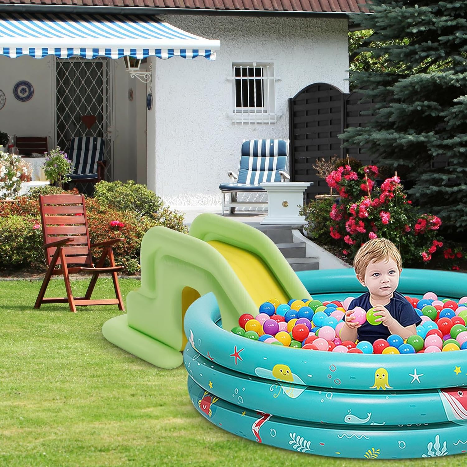 Design di diapositive: con una lunghezza scorrevole, questa diapositiva di dimensioni generose offre un eccitante e sicuro per i bambini. È il modo per rinfrescarsi e bruciare energia. Base ad acqua e extra-wide: il diapositiva è dotato di un'ampia base liquidabile con acqua, che garantisce che lo scivolo rimanga stabile durante l'uso. Aiuta anche a attutire l'atterraggio, offrendo un'esperienza più sicura per bambini e adulti. Materiale in PVC stabile: realizzato in PVC fine e resistente alla foratura, questo diapositiva della piscina può gestire un uso ruvido e frequente, offrendo divertimento e durata di lunga durata per più stagioni. Facile configurazione e archiviazione La diapositiva gonfiabile è rapida e facile da configurare. Basta gonfiarlo usando una pompa, riempire la base con acqua e sei pronto per il divertimento. È anche facile da sgonfiare e archiviare quando non è in uso. per l'uso da interno e esterno ideale per le piscine del cortile e le aree di nuoto interno, questa diapositiva può essere utilizzata in una varietà di ambientazioni, garantendo che il divertimento sia sempre solo scivolo.