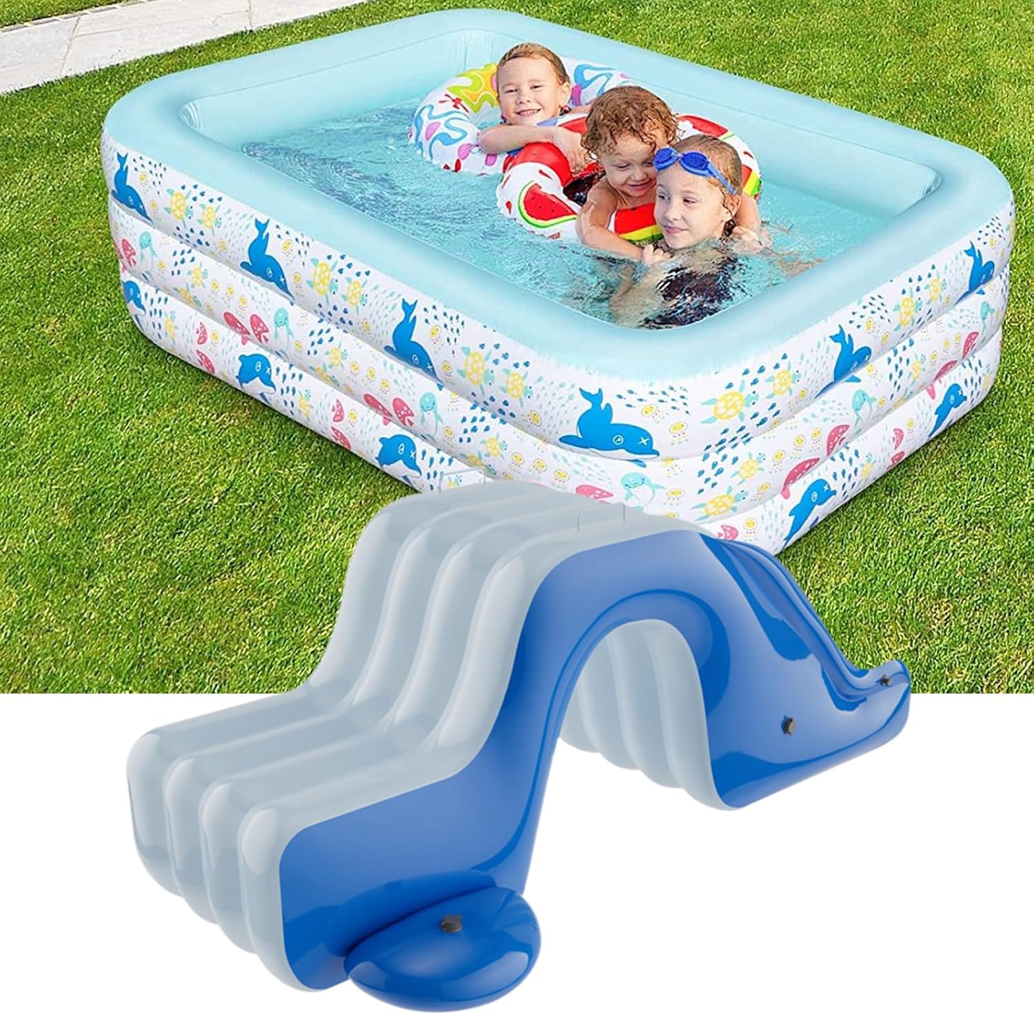 Emozionante intrattenimento estivo: questo scivolo gonfiabile trasforma qualsiasi cortile o giardino in una divertente zona di splash, mantenendo i bambini attivi e freschi durante le giornate calde. di sprinkler integrato: prese di spruzzo d'acqua integrate lungo la diapositiva un'azione di scorrimento continuo e scivolosa per un divertimento extra. Materiale robusto e sicuro: realizzato con un spessore di PVC spesso che resiste a forature e fornisce una base sicura per infinite ore di salto, arrampicata e scivolamento. Facile configurazione e deflazione: si gonfia rapidamente con una pompa d'aria standard e si collega facilmente a un tubo da giardino per un flusso d'acqua rapido e il gioco senza problemi. per feste e incontri: un'aggiunta indispensabile per compleanni, barbecue o riunioni del fine settimana, offrendo un'attrazione per il centrotavola per il divertimento all'aperto per bambini.