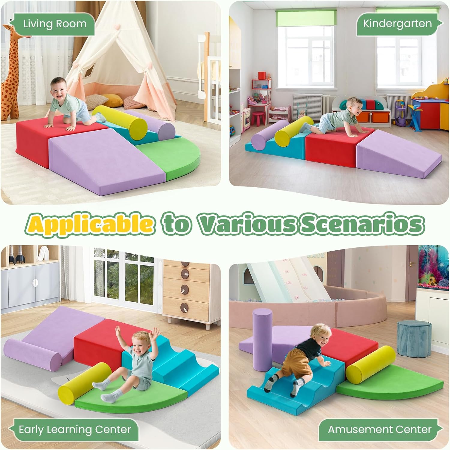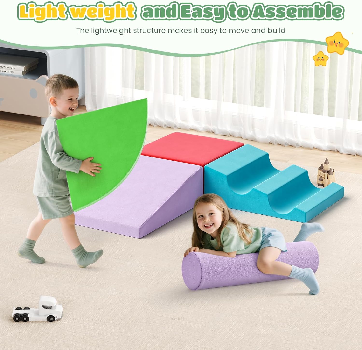 VERSATILE E DIVERTENZA: Le forme differenti possono essere impilate o utilizzate come grandi blocchi di costruzione. Offrono un parco giochi morbido e sicuro, ideale per piccoli avventurieri che amano arrampicarsi e strisciare. Materiali sicuri e durevoli: i blocchi di costruzione morbidi sono rivestiti con uno strato di PU impermeabile di alta qualità, che li rende facili da pulire e durevoli. La cerniera nascosta impedisce i bordi taglienti, mentre la morbida imbottitura in schiuma offre ai bambini un'esperienza di gioco sicura e confortevole. Giocattolo di risveglio: questo giocattolo per bambini favorisce le capacità motorie, la percezione spaziale e la creatività, ed è perfetto per il risveglio. I bambini possono impilare, assemblare e riorganizzare i blocchi, sviluppando così le loro capacità di problem solving e la coordinazione occhio-mano attraverso un gioco interattivo. Facile da montare e riporre: i blocchi da arrampicata per bambini da 1 a 3 anni sono dotati di ampie chiusure autoadesive che consentono ai bambini di montarli e staccarli facilmente, per infinite possibilità di costruzione. Leggero e portatile, questo set è facile da trasportare e riporre, rendendolo ideale per camere da letto, salotti o camerette. Un regalo versatile e attento: che si tratti di compleanni, feste o semplicemente di divertimento, questi morbidi blocchi da arrampicata per bambini da 1 a 3 anni sono il regalo ideale per i bambini in crescita. Adatto a bambini di tutte le età, questo giocattolo versatile combina divertimento, apprendimento e sicurezza.