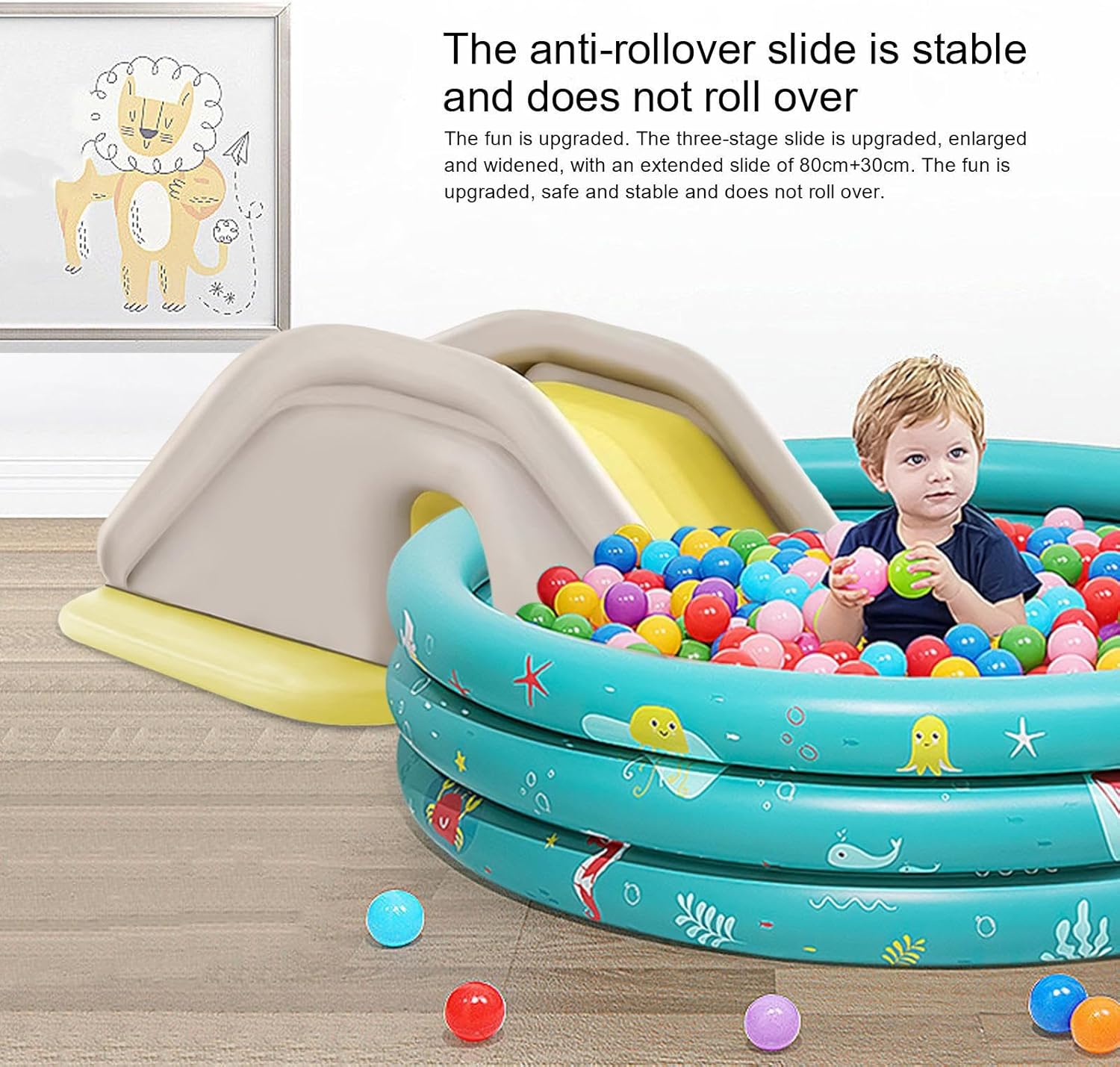 Set sicuro assicurato: dotato di uno scivolo allungato da 80 cm + 30 cm per una maggiore stabilità, questo scivolo gonfiabile garantisce che non si capovolga e adotta una struttura migliorata di fasi per un divertimento sicuro. Massima durata: costruito con materiale in PVC ad alta densità da 270 g/m² a triplo spessore, il nostro acquascivolo gonfiabile è eccezionalmente forte e non facilmente danneggiabile, offrendo una protezione duratura contro abrasioni e graffi, pur rimanendo sicuro ed ecologico sotto il sole. Delicato e : immergi i tuoi bambini in un tempo di gioco lussuoso e sicuro con il nostro acquascivolo gonfiabile, realizzato con tecnologia di elaborazione dell'acqua a 4 strati. Offri loro un piacere confortevole con un delicato e prenditi cura della pelle delicata. Divertimento senza fine: progettato per bambini di tutte le età, questo acquascivolo gonfiabile migliora l'interazione e l'intrattenimento tra genitori e figli, garantendo un'esperienza di gioco divertente, sia all'aperto durante le calde giornate estive che al chiuso per godersi l'eccitazione a bordo piscina. Design salvaspazio: lo scivolo gonfiabile è perfetto per famiglie e piccoli parchi giochi perché occupa pochissimo spazio. La sua funzione pieghevole consente una facile conservazione quando non in uso, rendendolo una scelta ideale per chi desidera divertimento e comfort allo stesso tempo.