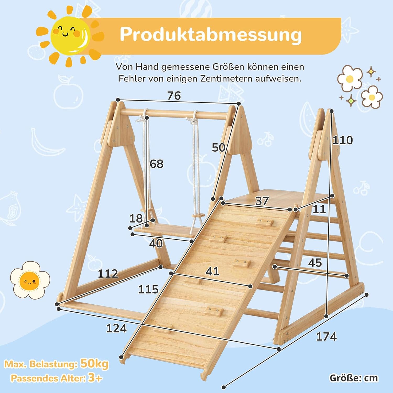 【Multifunzionalità 3 in 1】Questo parco giochi per bambini 3 in 1 offre al tuo bambino l'opportunità di praticare vari sport grazie a questa torre multifunzionale, che include scivolo, scaletta e altalena. I bambini possono allenare i muscoli, la forza e la coordinazione occhio-mano mentre giocano. 【Elevata capacità di carico】Design di sicurezza: il corpo principale è realizzato in legno massello e può supportare fino a 30 kg. Pertanto, può offrire ai bambini anni di durata e condizioni di comfort, garantendo la sicurezza del prodotto. 【Sviluppo delle abilità】Prodotti divertenti per l'allenamento sportivo appositamente progettati per il tuo bambino per migliorare la coordinazione fisica e mentale attraverso il gioco. Il set promuove le capacità motorie e sviluppa le capacità di presa, trazione e posizione eretta dei bambini, nonché l'equilibrio e il gioco indipendente. 【Design sicuro】Questa combinazione 3 in 1 di scivolo in legno e altalena per bambini. L'altalena regolabile in altezza è adatta a bambini di diverse taglie. La base della piattaforma della scala di arrampicata è inoltre dotata di una cinghia antiscivolo per garantire la sicurezza del bambino. 【Facile da installare】 Viene fornito con istruzioni di installazione dettagliate e un kit di accessori completo. Il processo di installazione è rapido e semplice e non sono necessari attrezzi speciali. I genitori possono completare facilmente l'installazione, consentendo ai bambini di divertirsi il più rapidamente possibile.