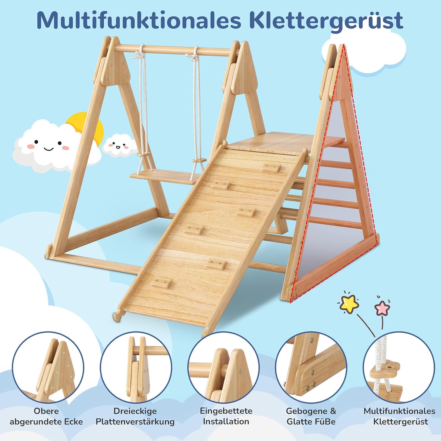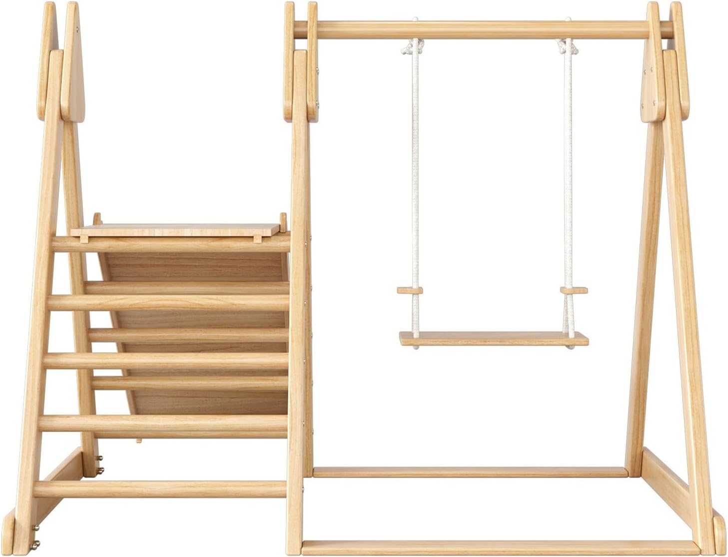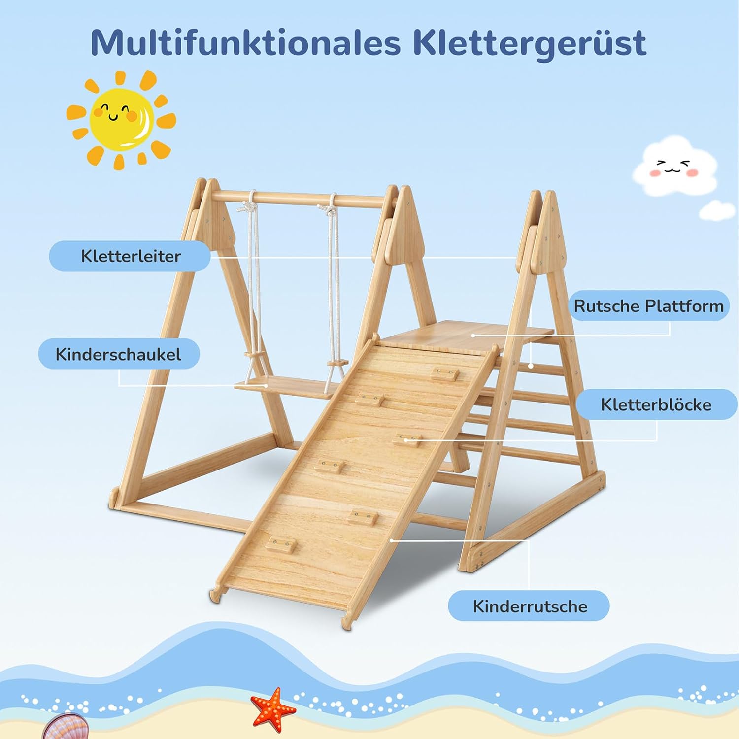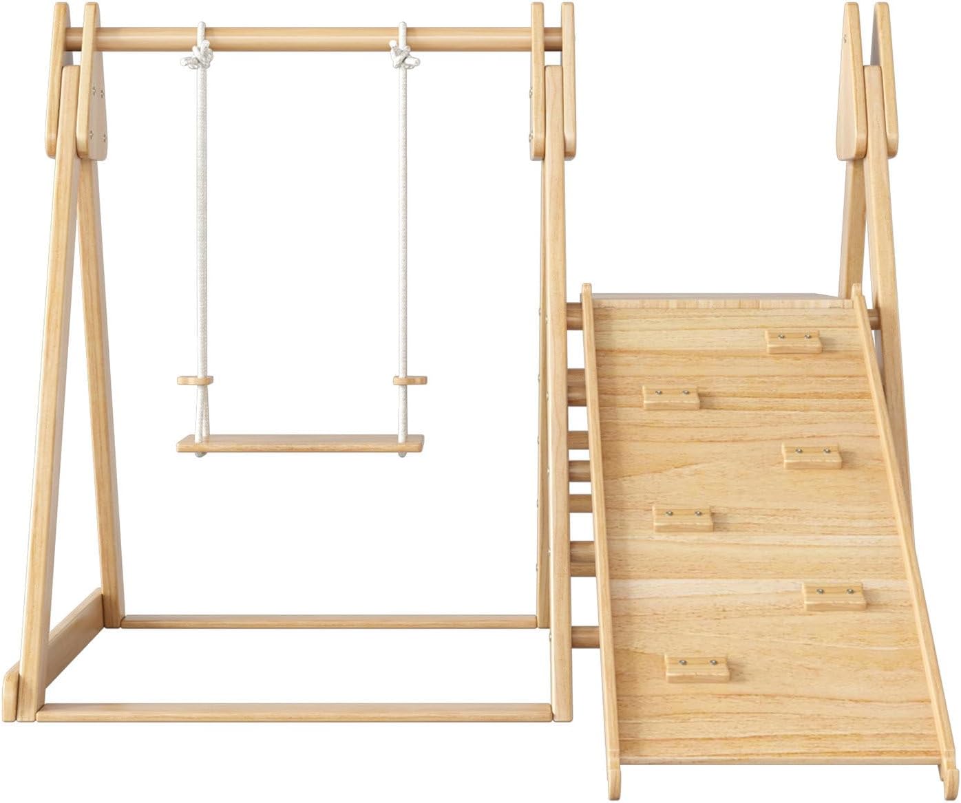 【Multifunzionalità 3 in 1】Questo parco giochi per bambini 3 in 1 offre al tuo bambino l'opportunità di praticare vari sport grazie a questa torre multifunzionale, che include scivolo, scaletta e altalena. I bambini possono allenare i muscoli, la forza e la coordinazione occhio-mano mentre giocano. 【Elevata capacità di carico】Design di sicurezza: il corpo principale è realizzato in legno massello e può supportare fino a 30 kg. Pertanto, può offrire ai bambini anni di durata e condizioni di comfort, garantendo la sicurezza del prodotto. 【Sviluppo delle abilità】Prodotti divertenti per l'allenamento sportivo appositamente progettati per il tuo bambino per migliorare la coordinazione fisica e mentale attraverso il gioco. Il set promuove le capacità motorie e sviluppa le capacità di presa, trazione e posizione eretta dei bambini, nonché l'equilibrio e il gioco indipendente. 【Design sicuro】Questa combinazione 3 in 1 di scivolo in legno e altalena per bambini. L'altalena regolabile in altezza è adatta a bambini di diverse taglie. La base della piattaforma della scala di arrampicata è inoltre dotata di una cinghia antiscivolo per garantire la sicurezza del bambino. 【Facile da installare】 Viene fornito con istruzioni di installazione dettagliate e un kit di accessori completo. Il processo di installazione è rapido e semplice e non sono necessari attrezzi speciali. I genitori possono completare facilmente l'installazione, consentendo ai bambini di divertirsi il più rapidamente possibile.