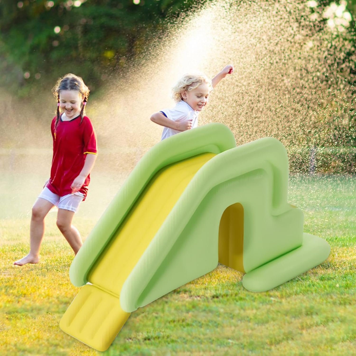 Nessun problema: lo scivolo gonfiabile per bambini ha una base vuota che può essere riempito con acqua o aria per un supporto stabile. Puoi gonfiare facilmente lo scivolo con una pompa e goderti il divertimento. Immaginazione di Sparks Kids: questo scivolo gonfiabile è un must per la tua piscina a pavimento. Puoi scivolare e spruzzare in ambienti interni o all'aperto perché rende l'acqua divertente e facile e aiuta i tuoi bambini a rinfrescarsi nella calura estiva. Si adatta a qualsiasi tipo di piscina: puoi usare questo scivolo d'acqua con qualsiasi piscina che hai, sia che si tratti di una piscina gonfiabile, di una piscina a terra o di una piscina macinata che ti diverte molto Durevole e sicuro: questo scivolo d'acqua gonfiabile darà ai tuoi bambini un'esperienza di scorrimento liscia ed emozionante. È realizzato in PVC di alta qualità, antigraffio, inodore, sicuro e usurato. Supporto stabile: la base di questo scivolo gonfiabile per bambini è ispessita e l'area è ingrandita per la stabilità. Non si rovescia facilmente. Le diapositive sono allungate per un maggiore piacere.