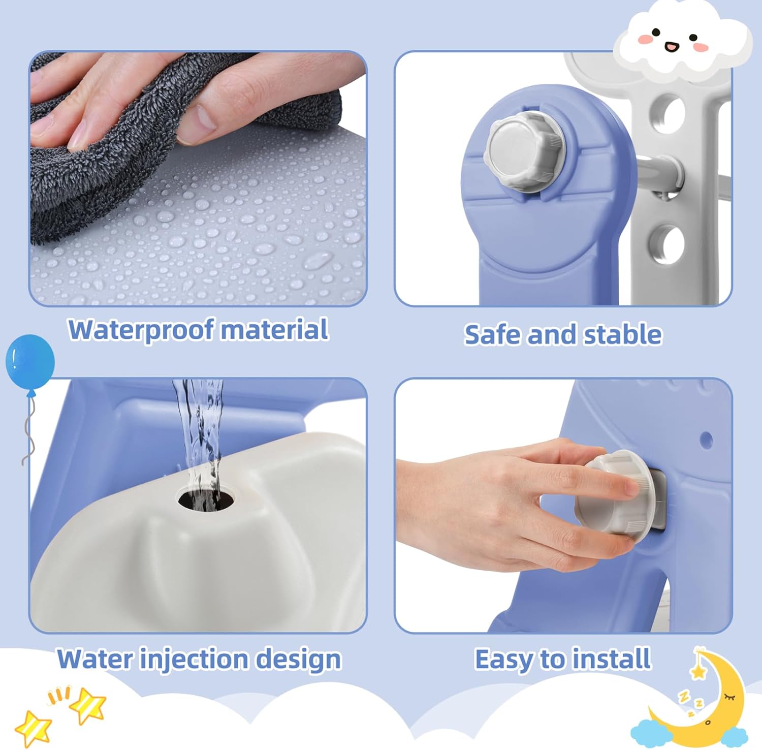 【Scivolo 4 in 1】Questo versatile scivolo per bambini offre 4 funzioni in un unico prodotto: uno scivolo per bambini all'aperto, un'altalena per bambini, una cornice da basket e una scala. Perfetto per i momenti di gioco sia in interni che all'aperto, occuperà i tuoi bambini da 1 a 6 anni. 【Design pratico e sicuro】Progettato per garantire la sicurezza dei vostri bambini, questo scivolo interno per bambini è dotato di bordi arrotondati e struttura robusta. Lo scivolo è ideale per i bambini piccoli grazie al suo design stabile e antiscivolo, offrendo un'esperienza senza rischi. 【Multifunzione per il massimo divertimento】Con il suo altalena con scivolo, questo gioco all-in-one porta diversità alle attività. Che si tratti di uno scivolo all'aperto per bambini in giardino o di un parco giochi al coperto a casa, i vostri bambini si divertiranno tutto il giorno. Adatto a tutti gli spazi: ideale per piccoli spazi, questo scivolo esterno per bambini si installa facilmente in giardino o in camera da letto. Le sue dimensioni compatte consentono di utilizzarlo sia all'esterno che all'interno, offrendo ai tuoi bambini un parco giochi dinamico e divertente. 【Durata e facilità di manutenzione】Realizzato con materiali resistenti e durevoli, questo scivolo per bambini è progettato per durare. Facile da pulire, resistente alle intemperie e rimane funzionale in qualsiasi ambiente, sia utilizzato in un parco giochi all'aperto per bambini o in un parco giochi al coperto.
