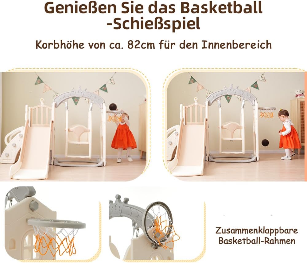 Utilizzo versatile: il nostro set da gioco 5 in 1 per bambini combina cinque possibilità di gioco in uno: altalena, scivolo, scala da arrampicata, canestro da basket e telescopio. Vivi cinque diverse avventure su un unico dispositivo di gioco – ideale per ore di divertimento e tempi di gioco variegati! Design sicuro: dettagli accuratamente costruiti come strutture antiscivolo per scale, ringhiere per scale, scivoli allungati e protezioni per altalene garantiscono la massima sicurezza durante il gioco. Materiali sicuri e di alta qualità: il nostro set da gioco è realizzato in HPDE, una plastica ecologica e sicura per la salute. Soddisfa i severi requisiti dello standard EN71 per la sicurezza dei bambini, rendendolo sicuro per l'uso quotidiano. 【 Funzioni amichevoli per i genitori】- Il set non è solo facile da montare, ma include anche una pratica scatola per riporre giocattoli e altri utensili in modo ordinato. In questo modo l'ambiente di gioco rimane sempre ordinato e organizzato. Design affascinante: il design amichevole e colorato rende il set un ottimo regalo per i bambini. Le forme carine e accattivanti lo rendono perfetto in qualsiasi sala giochi o giardino e farà battere forte il cuore dei bambini. Servizio: se avete domande sui nostri prodotti, vi preghiamo di contattarci direttamente. Ti aiuteremo sicuramente a risolvere questi problemi.