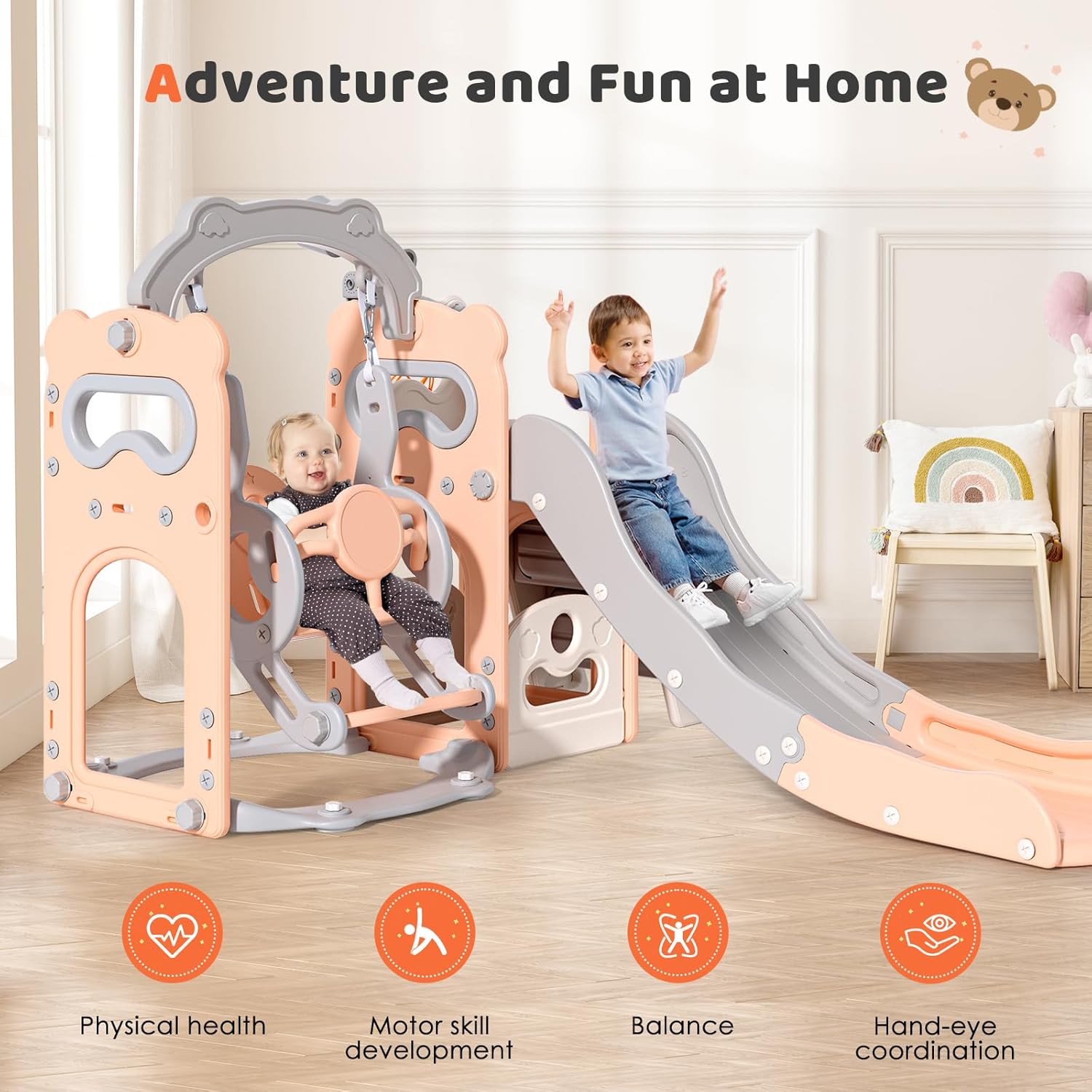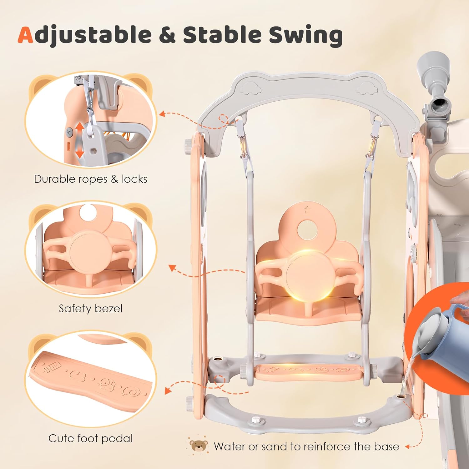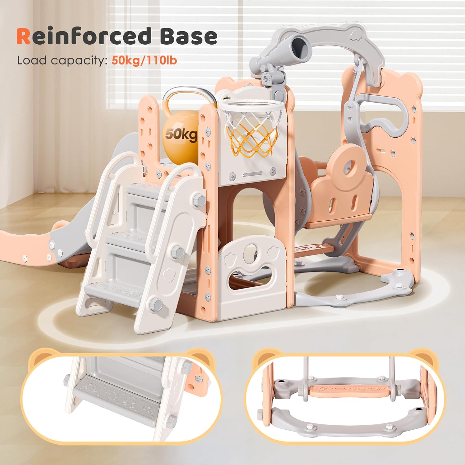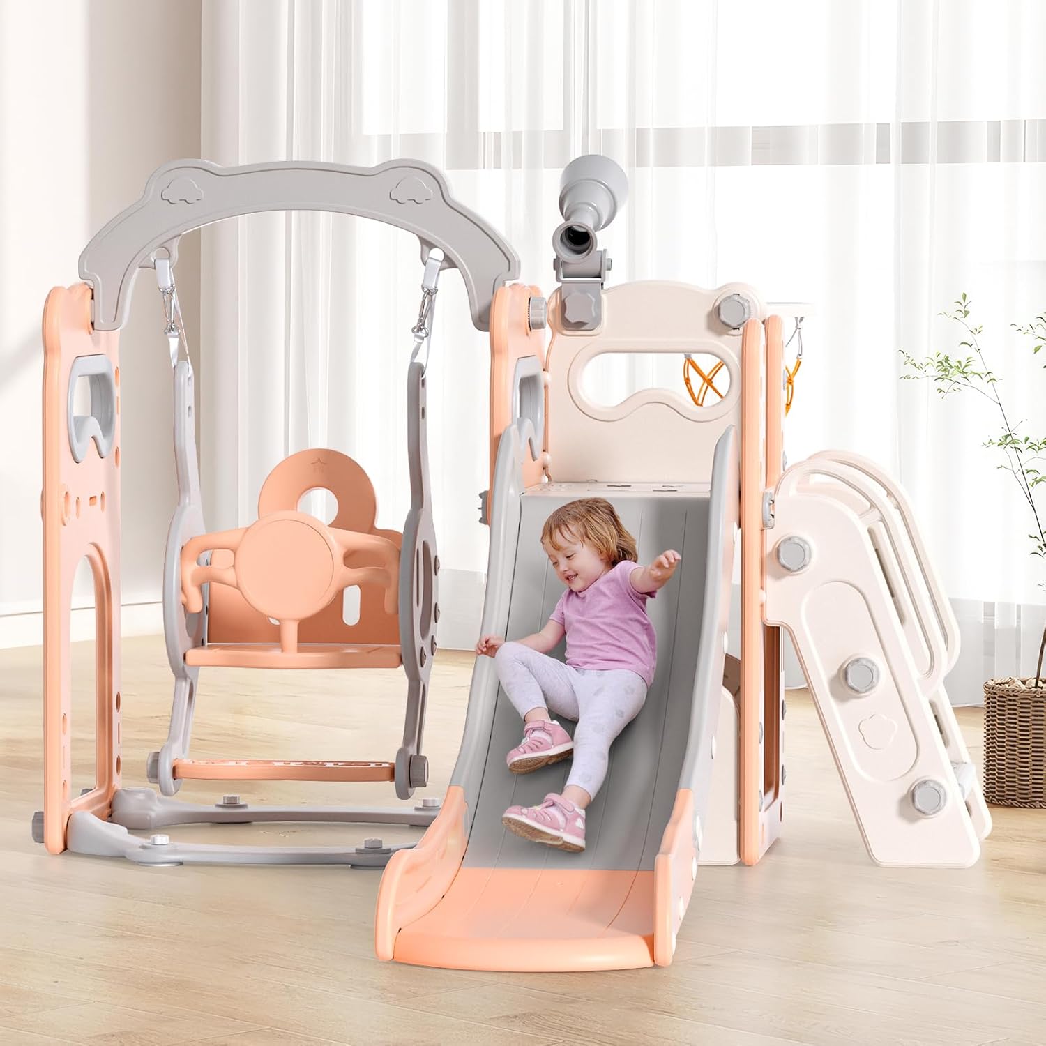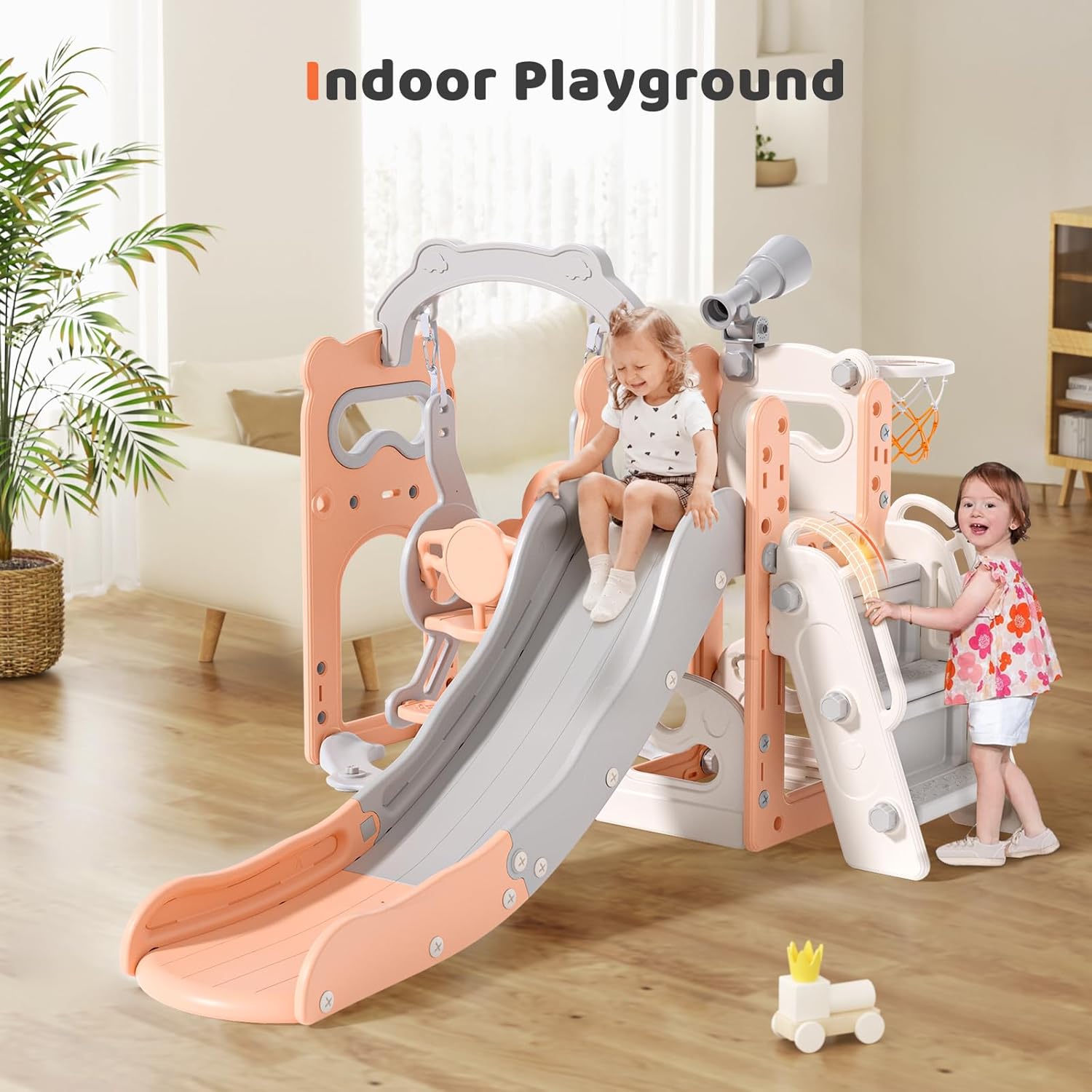 Lascia che il tuo bambino si immerga in un mondo magico, guidato da un mentore giocoso con scale, scivoli, stivaggi, un'area da basket, un telescopio da gioco e un compagno di arrampicata. Non è solo uno scivolo per bambini; è una guida carismatica in un regno pieno di divertimento e sviluppo di abilità. Incontra il vivace compagno di giochi del tuo bambino: un parco giochi al coperto con gradini antiscivolo e corrimano robusti. Non è solo attrezzatura; è un partner in ogni scivolo, arrampicata ed esplorazione che rende il viaggio sicuro e gioioso. Le mani e le ginocchia del tuo bambino ora hanno un compagno temperamentale! Immagina questo set da gioco per esterni come un amico attento, realizzato in materiale HDPE inodore e durevole. Liscio, lucido e senza spigoli vivi, funge da compagno affidabile e garantisce un ambiente sicuro per il tuo bambino. È come un amico premuroso che si prende sempre cura del tuo piccolo. Questo scivolo per bambini da interno non è solo un oggetto; è un avventuriero, pronto per scappatelle all'interno o all'esterno. La sua struttura robusta lo rende il compagno ideale per la prossima gita di gioco del bambino. È il compagno che è sempre pronto per il prossimo viaggio. Ottima scelta: lo scivolo per bambini all'aperto può essere un'ottima scelta per il tuo bambino per il compleanno, in vacanza, Natale, ecc.