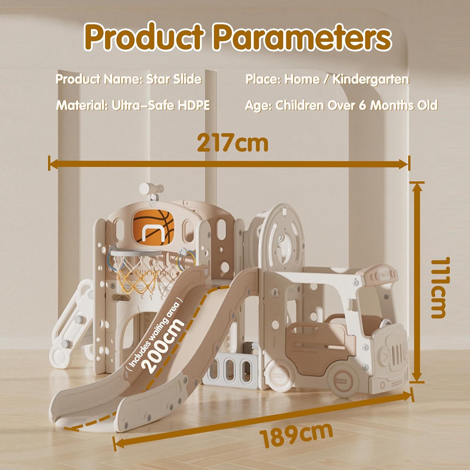 Sicurezza: Questo scivolo per bambini da casa interno progettato per i bambini combina tecniche di costruzione uniche con materiali in polietilene di alta qualità per offrire un'eccellente resistenza agli urti, alla pressione del carico e alla deformazione. Grazie all'utilizzo di materiali sicuri e durevoli in polietilene di alta qualità, i genitori non devono preoccuparsi della sicurezza e possono acquistarlo con fiducia Parco giochi privato: Potete costruire un parco giochi al coperto per i vostri bambini senza uscire di casa, poiché lo scivolo per bambini da esterno è dotato di molti design interessanti, come canestri da tiro, canestri da basket, binocoli e altre strutture divertenti, oltre a uno scivolo per bambini con un arco sul fondo, che può essere utilizzato come un box da calcio e un gioco di passaggio, il miglior regalo per i vostri bambini Ben progettato: L'ampio spazio interno delle pedane di scorrimento offre un comfort estremo ai bambini e lo scorrimento su lunghe distanze aiuta a tonificare i muscoli. Inoltre, lo scivolo bambini 1 anno presenta zone di accelerazione, ammortizzazione e decelerazione per una migliore ammortizzazione, un'ampia area di attesa e un'area di ammortizzazione più lunga per un'esperienza di scivolamento più sicura All-in-One: Das Baby-Rutschen-Set verfügt über eine Vielzahl von spaßigen Aktivitätsbereichen, darunter ein Kletterbereich, eine Rutsche, ein Basketballkorb, ein Teleskop, eine Lokomotive, ein Krabbeltunnel und ein Aufbewahrungskorb. Es kann die Begeisterung des Babys für die Teilnahme zu stimulieren und alle Arten von Herausforderungen, das Baby in den Prozess des Spielens, Allround-Entwicklung der körperlichen Koordination, kognitive Ebene und soziale Fähigkeiten zu erfüllen Facile da montare e pulire: Scivolo da giardino per bambini è facile da montare e può essere completato da adulti in pochi minuti. Inoltre, abbiamo anche istruzioni dettagliate per l'uso, per fornirvi un servizio accurato. La superficie della pista è liscia e facile da pulire, si può strofinare delicatamente per farla sembrare nuova di zecca. Nel frattempo, promettiamo un perfetto servizio pre-vendita e post-vendita e un anno di garanzia gratuita